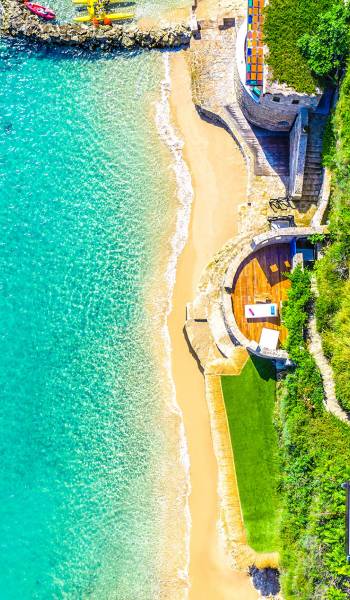 Η Grand Presidental Villa στη Ζάκυνθο θεωρείται μια από τις πιο μοναδικές παραθαλάσσιες βίλες στην Ελλάδα αυτή τη στιγμή. Βρίσκεται στην παραλία και προσφέρει ιδιωτικό χώρο στην παραλία με προσωπικές ξαπλώστρες και ομπρέλες. Η αμφιθεατρική και παραθαλάσσια θέση αυτής της πολυτελούς παραθαλάσσιας βίλας με ιδιωτική παραλία εξασφαλίζει εκπληκτική θέα και απόλυτη ιδιωτικότητα, ενώ ταυτόχρονα προσφέρει άμεση πρόσβαση στην ιδιωτική αμμώδη παραλία με το δικό της ιδιωτικό μονοπάτι και πύλη, που οδηγεί απευθείας στην άκρη του νερού. Αυτή η πολυτελής βίλα 2 υπνοδωματίων (200μ²) διαθέτει μια μεγάλη ιδιωτική θερμαινόμενη πισίνα υπερχείλισης και απολαμβάνει εκπληκτική πανοραμική θέα στο κοντινό νησί της Κεφαλονιάς, στο επιβλητικό κάστρο της Κυλλήνης στην Πελοπόννησο και στο απέραντο κρυστάλλινο γαλάζιο του Ιονίου. p>
