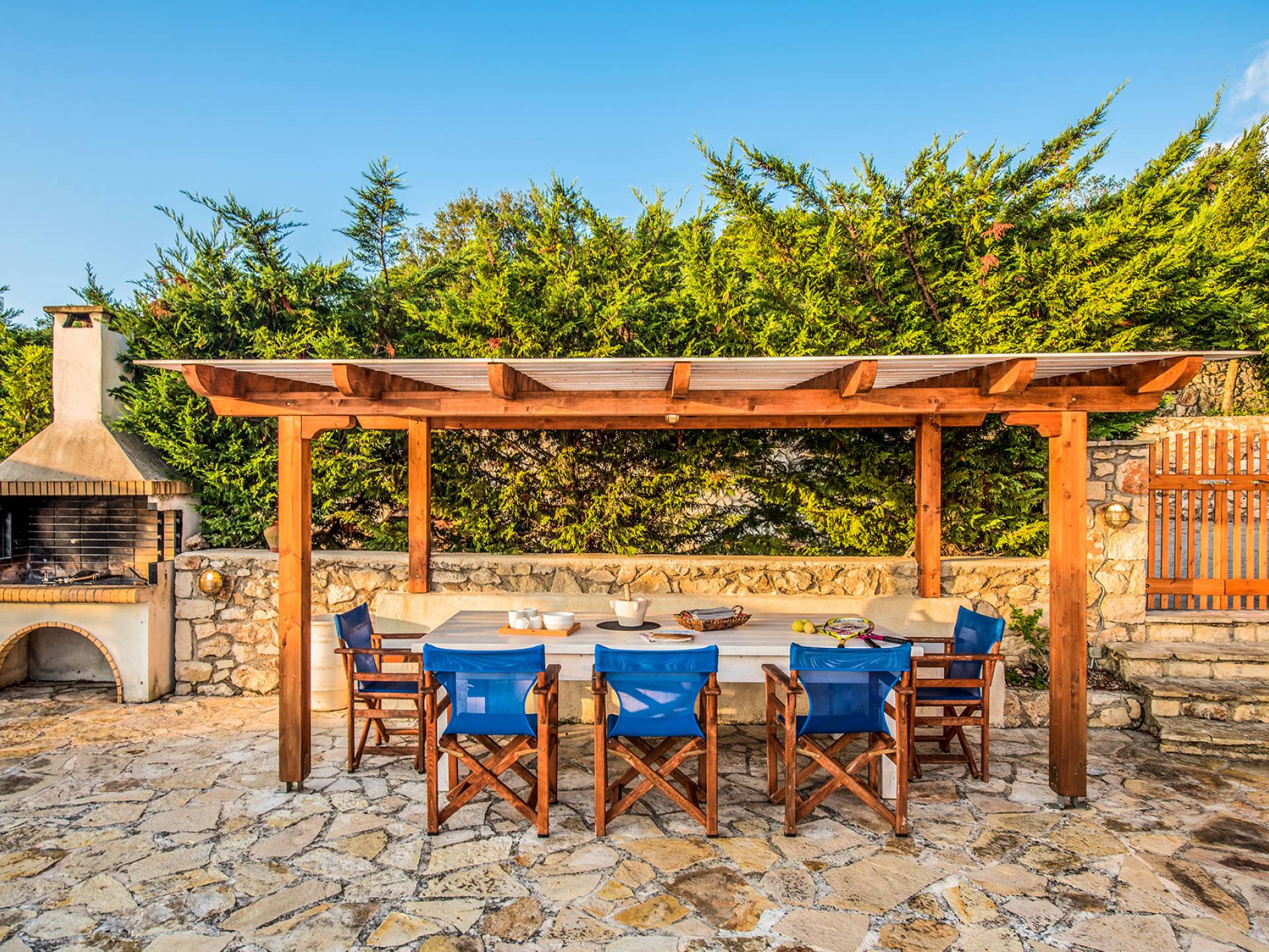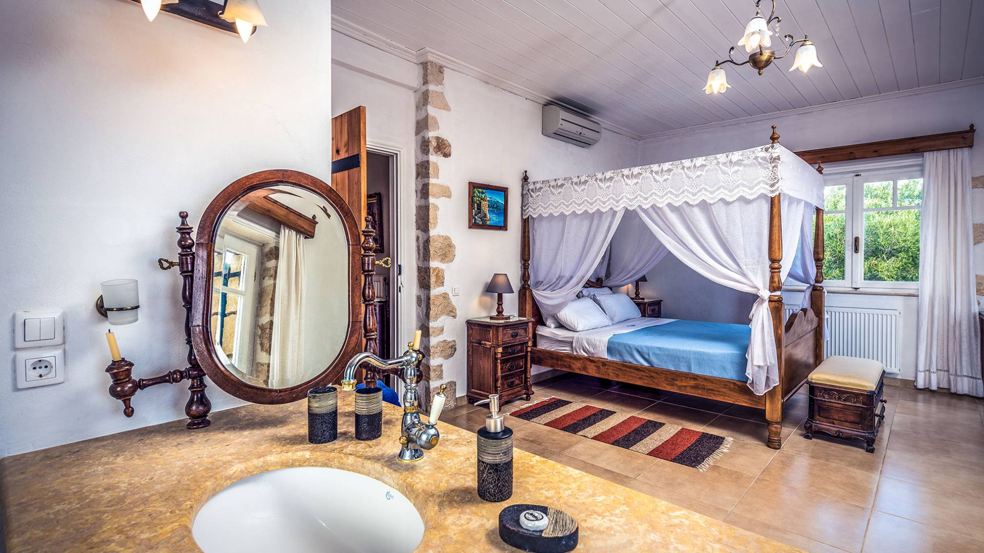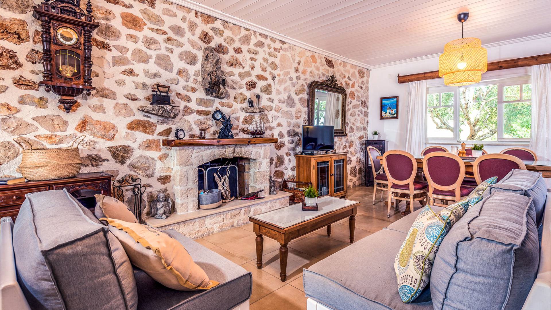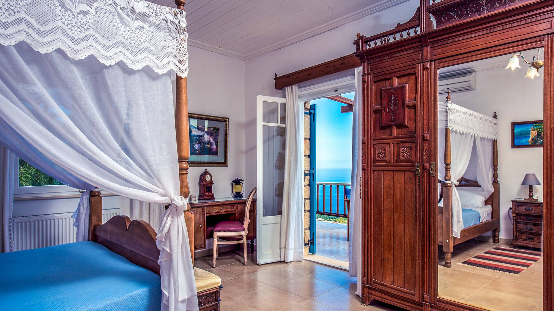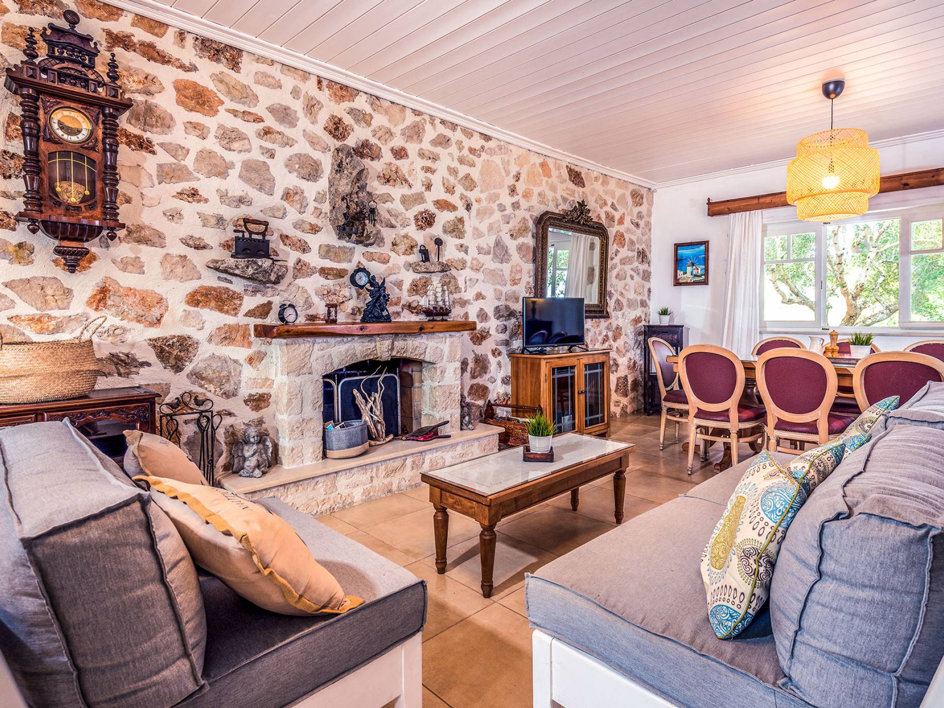 Στο ισόγειο υπάρχει μια πλήρως εξοπλισμένη κουζίνα με όλες τις απαραίτητες συσκευές και σκεύη, σαλόνι με τζάκι, τραπεζαρία, υπνοδωμάτιο με διπλό κρεβάτι και μπάνιο. Υπάρχει έξοδος στη βεράντα από το σαλόνι, με υπέροχη θέα στο Ιόνιο Πέλαγος και την πισίνα. Υπάρχουν 2 υπνοδωμάτια στον πρώτο όροφο, με δικό τους μπαλκόνι και θέα στη θάλασσα και την πισίνα, ενώ το μεγάλο υπνοδωμάτιο διαθέτει υδρομασάζ.