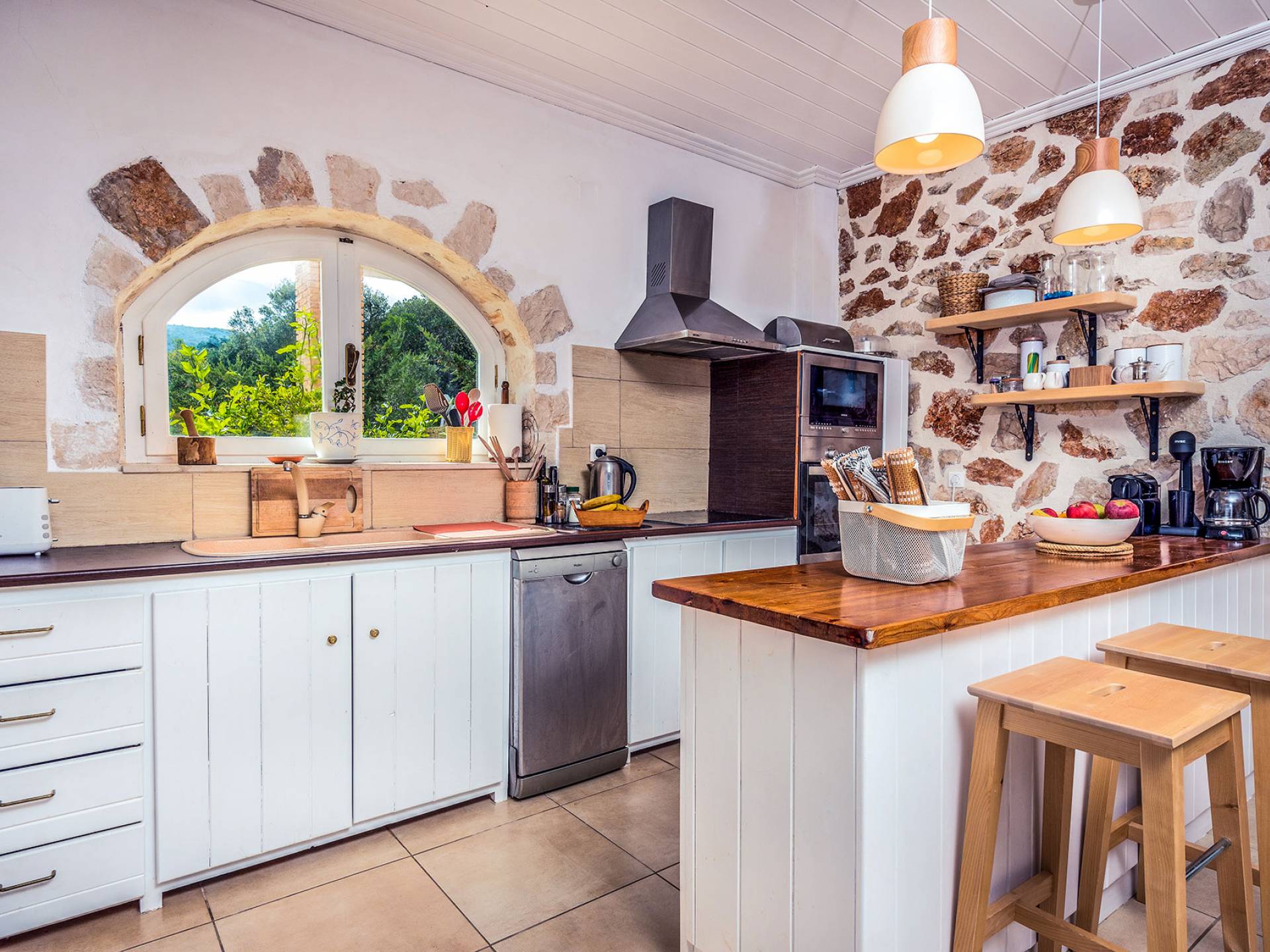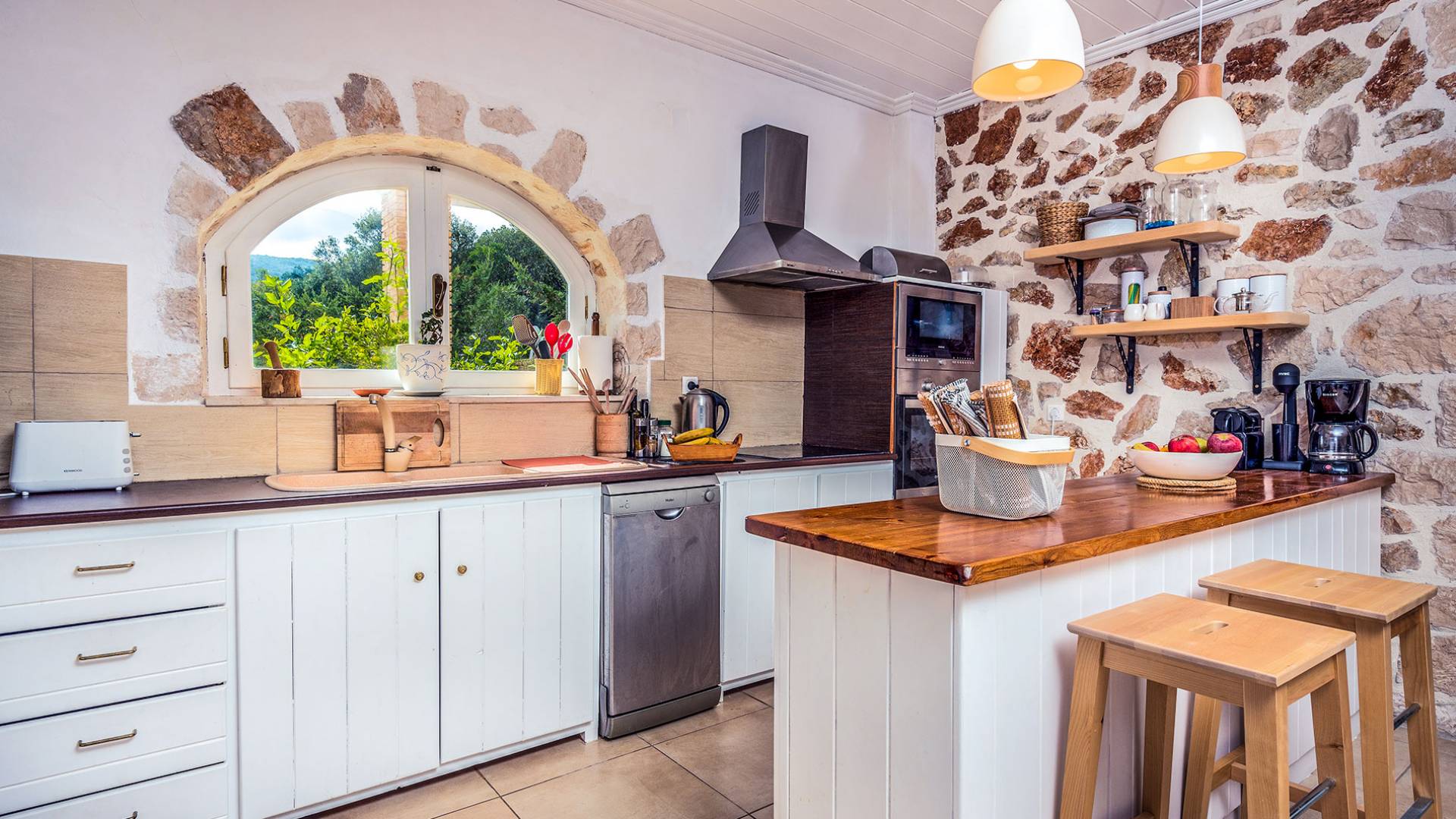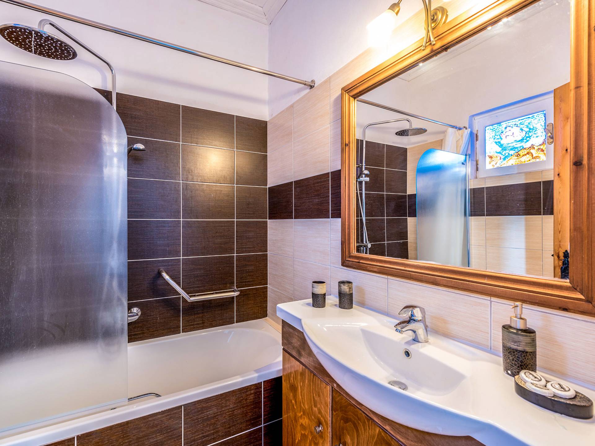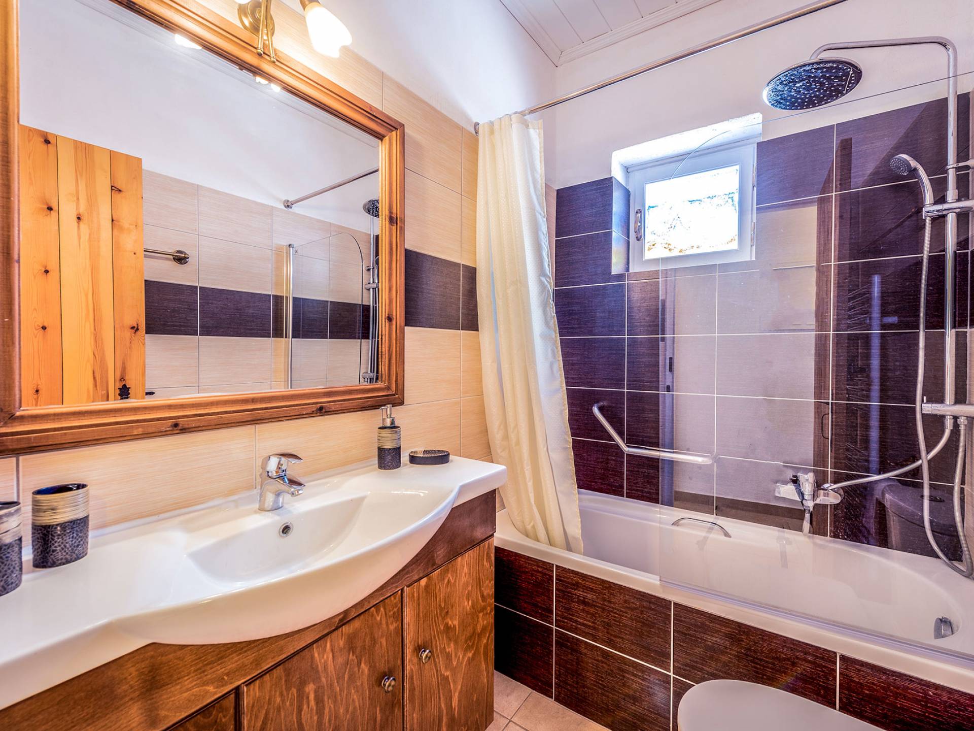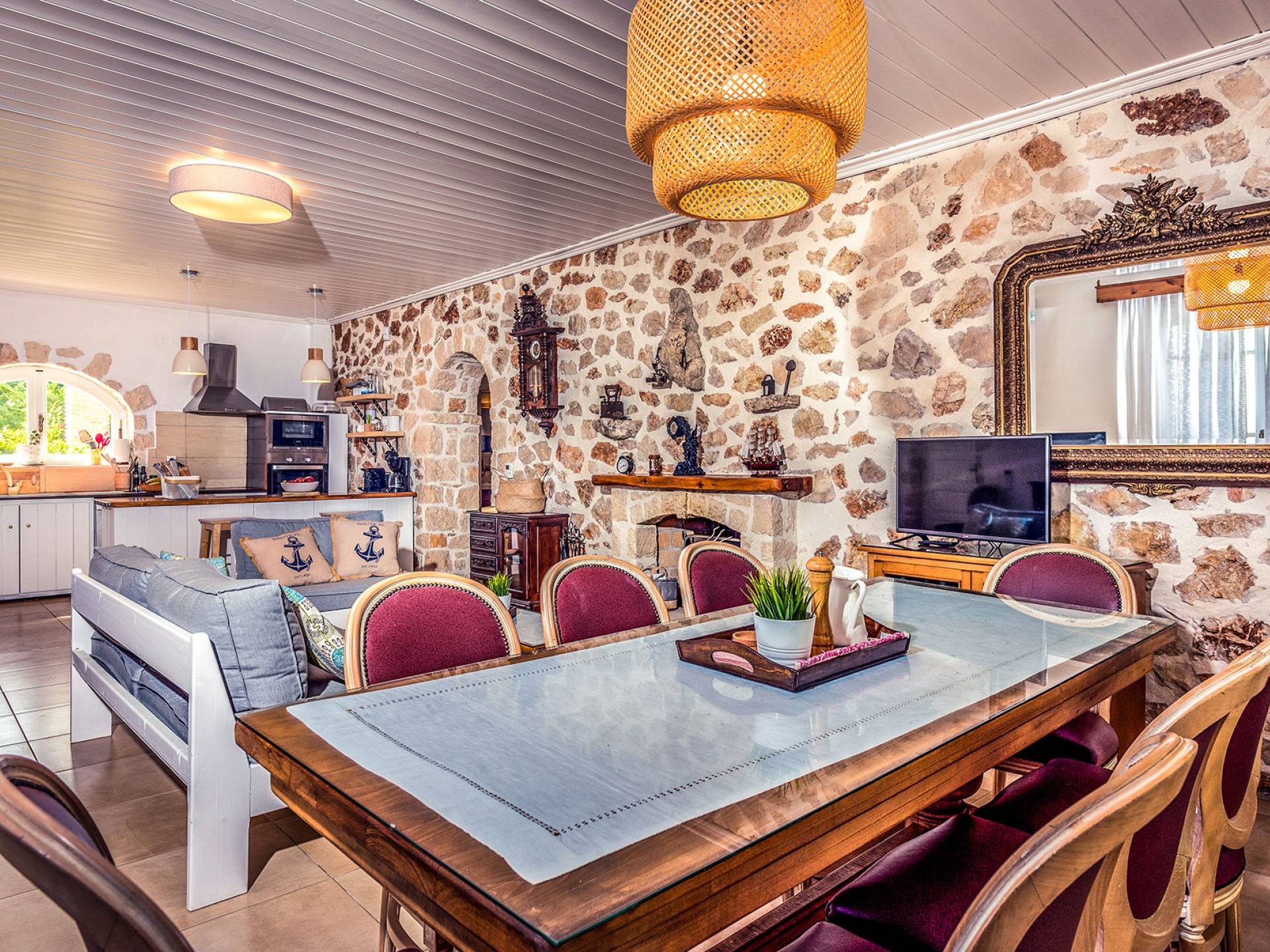 Στο ισόγειο υπάρχει μια πλήρως εξοπλισμένη κουζίνα με όλες τις απαραίτητες συσκευές και σκεύη, σαλόνι με τζάκι, τραπεζαρία, υπνοδωμάτιο με διπλό κρεβάτι και μπάνιο. Υπάρχει έξοδος στη βεράντα από το σαλόνι, με υπέροχη θέα στο Ιόνιο Πέλαγος και την πισίνα. Υπάρχουν 2 υπνοδωμάτια στον πρώτο όροφο, με δικό τους μπαλκόνι και θέα στη θάλασσα και την πισίνα, ενώ το μεγάλο υπνοδωμάτιο διαθέτει υδρομασάζ.