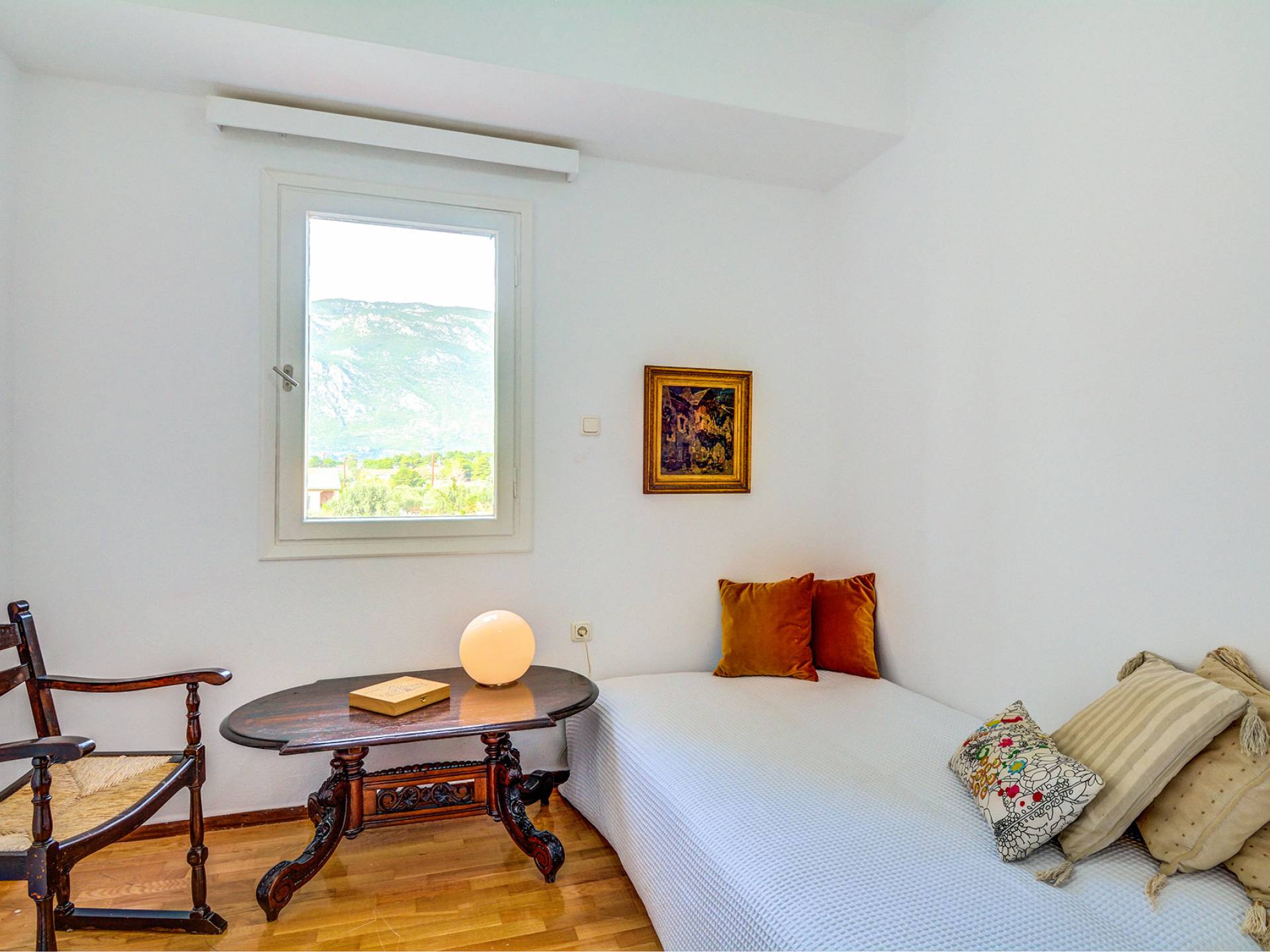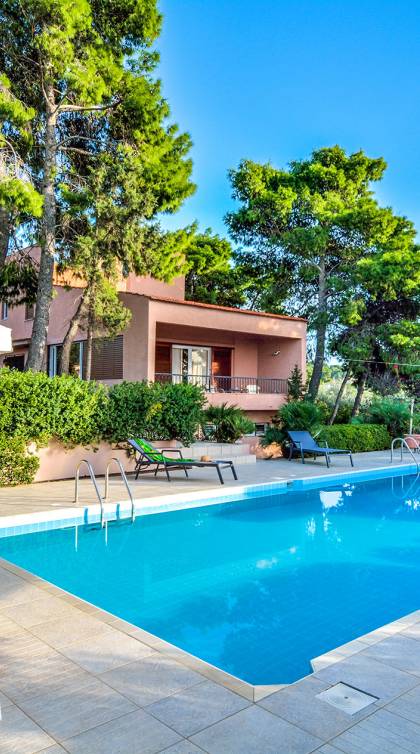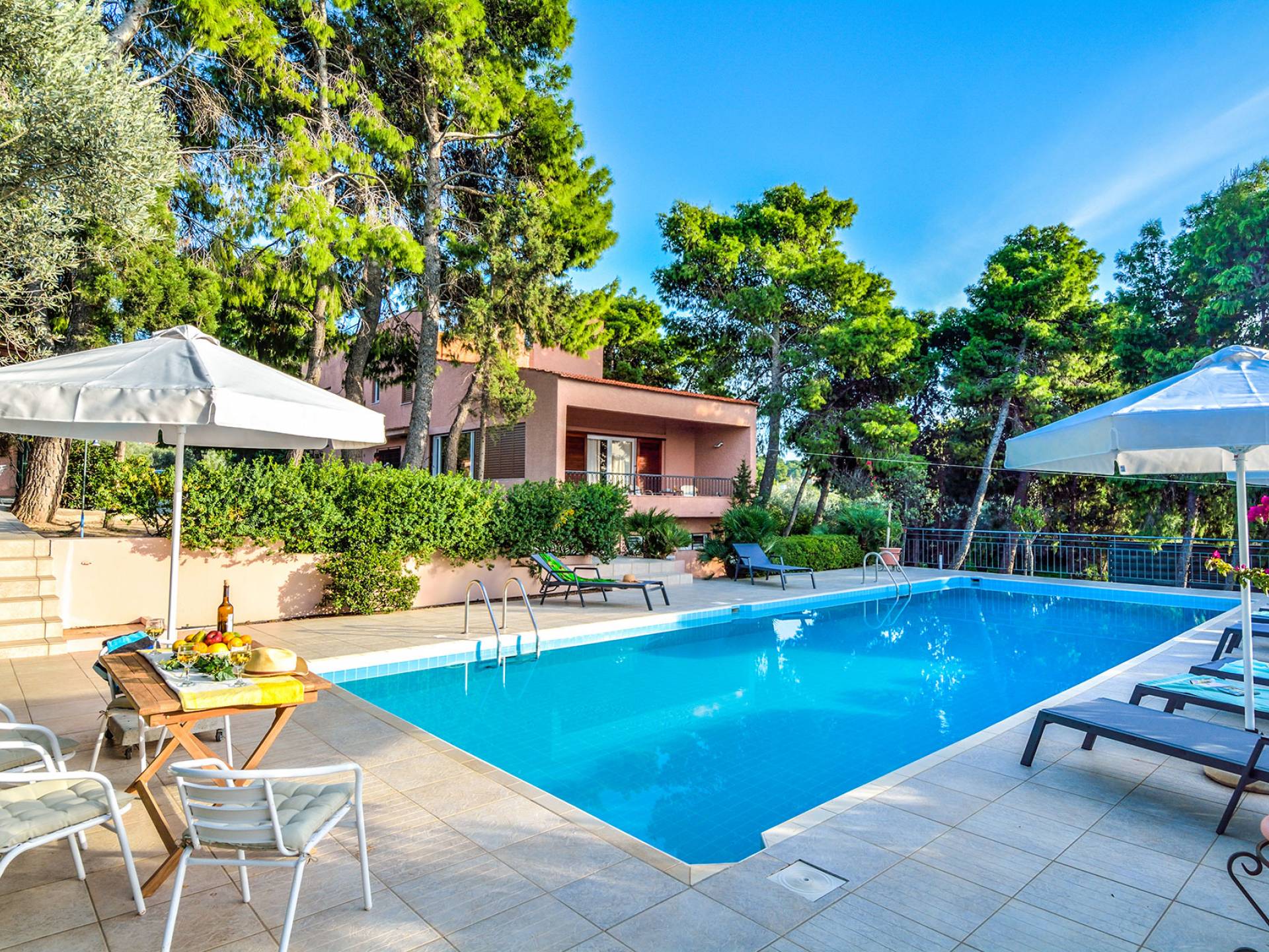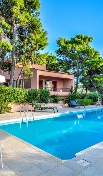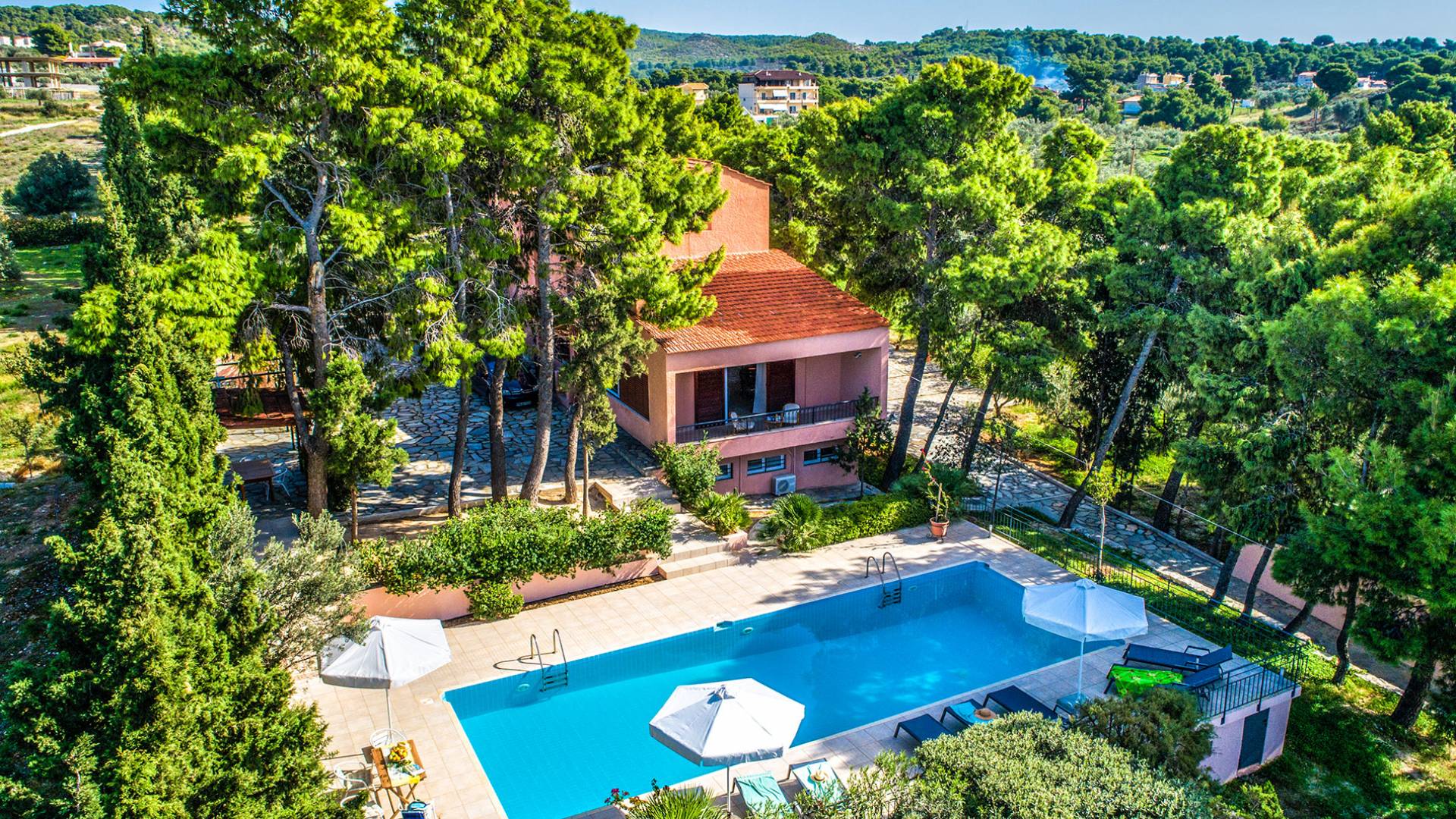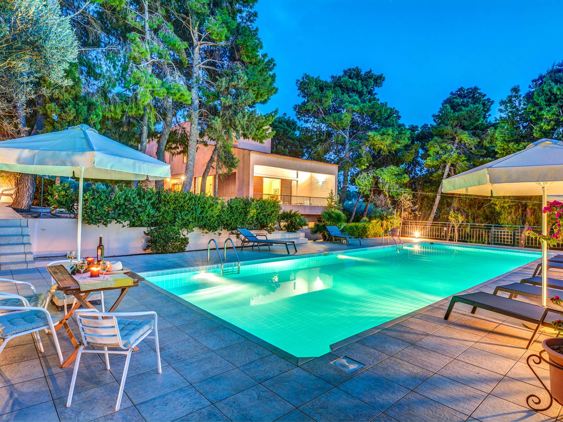 Μια ήσυχη περιφραγμένη έκταση 6 στρεμμάτων από πεύκα, κυπαρίσσια, ελιές, πορτοκαλιές, λεμονιές και καλλωπιστικά φυτά, με μια εξαιρετική μεγάλη πισίνα, ένα ειδικό γαλλικό δωμάτιο μπιλιάρδου και μόλις 10 λεπτά από την απίστευτη ακτή του Λουτρακίου μήκους 3,5 χιλιομέτρων, γεμάτη με ταβέρνες, μπαρ, ιαματικά λουτρά, σε μικρή απόσταση από το καζίνο και τα Γεράνια Όρη, με οργανωμένες δραστηριότητες, πεζοπορία, αναρρίχηση, ιππασία, ορειβασία και πολλά μοναστήρια. Επίσης, το κανάλι της Κορίνθου (Bungee Jumping), σχολές καταδύσεων και κολύμβησης με αναπνευστήρα και τόσους πολλούς κοντινούς προορισμούς της αρχαιότητας και της τέχνης.
