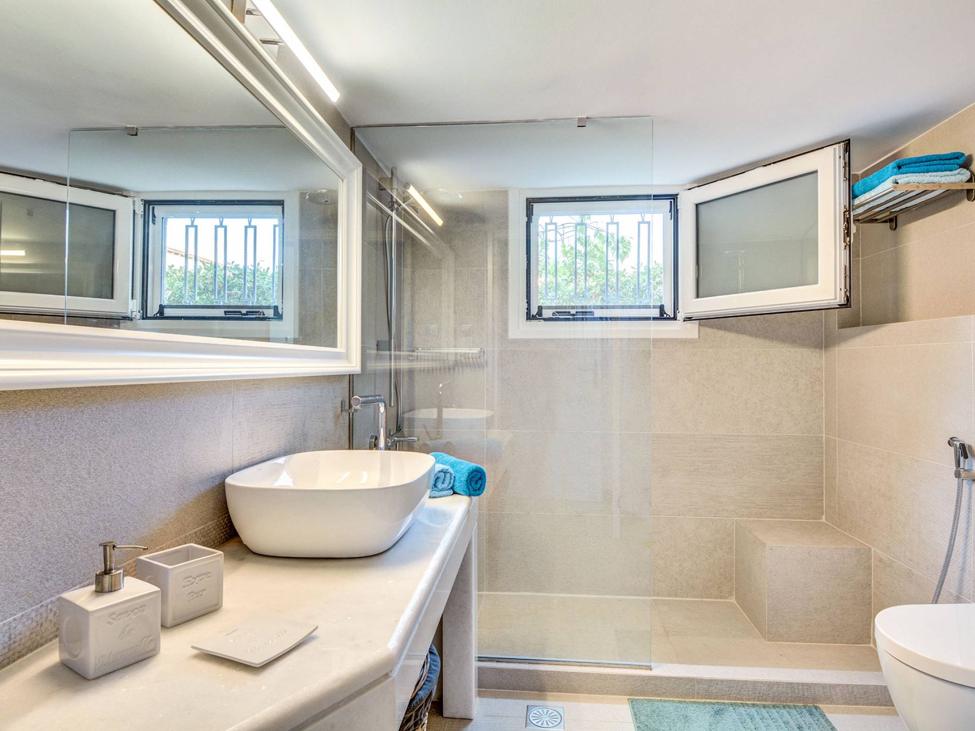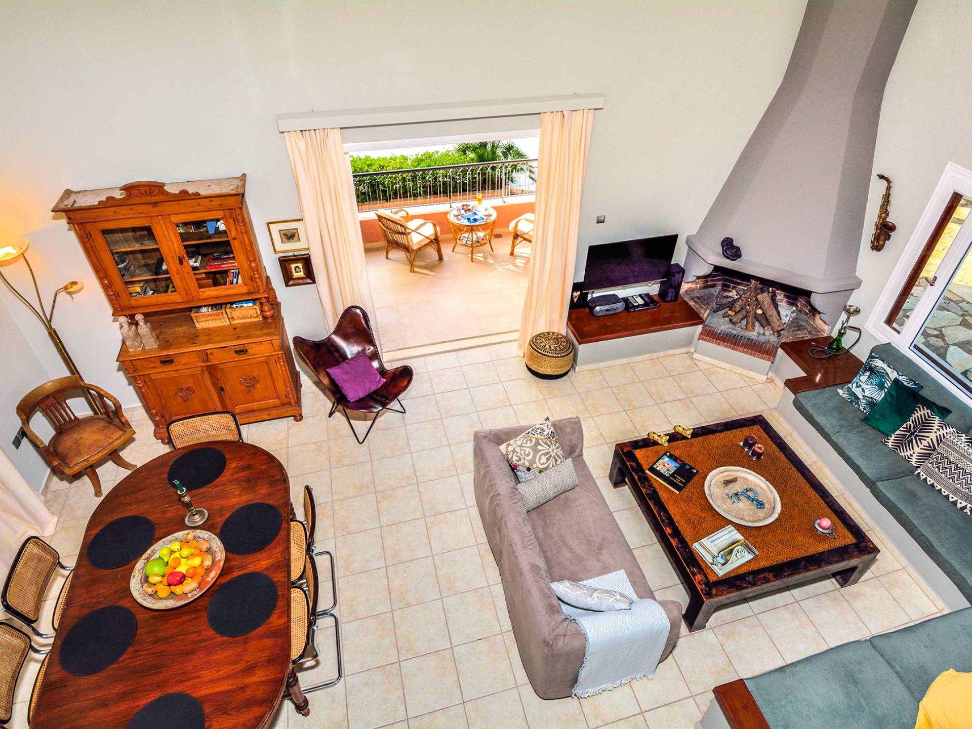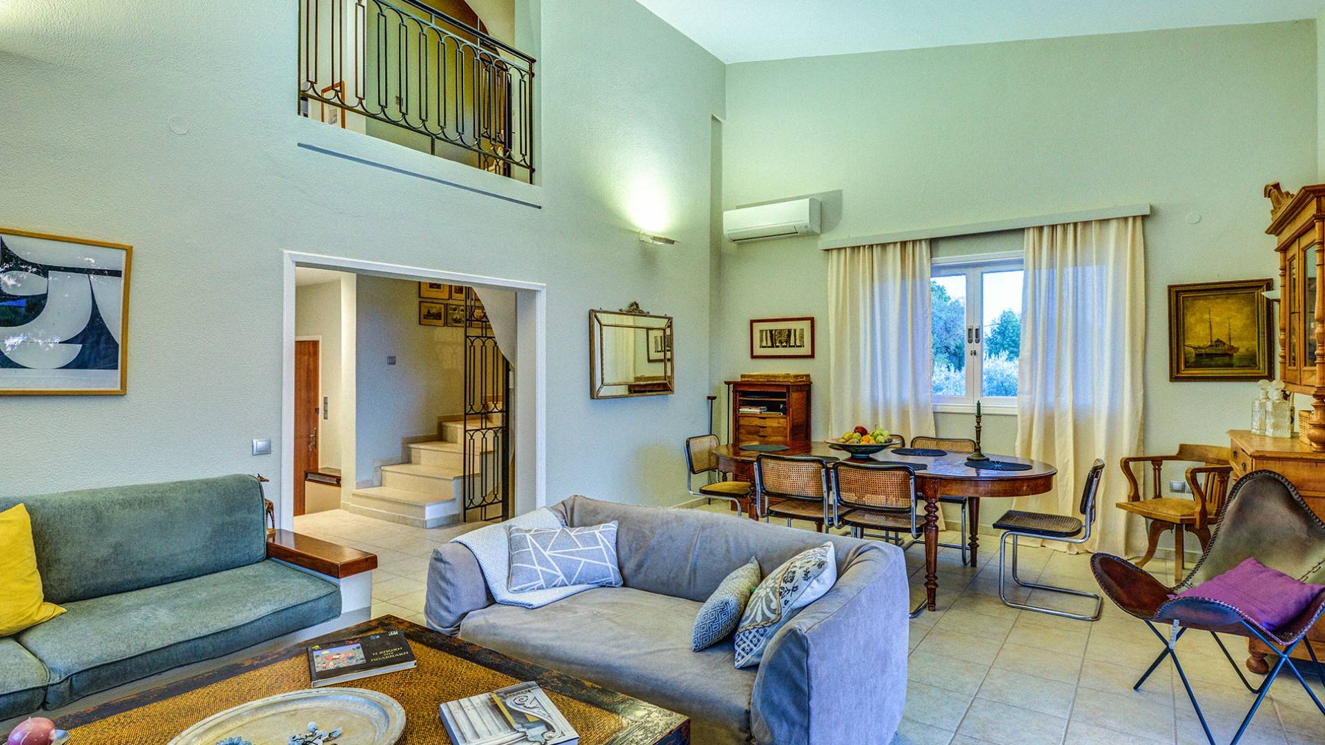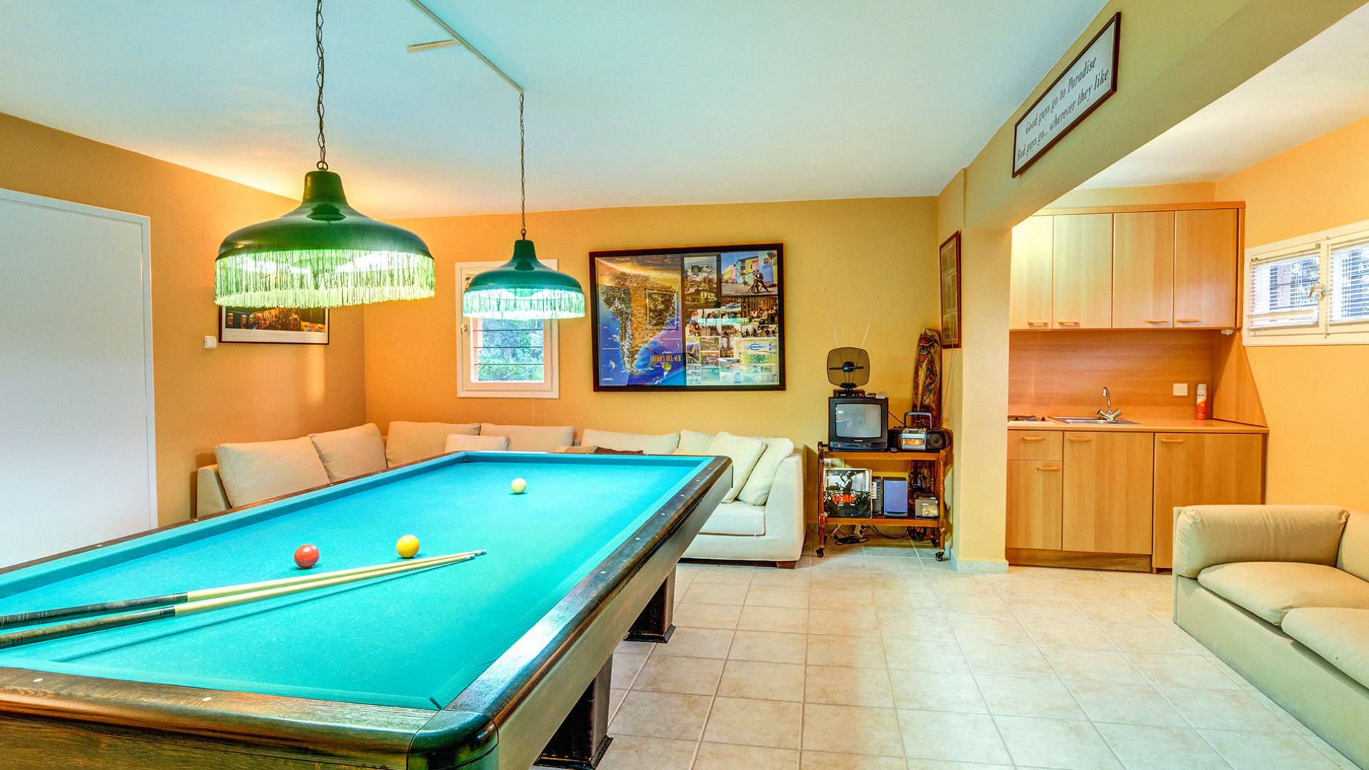 Η πρόσφατα ανακαινισμένη βίλα προσφέρει ευρύχωρες εσωτερικές εγκαταστάσεις και μεγάλα δωμάτια με 4 μπάνια και 5 υπνοδωμάτια με ξύλινο δάπεδο. Επιπλέον, 3 κρεβάτια μπορούν να προστεθούν στα υπνοδωμάτια. Η κύρια κατοικία εκτείνεται σε 2 ορόφους και το ημιυπόγειο με το γαλλικό δωμάτιο σνούκερ (3 μπάλες). Το ισόγειο έχει 2 εισόδους την κύρια και την κουζίνα χωρίς σκάλες. Η βίλα μπορεί να εξυπηρετήσει άτομα με ειδικές ανάγκες στο ισόγειο.