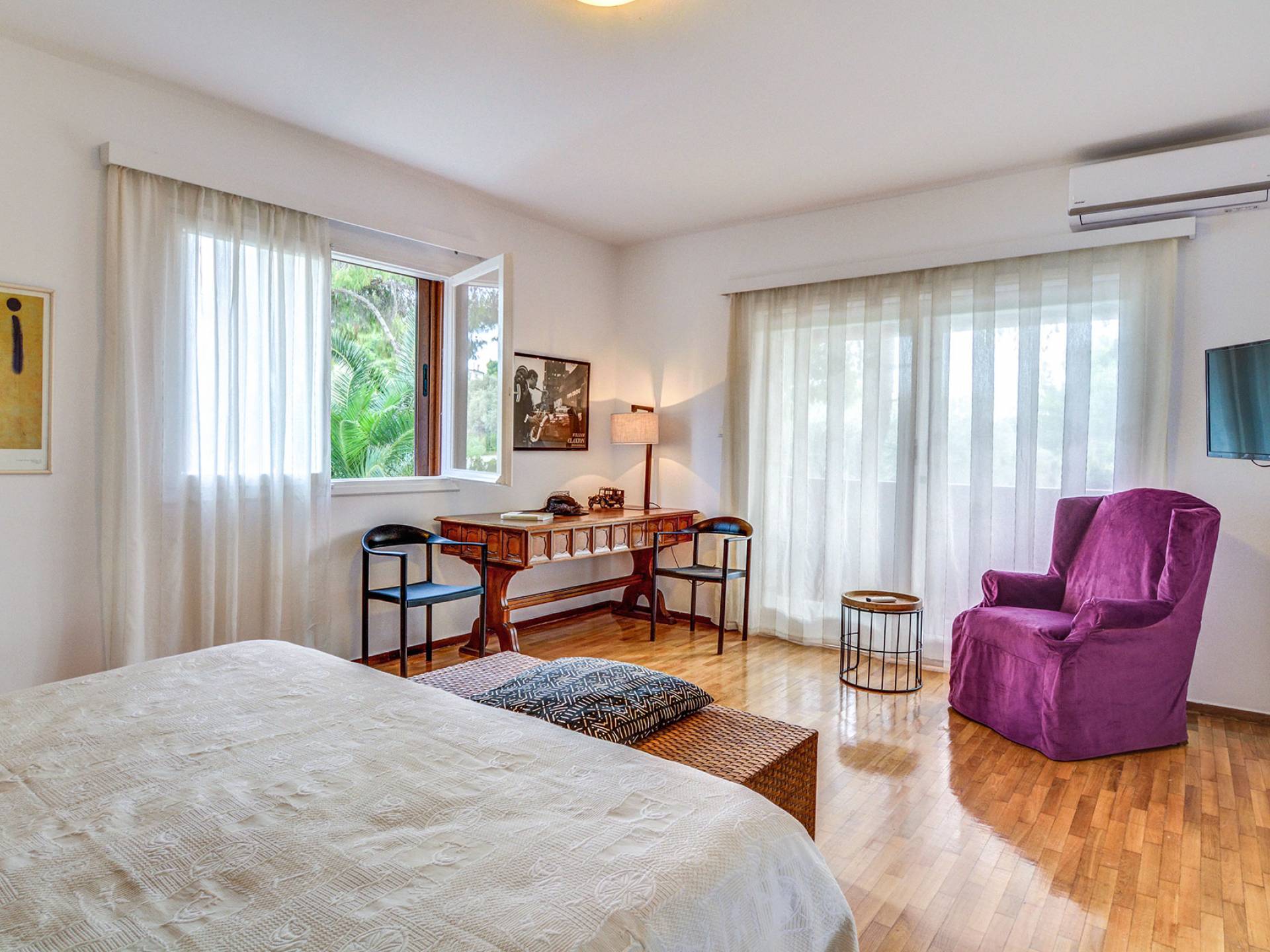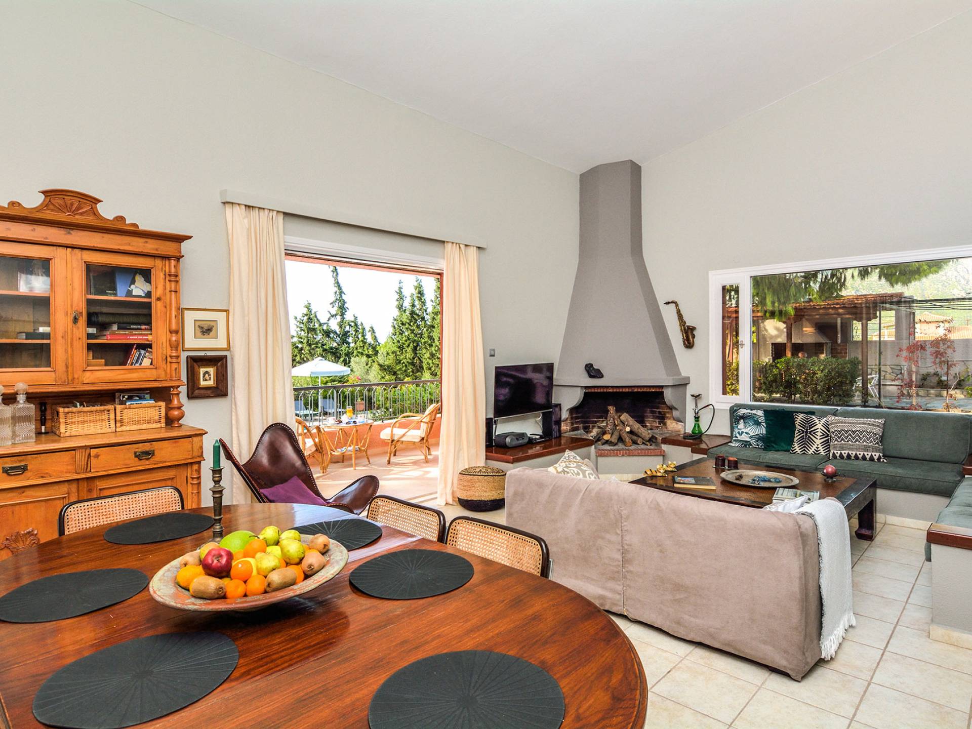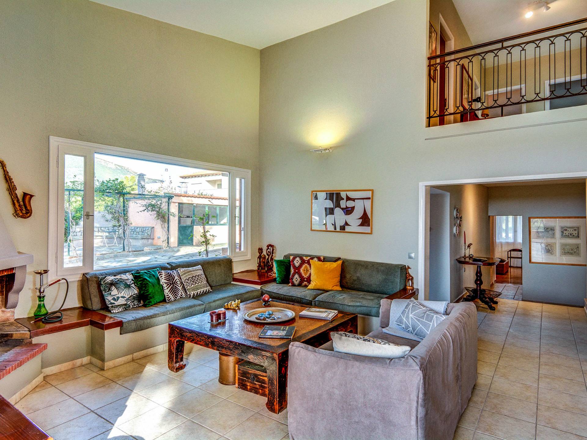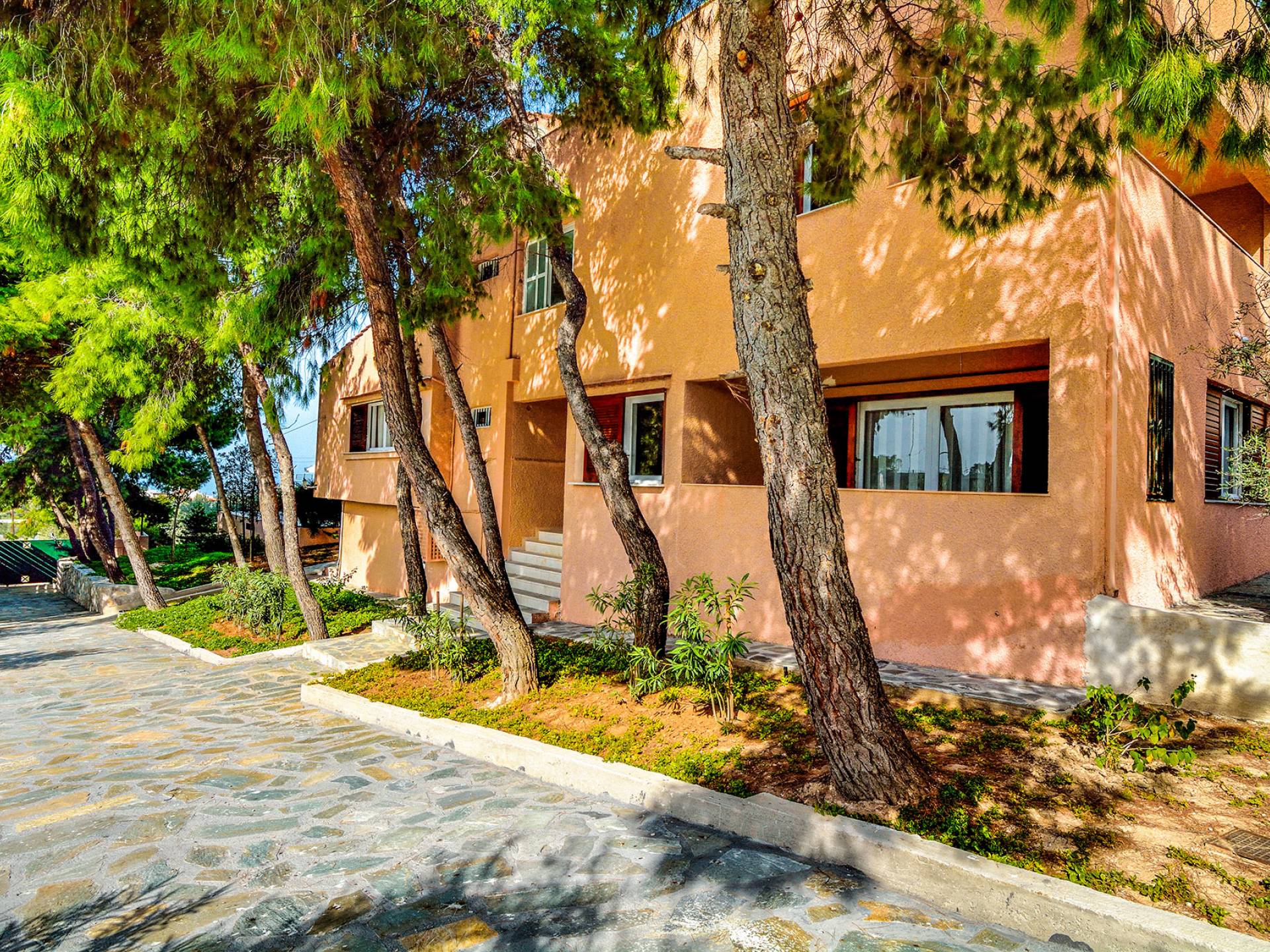 Στον εξωτερικό χώρο, μπορείτε να νιώσετε πολύ γαλήνια μέσα στη φύση, ανάμεσα στα τεράστια πεύκα, τις ελιές, τις λεμονιές, τις μπουκαμβίλιες και τα καλλωπιστικά φυτά που βρίσκονται παντού και γύρω από το μπάρμπεκιου με το ενσωματωμένο καθιστικό περιοχή και τη μεγάλη πισίνα.
