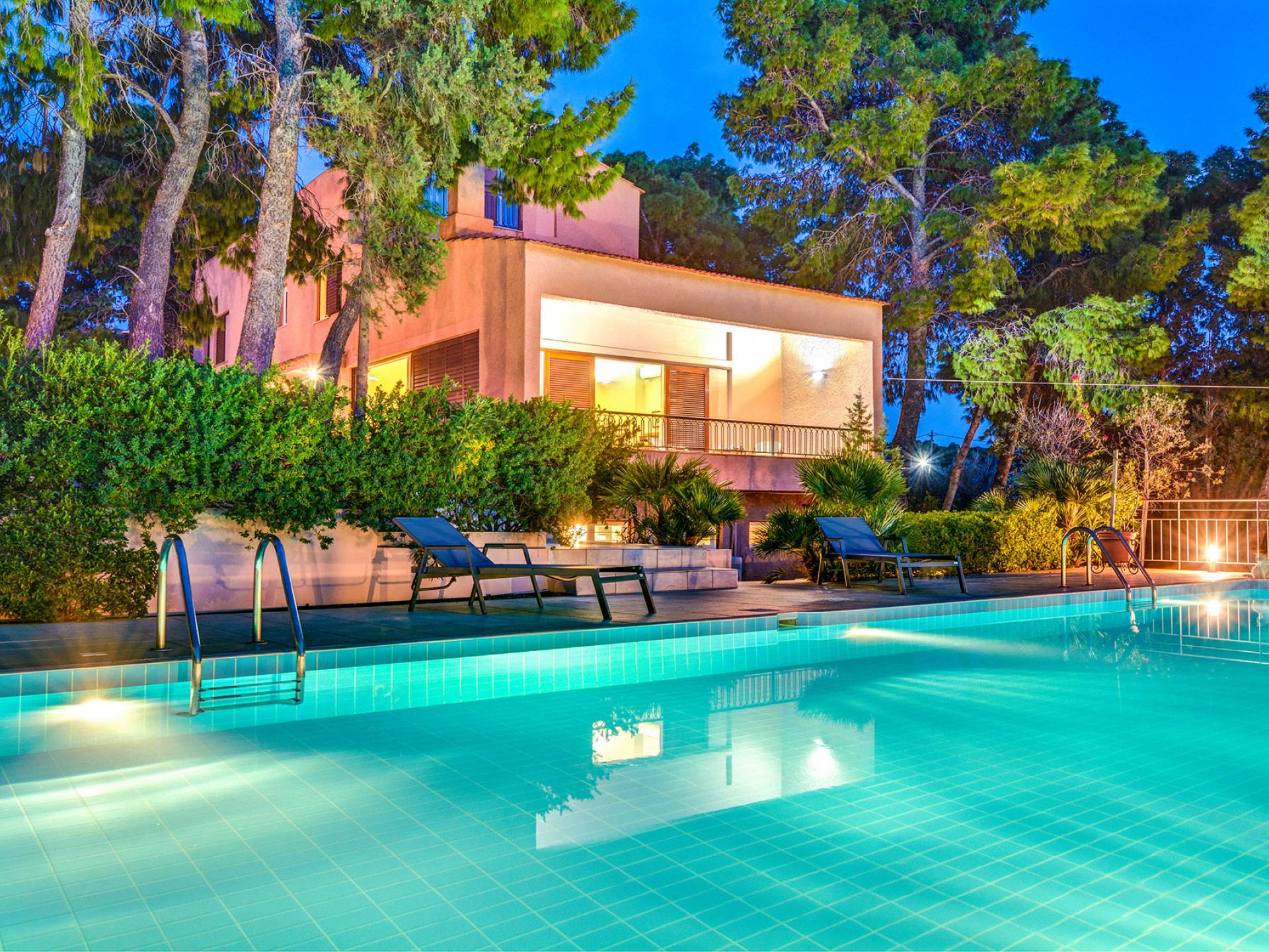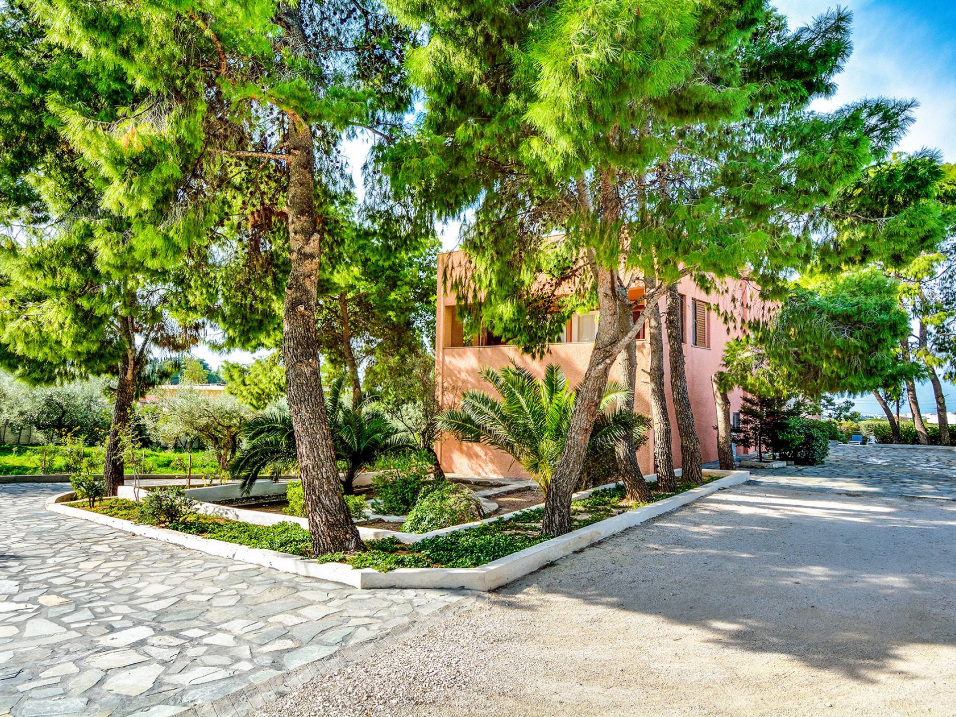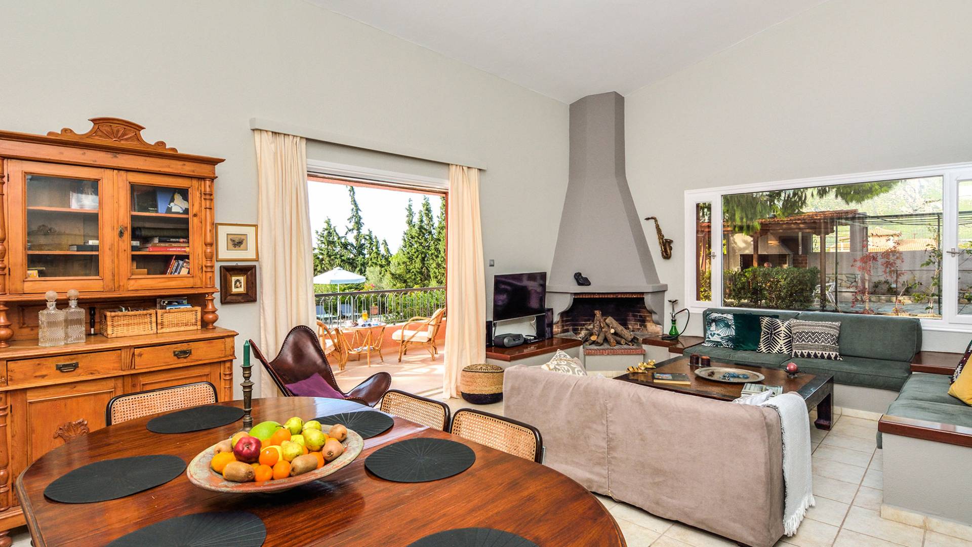 Στον εξωτερικό χώρο, μπορείτε να νιώσετε πολύ γαλήνια μέσα στη φύση, ανάμεσα στα τεράστια πεύκα, τις ελιές, τις λεμονιές, τις μπουκαμβίλιες και τα καλλωπιστικά φυτά που βρίσκονται παντού και γύρω από το μπάρμπεκιου με το ενσωματωμένο καθιστικό περιοχή και τη μεγάλη πισίνα.
