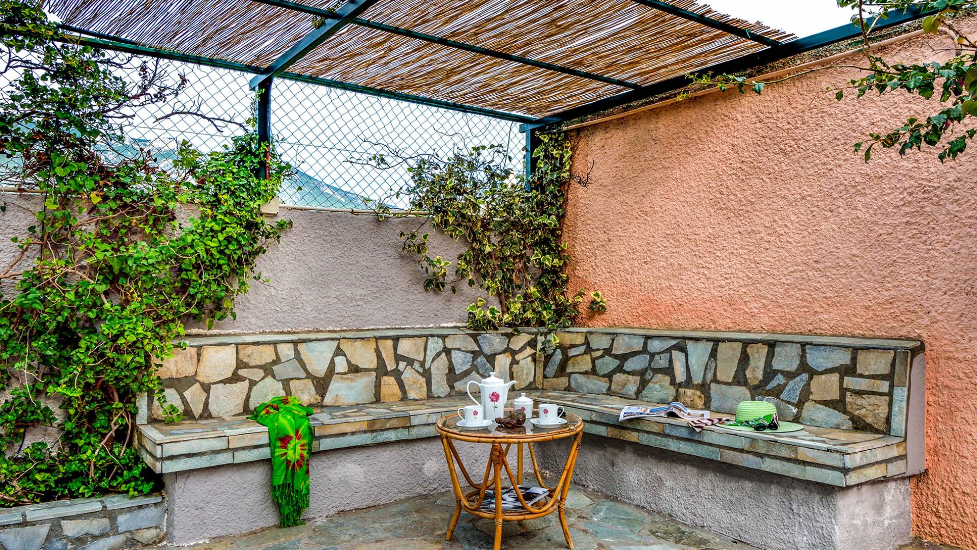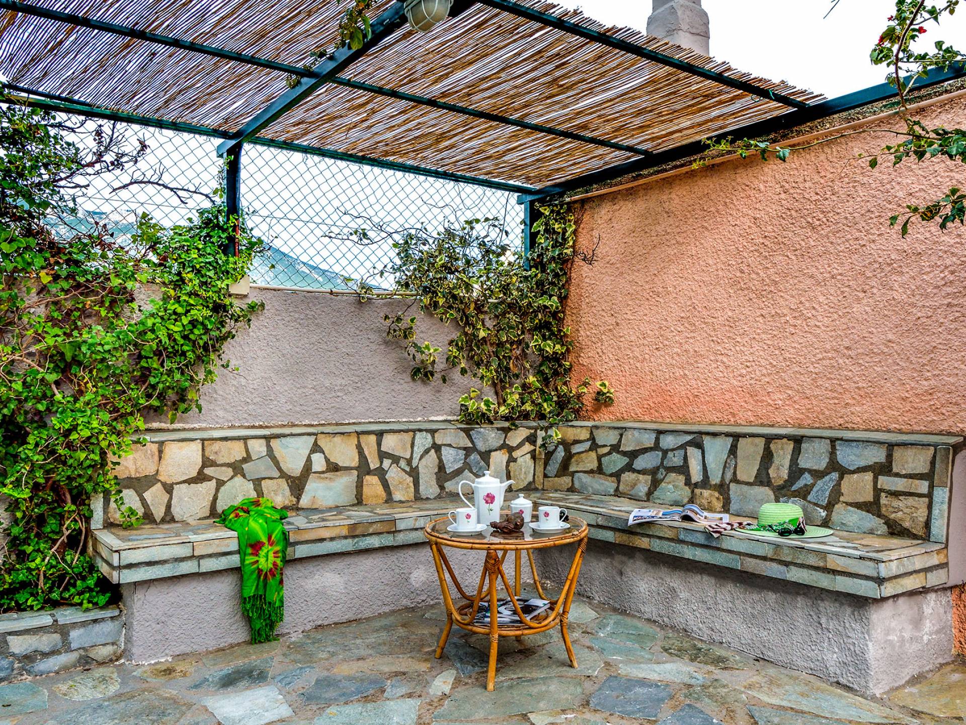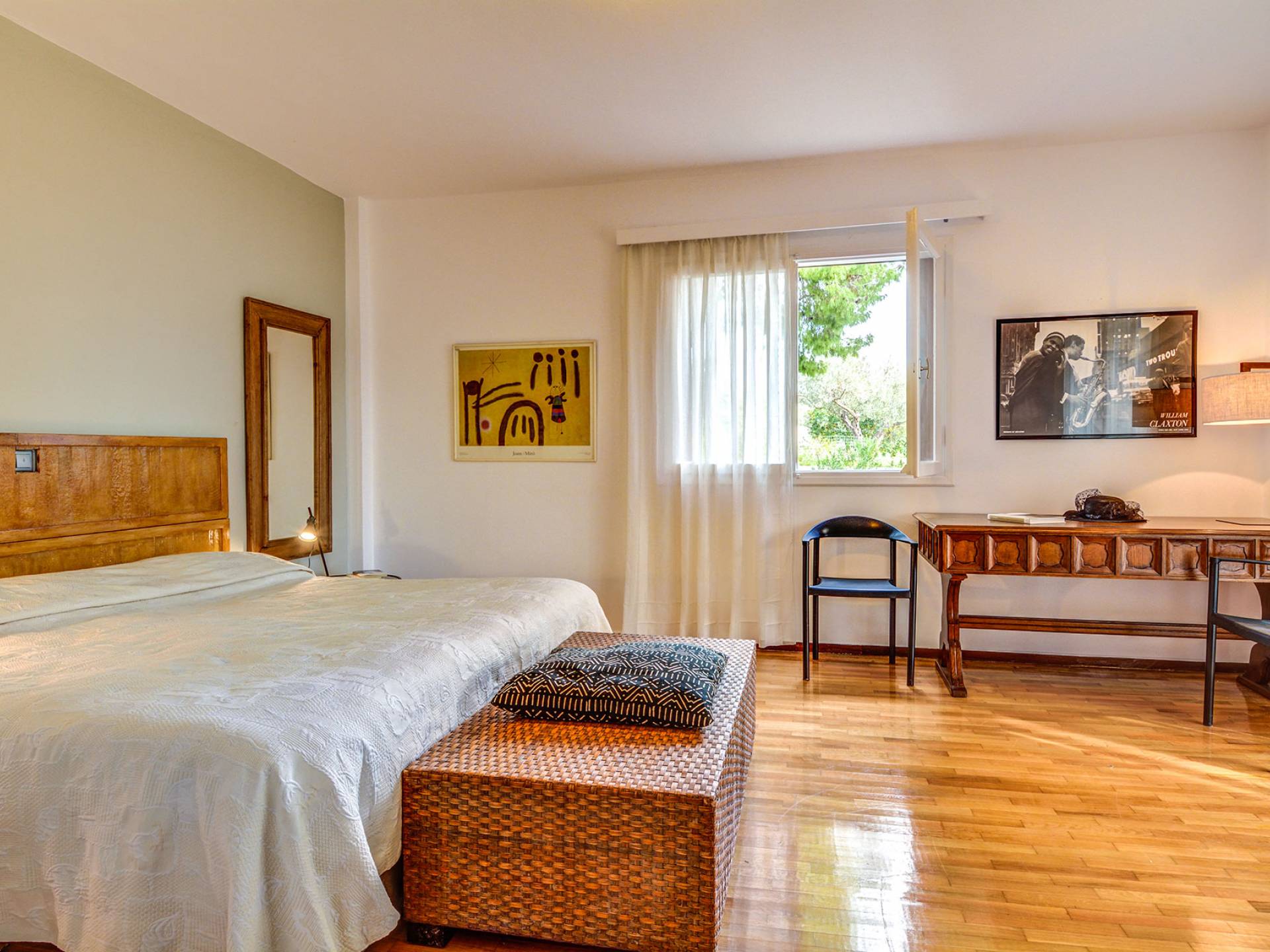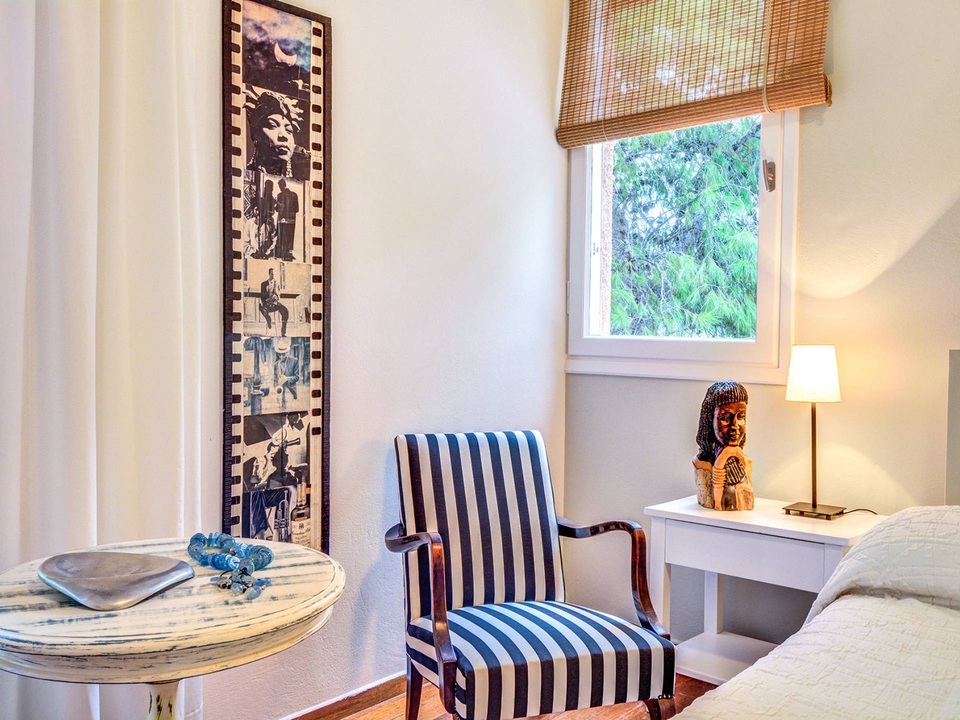 Στον εξωτερικό χώρο, μπορείτε να νιώσετε πολύ γαλήνια μέσα στη φύση, ανάμεσα στα τεράστια πεύκα, τις ελιές, τις λεμονιές, τις μπουκαμβίλιες και τα καλλωπιστικά φυτά που βρίσκονται παντού και γύρω από το μπάρμπεκιου με το ενσωματωμένο καθιστικό περιοχή και τη μεγάλη πισίνα.