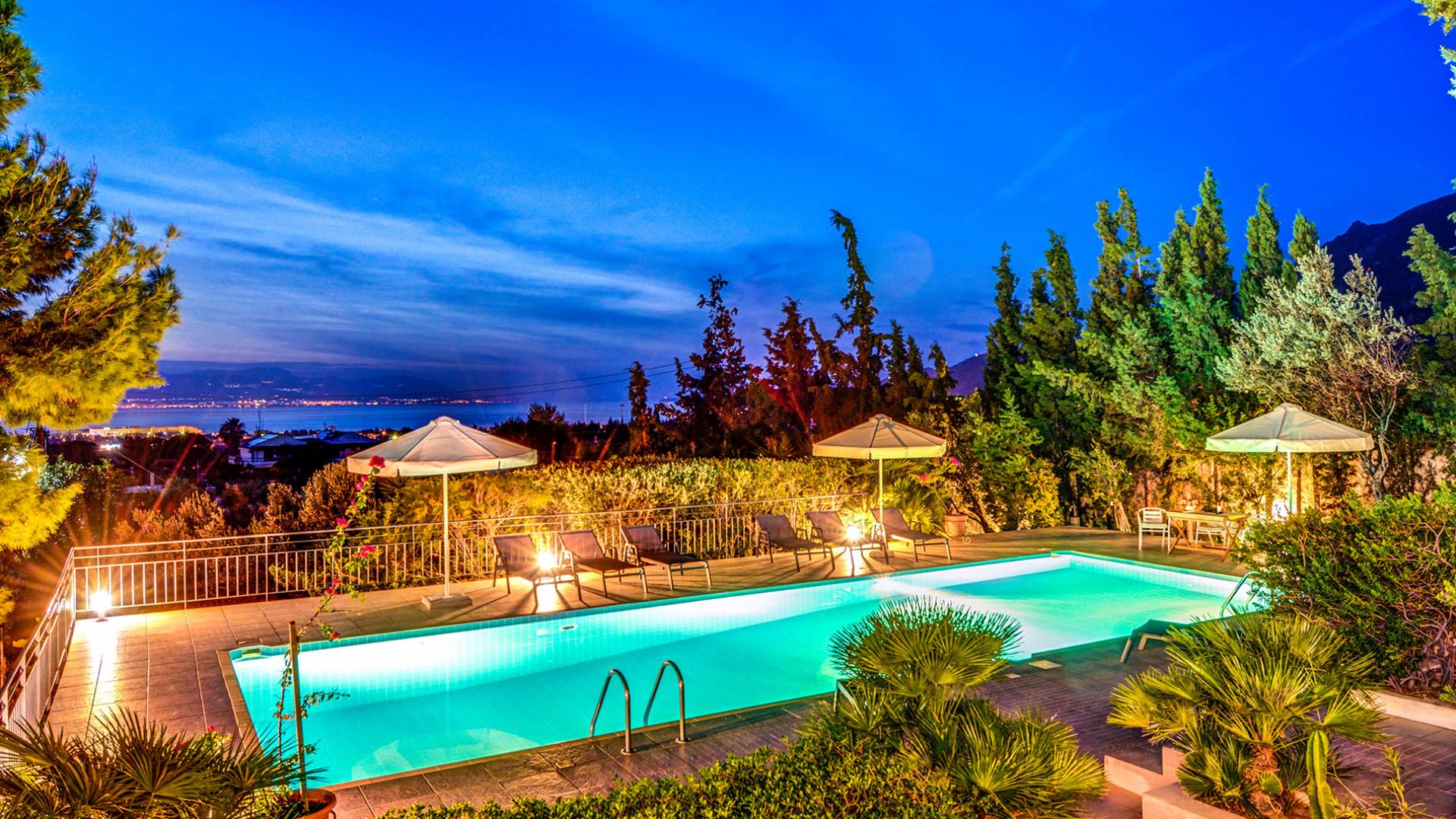 Το Λουτράκι Sunset Villa είναι μια πολυτελής ενοικίαση βίλας με 5 υπνοδωμάτια και ιδιωτική πισίνα. Μια όμορφη βίλα στον κόλπο του Λουτρακίου, το Λουτράκι Sunset πήρε το όνομά του από το υπέροχο ηλιοβασίλεμα που βλέπει από τη βίλα καθώς ο τεράστιος ήλιος πέφτει στα νερά του κόλπου.