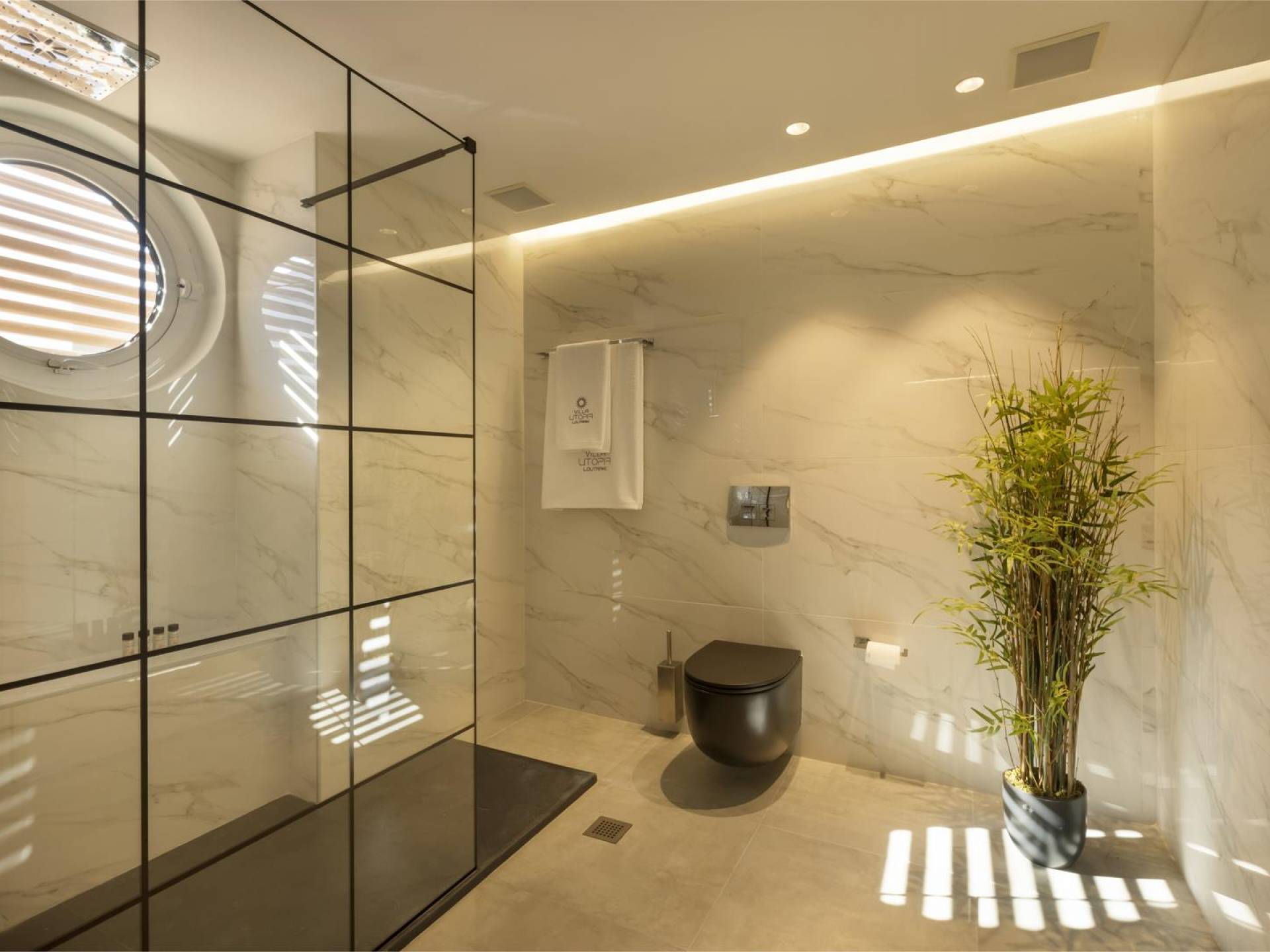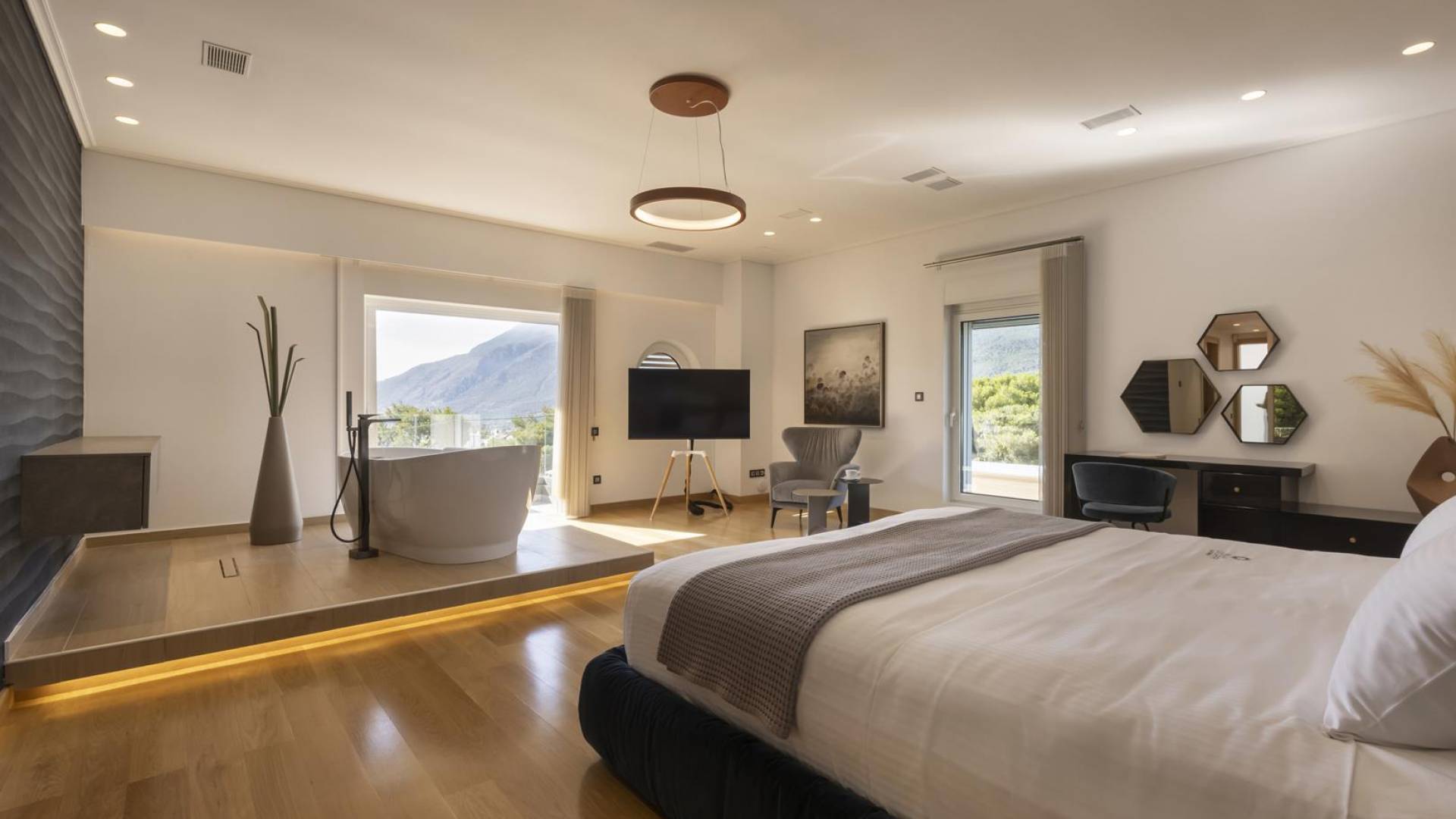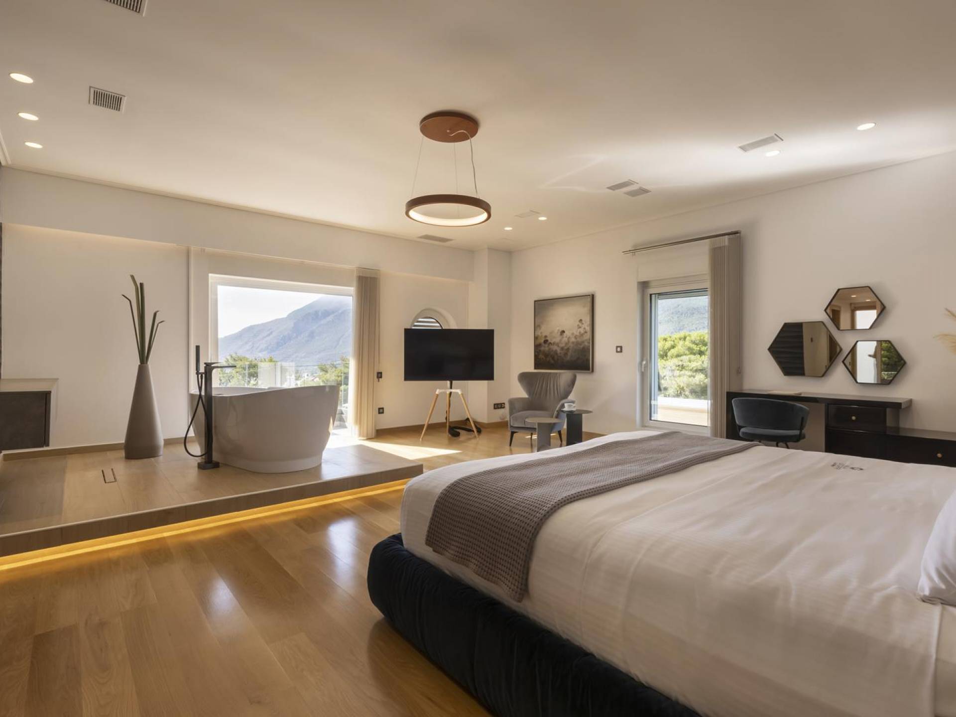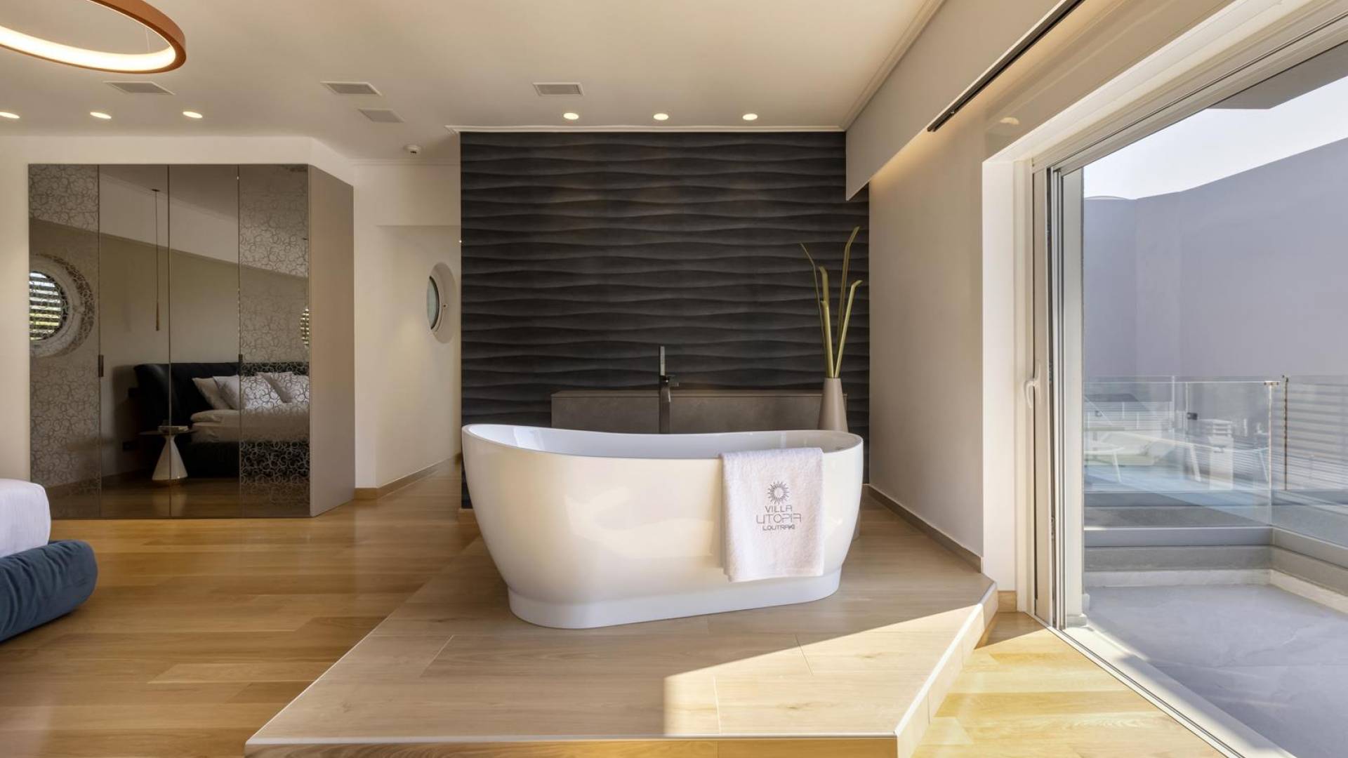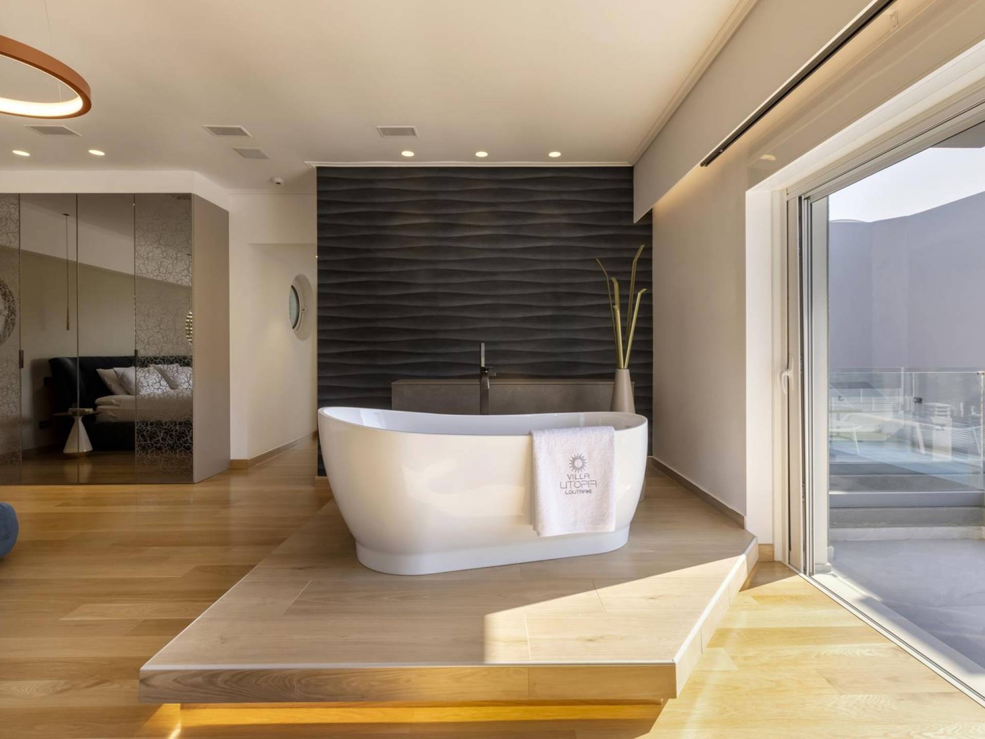 Η πολυτέλεια σας περιμένει στη Villa Utopia, μια απόδραση στην πολυτέλεια στο Λουτράκι, Ελλάδα. Οι εσωτερικοί χώροι αποτελούνται από ένα ισόγειο όπου υπάρχει playroom με πινγκ πονγκ και μπιλιάρδο καθώς και τηλεόραση 65″. Περιλαμβάνει επίσης γυμναστήριο με αεροβική γυμναστική, γραφείο και 4 master υπνοδωμάτια με υδρομασάζ. Στον πρώτο όροφο υπάρχουν δύο master υπνοδωμάτια με υδρομασάζ και κουζίνα του ιταλικού οίκου SCIC. Επιπλέον, υπάρχουν ιδιωτικοί χώροι εργασίας, σαλόνι με Home Cinema Dolby Surround 5.1.