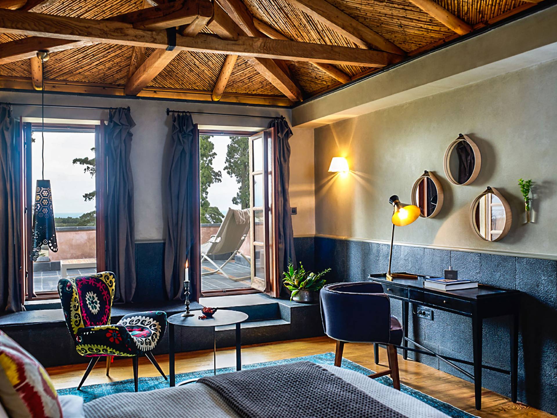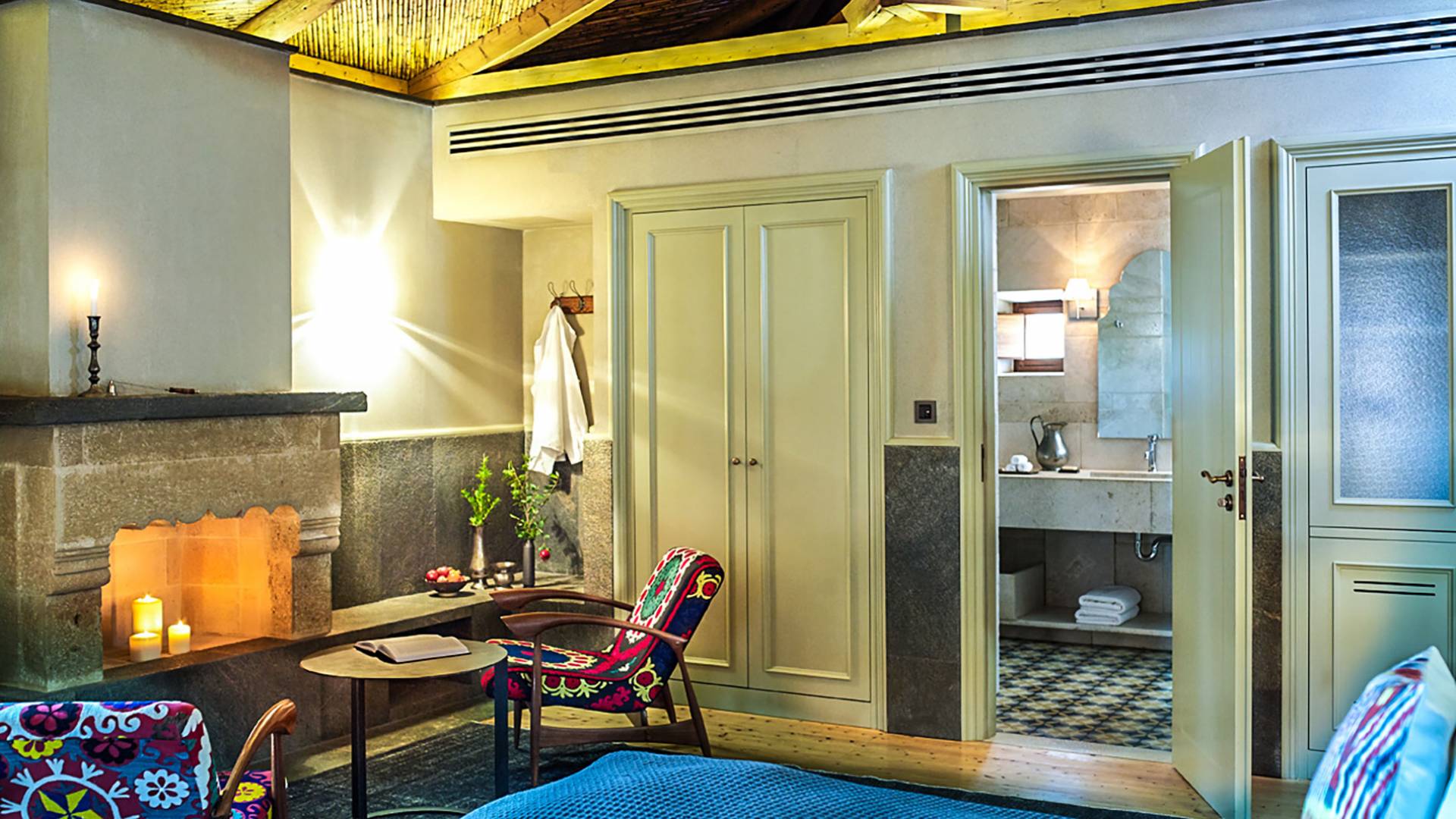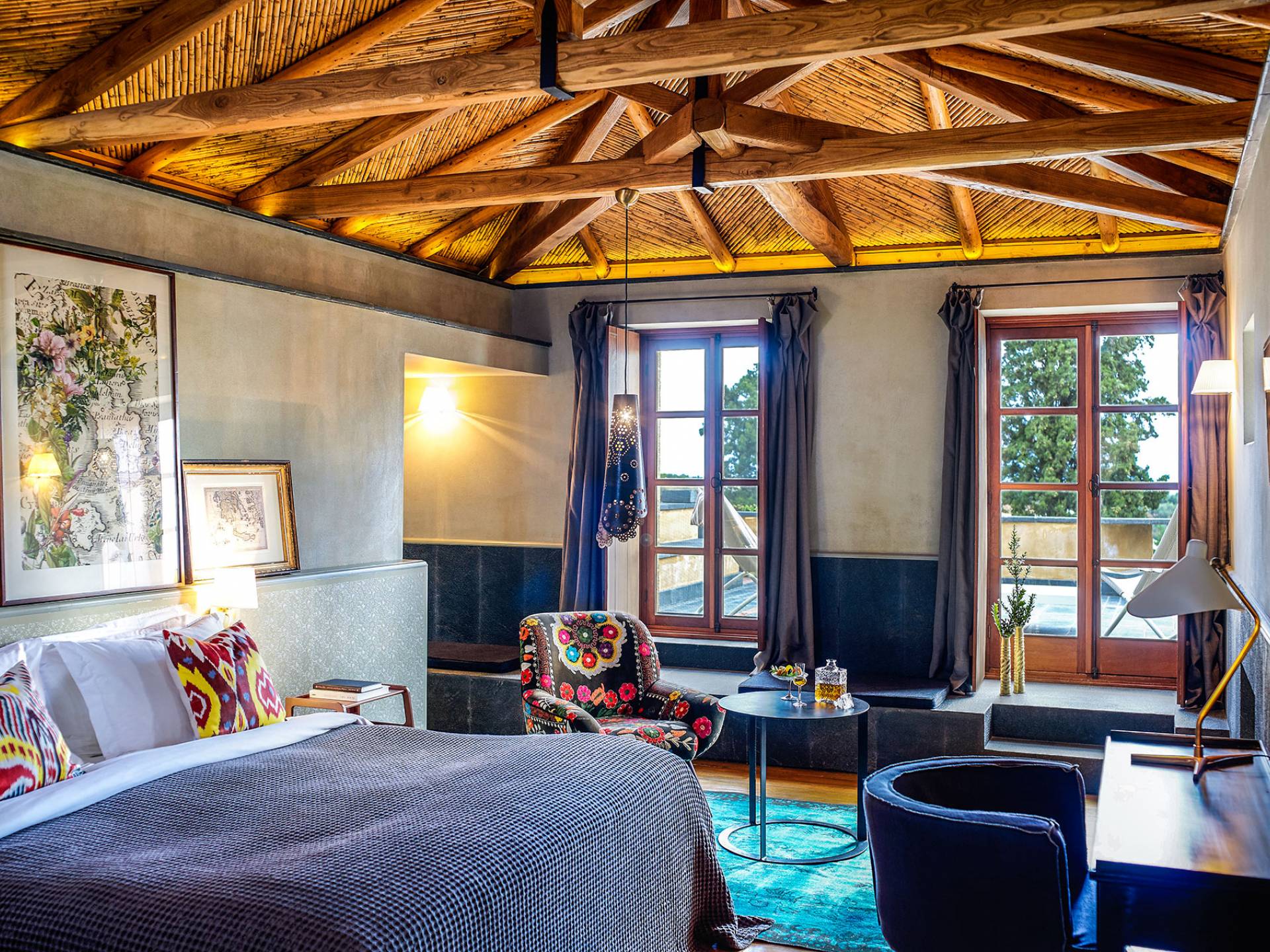 Κάθε δωμάτιο είναι διαφορετικό και μοναδικό, με εξατομικευμένη διάταξη, σχεδιασμό, στυλ και διακόσμηση. Όλα τα δωμάτια και οι σουίτες, ωστόσο, έχουν ορισμένα κοινά χαρακτηριστικά, όπως παραδοσιακά χειροποίητα κεντήματα στους τοίχους, προσαρμοσμένα κεφαλάρια και φωτιστικά, εντυπωσιακές ξύλινες οροφές καλυμμένες με καλάμια ψαροκόκαλου, πολυτελή μαρμάρινα λουτρά, παραδοσιακές ξύλινες πόρτες και παντζούρια, καινούργια και αντικείμενα ντιζάιν αντίκες, λευκά είδη κορυφαίας ποιότητας και προϊόντα προσωπικής περιποίησης. Ταυτόχρονα, όλα τα δωμάτια είναι εξοπλισμένα με σύγχρονες ανέσεις όπως τηλεόραση επίπεδης οθόνης, ασύρματη υπηρεσία internet, κρεβάτια king ή queen size και επιλογή από κορυφαία μαξιλάρια της Cocomat.