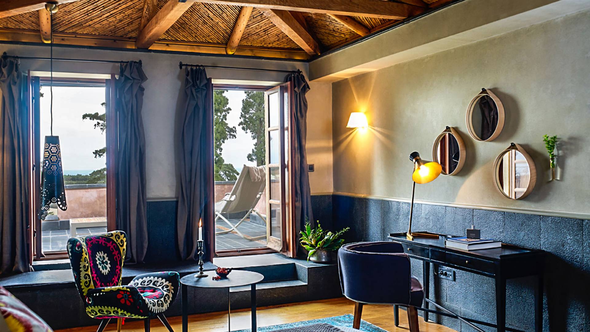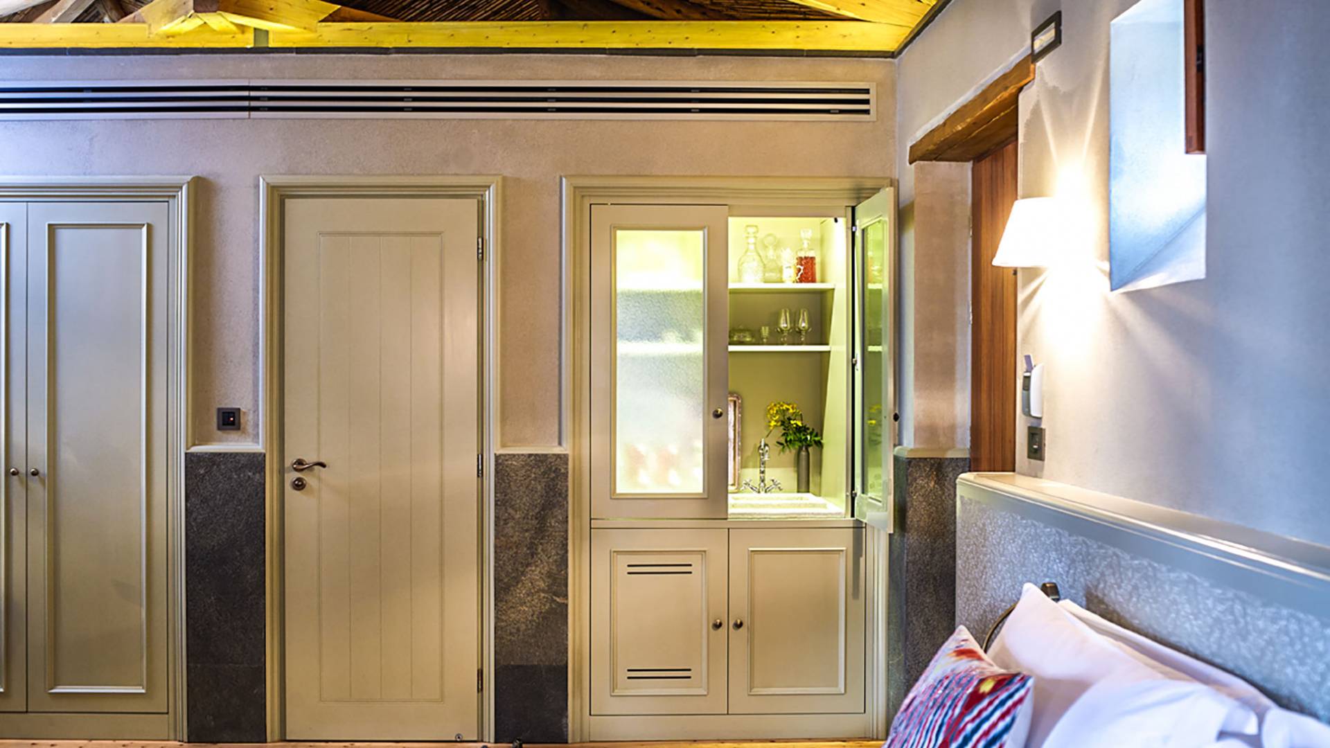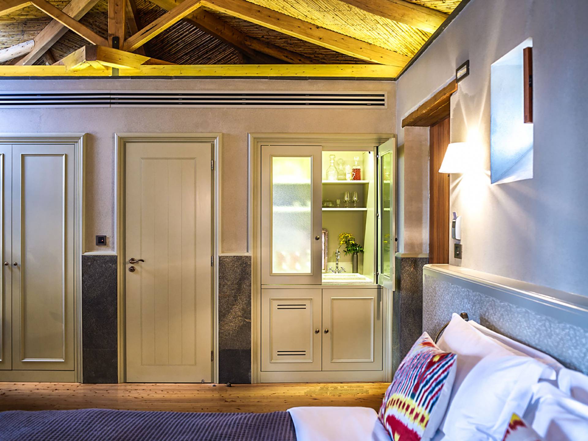 Κάθε δωμάτιο είναι διαφορετικό και μοναδικό, με εξατομικευμένη διάταξη, σχεδιασμό, στυλ και διακόσμηση. Όλα τα δωμάτια και οι σουίτες, ωστόσο, έχουν ορισμένα κοινά χαρακτηριστικά, όπως παραδοσιακά χειροποίητα κεντήματα στους τοίχους, προσαρμοσμένα κεφαλάρια και φωτιστικά, εντυπωσιακές ξύλινες οροφές καλυμμένες με καλάμια ψαροκόκαλου, πολυτελή μαρμάρινα λουτρά, παραδοσιακές ξύλινες πόρτες και παντζούρια, καινούργια και αντικείμενα ντιζάιν αντίκες, λευκά είδη κορυφαίας ποιότητας και προϊόντα προσωπικής περιποίησης. Ταυτόχρονα, όλα τα δωμάτια είναι εξοπλισμένα με σύγχρονες ανέσεις όπως τηλεόραση επίπεδης οθόνης, ασύρματη υπηρεσία internet, κρεβάτια king ή queen size και επιλογή από κορυφαία μαξιλάρια της Cocomat.