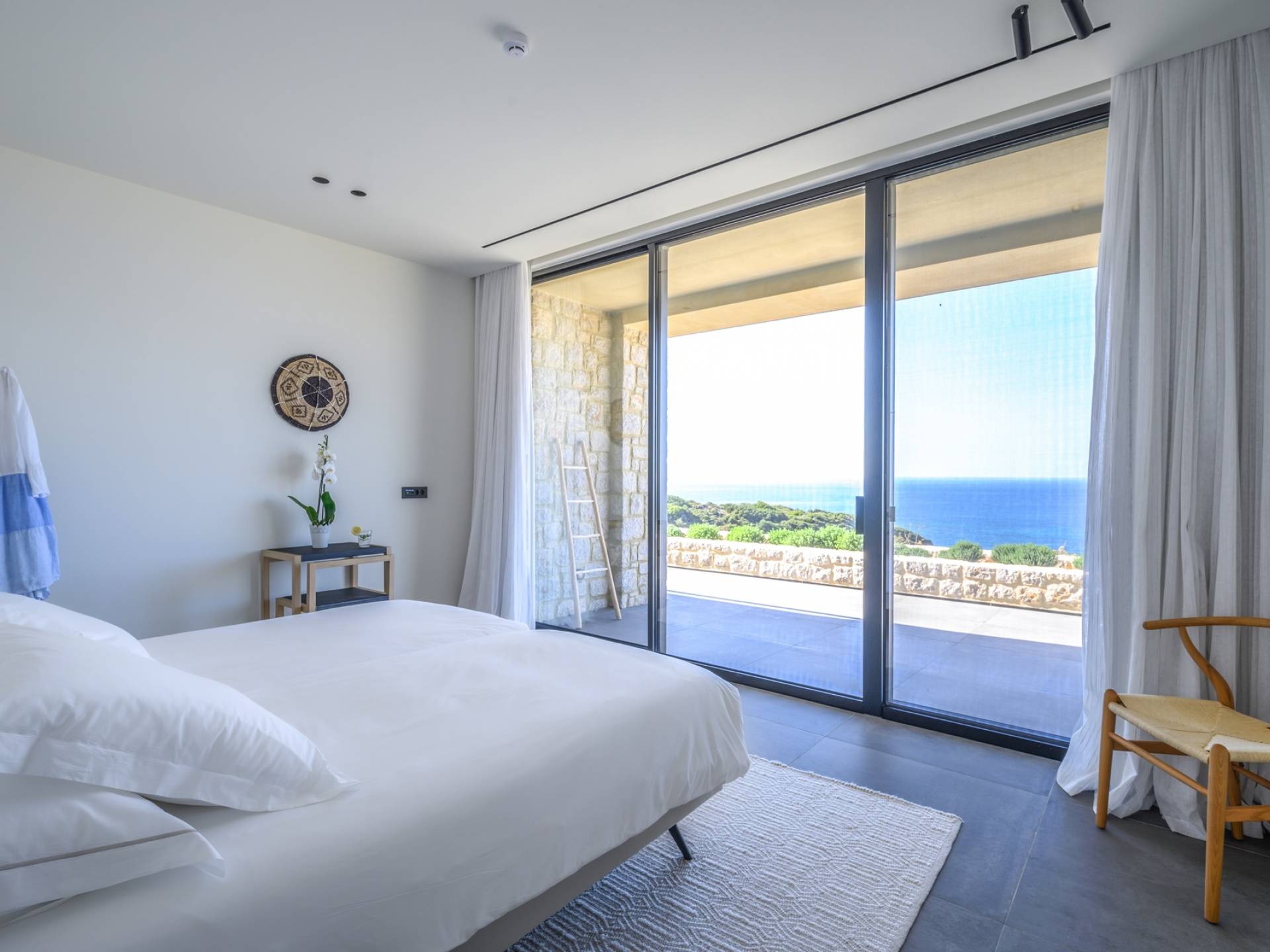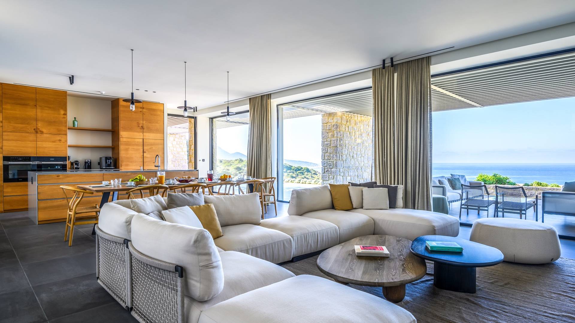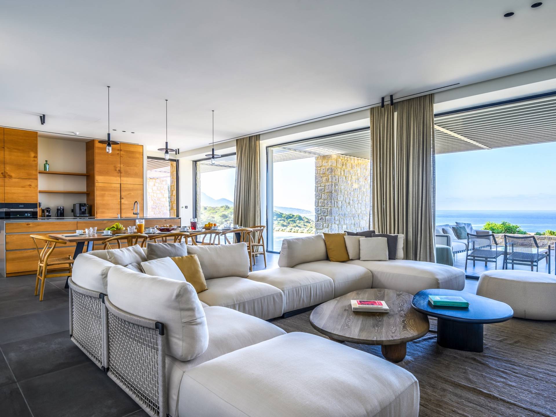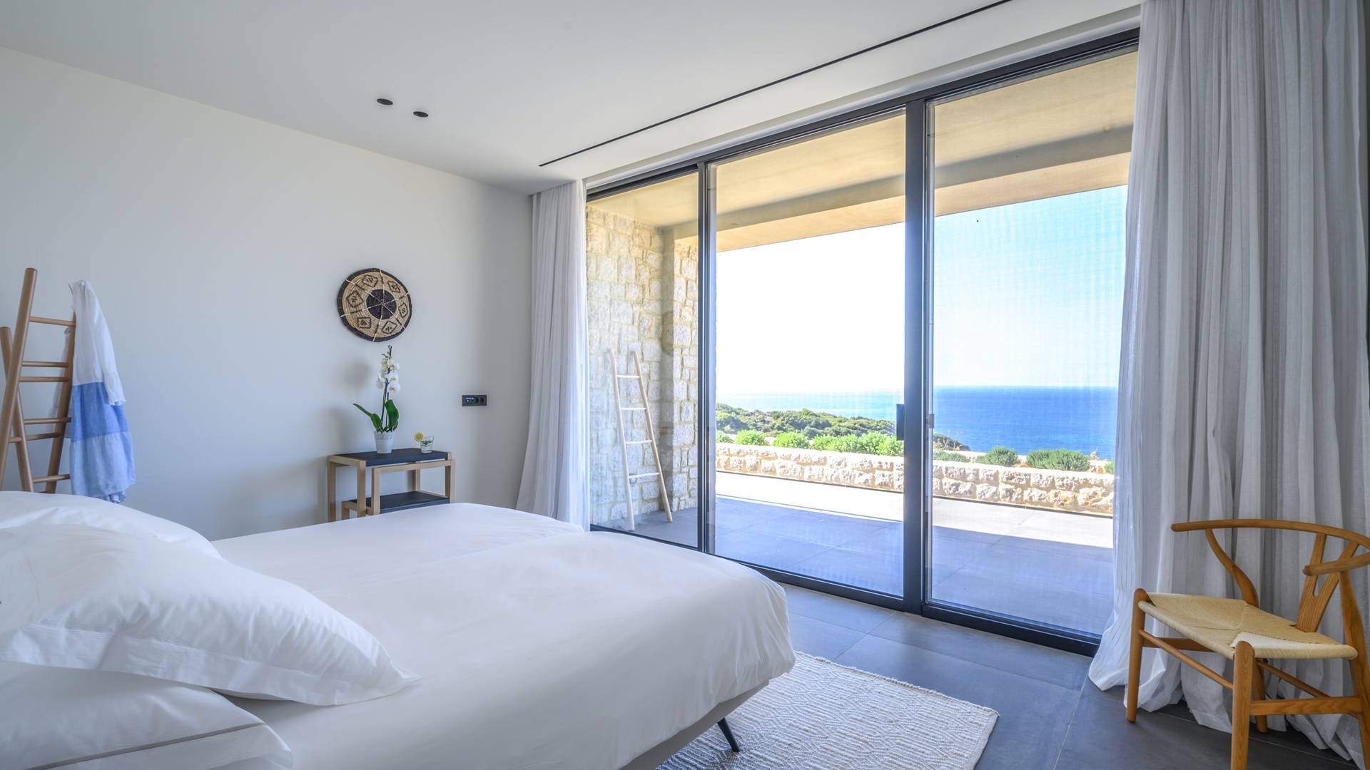 Το εσωτερικό της Liades End Villa είναι ένα όμορφο και ευρύχωρο μέρος με μινιμαλιστικό στυλ και άφθονο φυσικό φως. Τα απαλά γκρι σε συνδυασμό με το βαθύ μπλε της θάλασσας δημιουργούν μια καταπραϋντική παλέτα ενώ μια αίσθηση ζεστασιάς δημιουργείται από φυσικά υλικά όπως το ξύλο και η πέτρα. Όλα τα υπνοδωμάτια έχουν θέα στη θάλασσα, κάτι που εξασφαλίζει ένα ευχάριστο ξύπνημα!