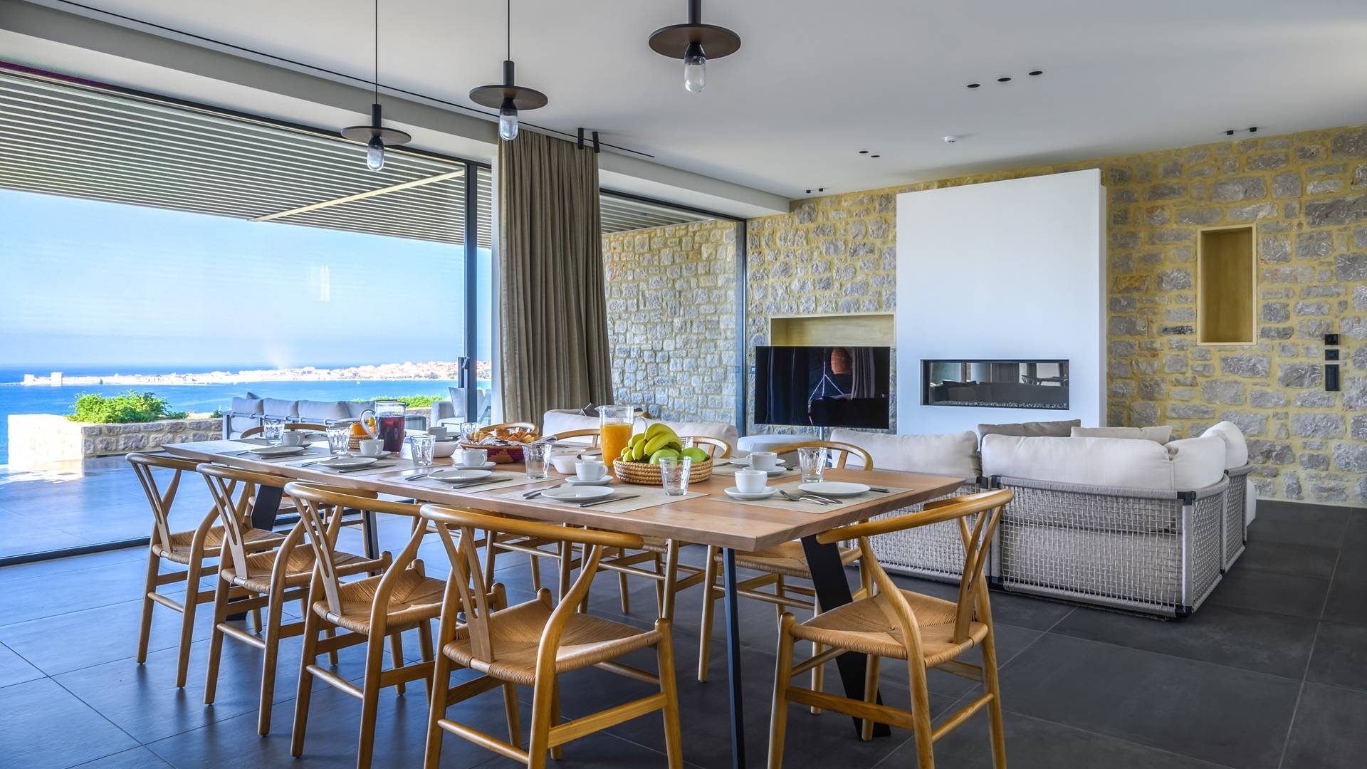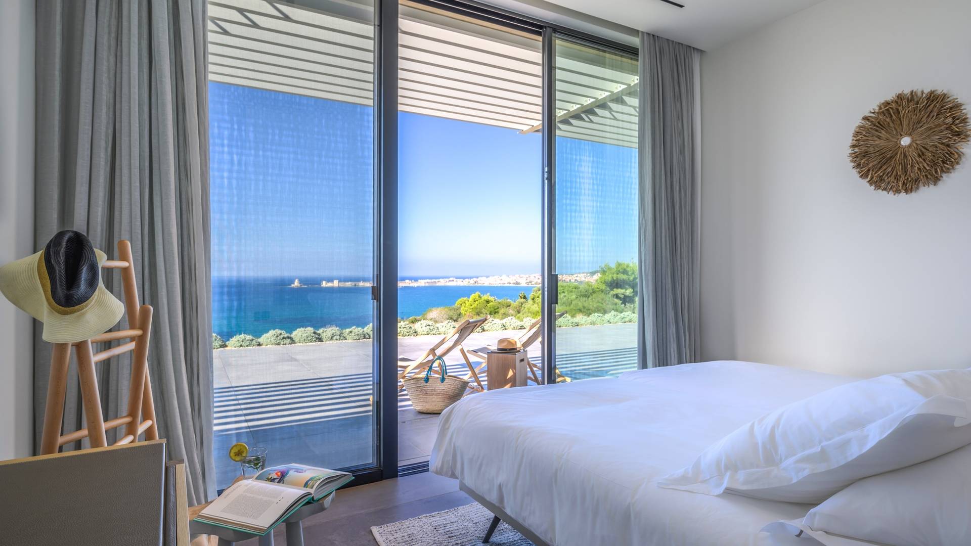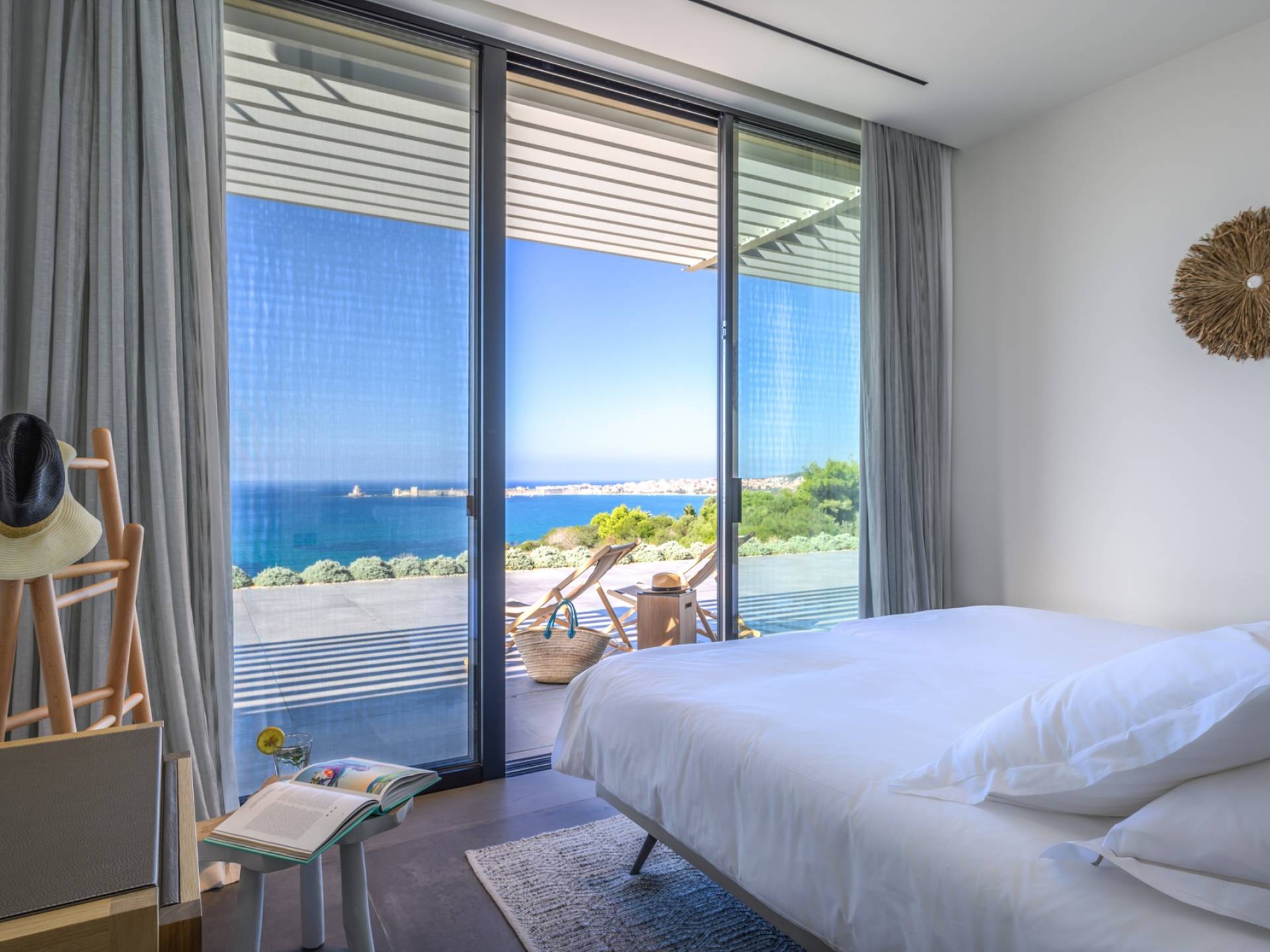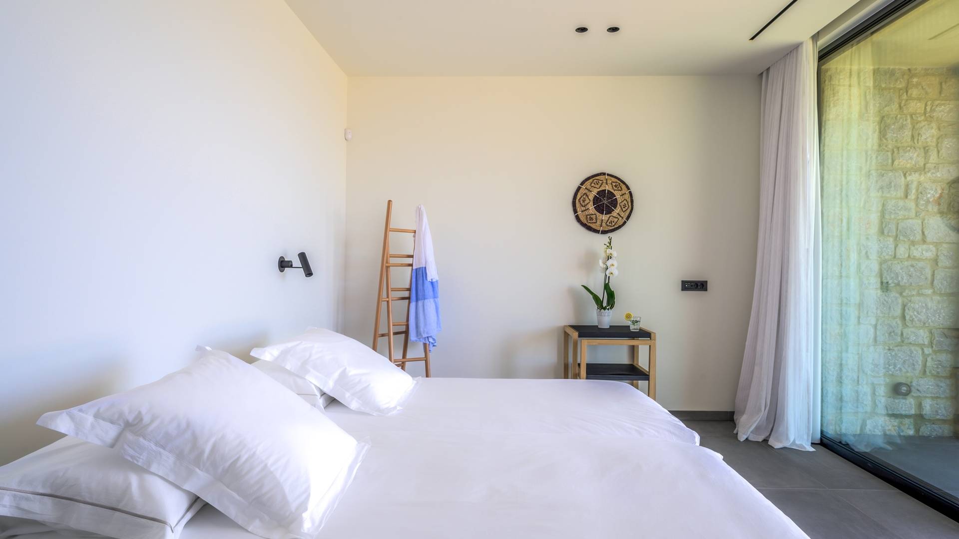 Το εσωτερικό της Liades End Villa είναι ένα όμορφο και ευρύχωρο μέρος με μινιμαλιστικό στυλ και άφθονο φυσικό φως. Τα απαλά γκρι σε συνδυασμό με το βαθύ μπλε της θάλασσας δημιουργούν μια καταπραϋντική παλέτα ενώ μια αίσθηση ζεστασιάς δημιουργείται από φυσικά υλικά όπως το ξύλο και η πέτρα. Όλα τα υπνοδωμάτια έχουν θέα στη θάλασσα, κάτι που εξασφαλίζει ένα ευχάριστο ξύπνημα!