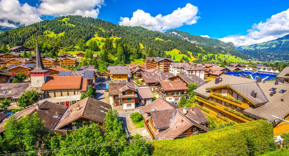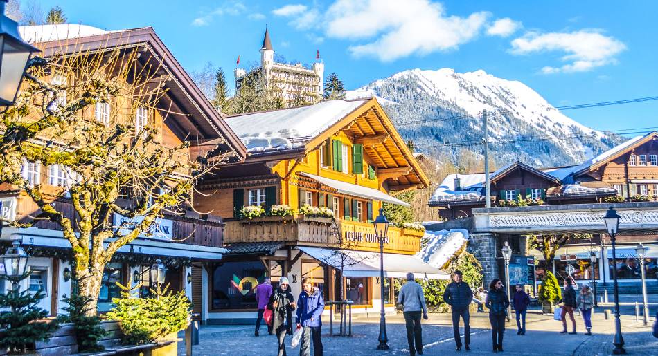 Οι ορεινοί σιδηρόδρομοι και οι οδοί παρέχουν πρόσβαση σε jet-δημοφιλές Gstaad στη νοτιοδυτική περιοχή των Ελβετικών Άλπεων. Τρία χιονοδρομικά κέντρα, χιονοδρομία, 10 σχολές χειμερινών σπορ και περισσότερα από 30 μίλια από μονοπάτια σκι αντοχής βρίσκονται σε κοντινή απόσταση από αυτήν την παραθεριστική πόλη χωρίς κυκλοφορία, η οποία είναι επίσης γνωστή για την εξαιρετική της κουζίνα. Ένας περίπατος με πολυτελείς μπουτίκ διασχίζει το κέντρο της πόλης. Οι δραστηριότητες είναι επίσης άφθονες το καλοκαίρι, όπως τένις, γκολφ, πεζοπορία και ορειβασία.