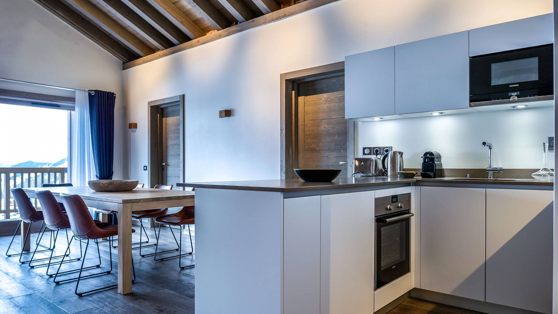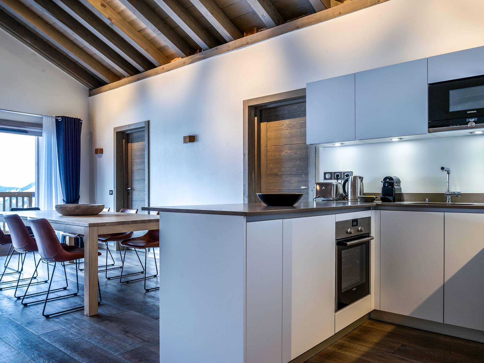 Από την αρχιτεκτονική μέχρι την εσωτερική διακόσμηση, τα διαμερίσματα σε ορεινό στιλ δημιουργούν ένα κουκούλι όπου η ατμόσφαιρα είναι ζεστή και εκλεπτυσμένη. Με φίλους ή οικογένεια, απολαύστε πολυτελή καταλύματα σε ιδανική τοποθεσία στο Courchevel Moriond, κοντά σε καταστήματα και όλες τις ανέσεις. Από την κατοικία, κάντε σκι στην περιοχή 3 Vallées ή απολαύστε το Aquamotion, το μεγαλύτερο ευρωπαϊκό υδάτινο πάρκο με πισίνες, λιμνοθάλασσες, σπα και γυμναστήριο.