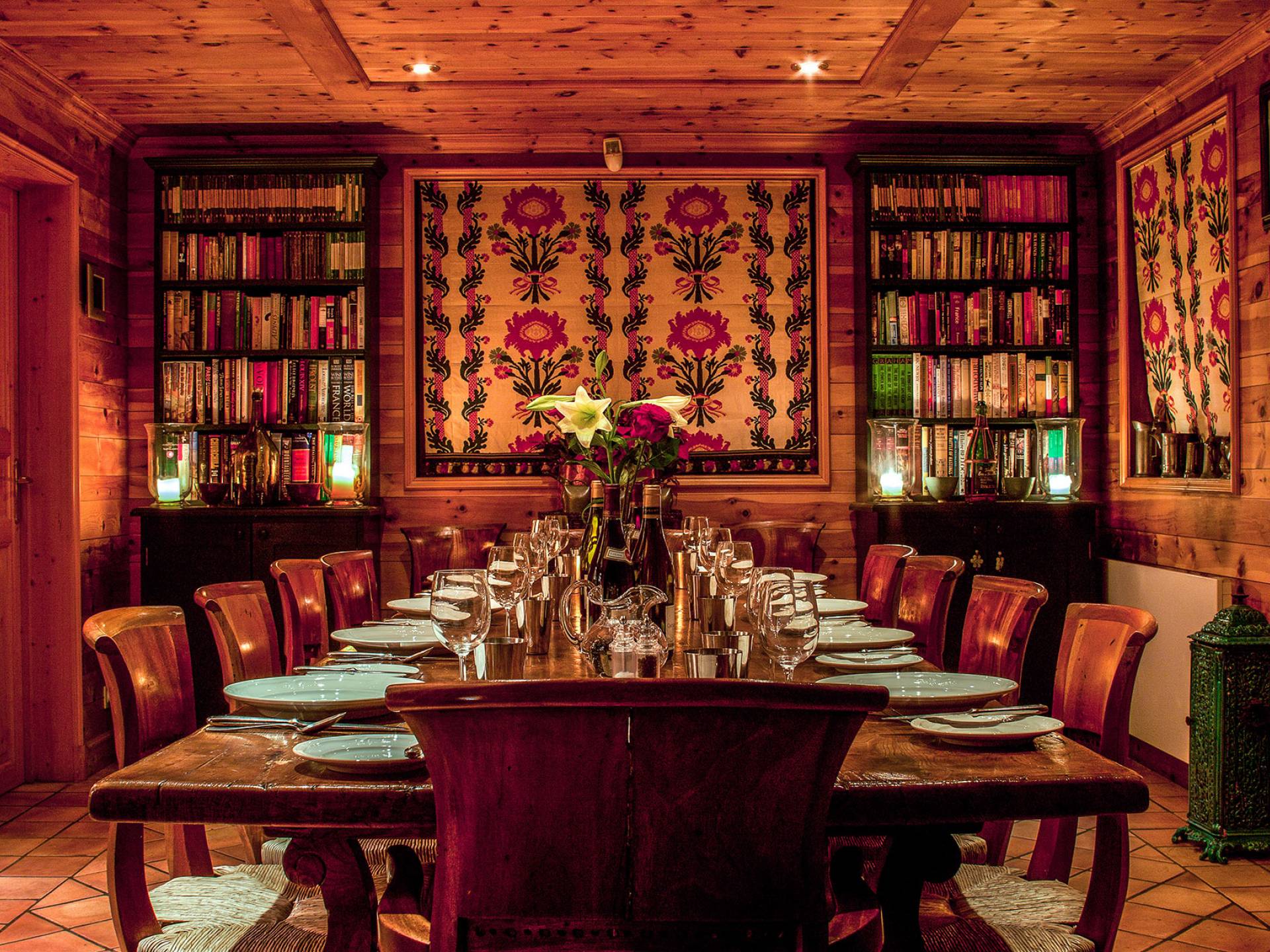 Η καρδιά του Chalet La Varappe Meribel είναι το σαγηνευτικό και άνετο καθιστικό του. Με το εντυπωσιακό πέτρινο τζάκι, τα υπέροχα έργα τέχνης, τις ενδιαφέρουσες αντίκες και τα βασικά αγγλικά έπιπλα, θα νιώσετε σαν να μπορείτε να κουλουριαστείτε στον καναπέ για πάντα. Οι γεμάτες βιβλιοθήκες και τα πολυτελή έπιπλα της τραπεζαρίας υπόσχονται μια χαλαρή αλλά εκλεπτυσμένη γαστρονομική εμπειρία. Και με 10 θέσεις στο τραπέζι, είναι ένα φανταστικό μέρος για να συναντήσετε υπέροχα φαγητά και κρασί.