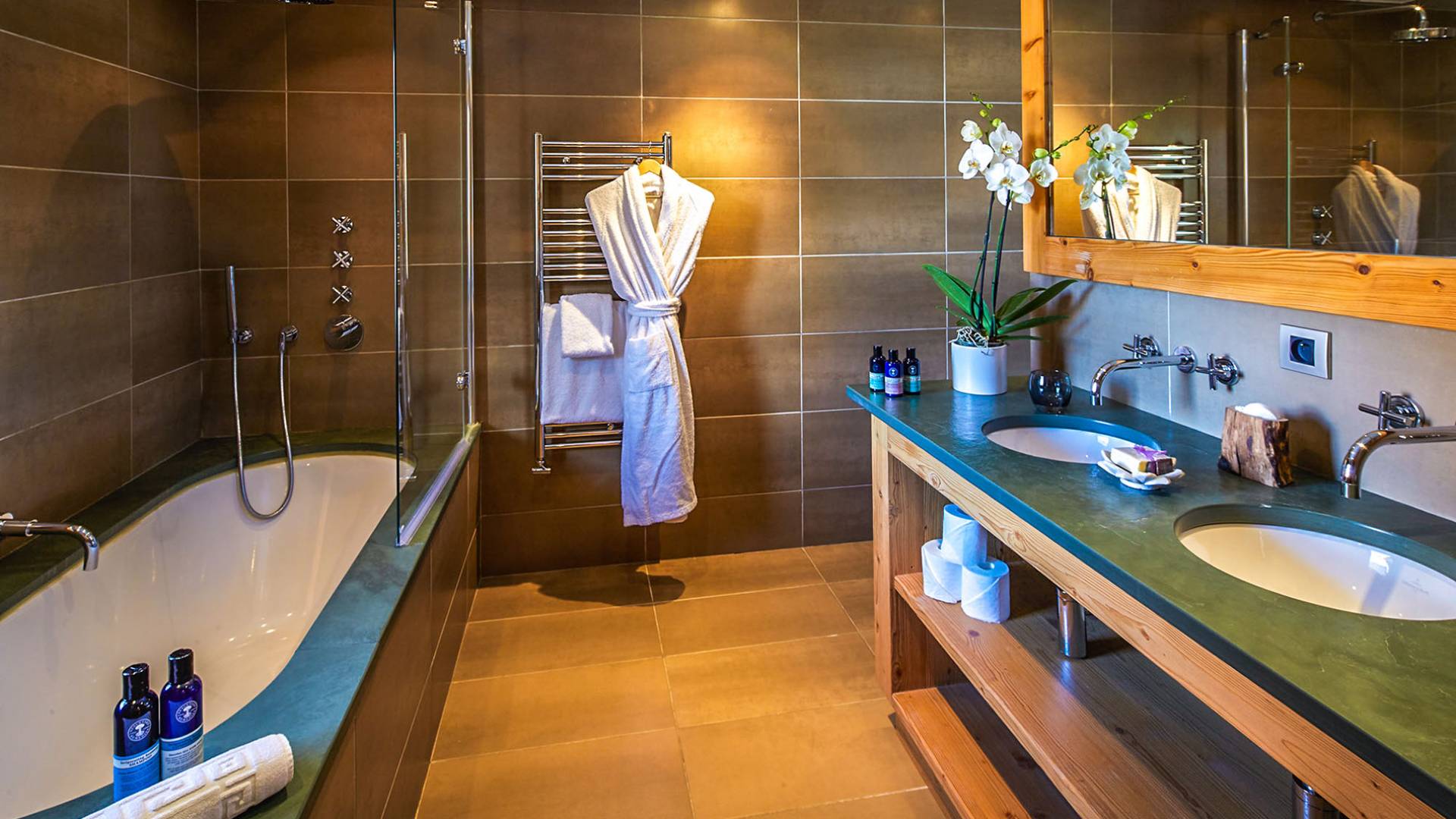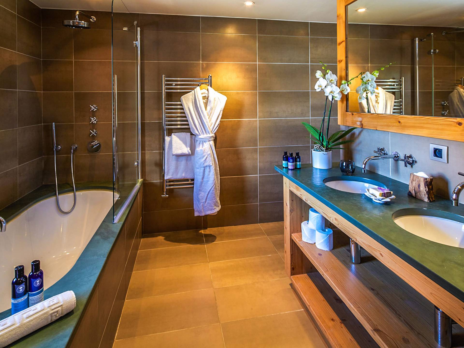 Εξαιρετικά επιπλωμένο με ντόπιο ξύλο και πέτρα και αρωματισμένο με βρετανική και γαλλική αισθητική, αυτό το πολυτελές σπίτι εξισορροπεί το ευρύχωρο αλπικό στιλ με την αναγκαία άνεση, καθιστώντας το ιδανικό καταφύγιο μετά από μια κουραστική μέρα στις πλαγιές.