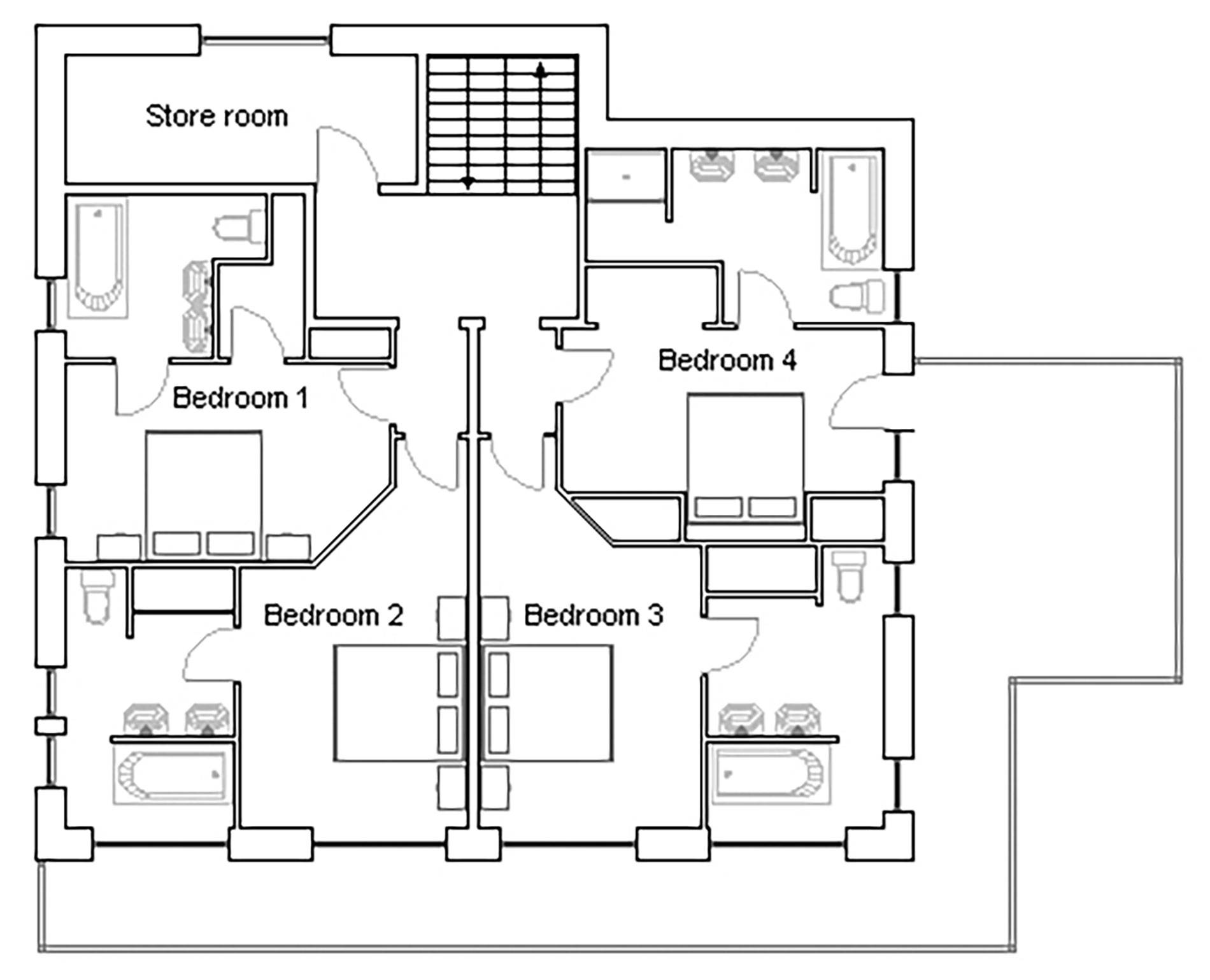 Αποτελείται από επτά ξεχωριστά διακοσμημένα μεγάλα δωμάτια με 1 κρεβάτι king/2 μονά κρεβάτια, όλα με εκπληκτικό ιδιωτικό μπάνιο, είναι επίσης δυνατό να υπάρχουν επιπλέον κρεβάτια για μικρά παιδιά. Υπάρχει πάντα χώρος για ένα μικρό! Βρίσκεται στο κάτω μέρος της υπέροχης πίστας Georges Mauduit, το Lapin Blanc απέχει μόλις δευτερόλεπτα από το κεντρικό κέντρο ανελκυστήρων του Méribel και τα σημεία συνάντησης της σχολής σκι. Για βραδινές εξόδους με φίλους, βρίσκεται σε μικρή απόσταση από το κέντρο του Meribel.