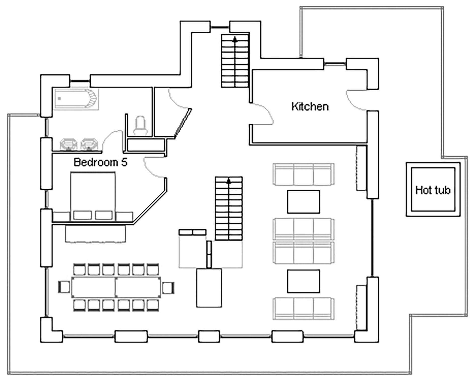 >Το Chalet Lapin Blanc Meribel pièce de résistance πρέπει να είναι η τεράστια καθιστική και τραπεζαρία του, η οποία με την κεντρική τζάκι ανοίγει εντυπωσιακή πρώτη εντύπωση. Η τραπεζαρία φιλοξενεί εύκολα 14 άτομα και επειδή το καθιστικό ανοίγει στον ημιώροφο πάνω, η αίσθηση του χώρου είναι αξιοσημείωτη. Για εκείνο το σωστά ποτήρι σαμπάνια, τα παράθυρα με νότιο προσανατολισμό ανοίγουν σε μια ηλιόλουστη βεράντα και για απόλυτη αναζωογόνηση, το υπαίθριο υδρομασάζ καλεί τους πονεμένους μύες.
