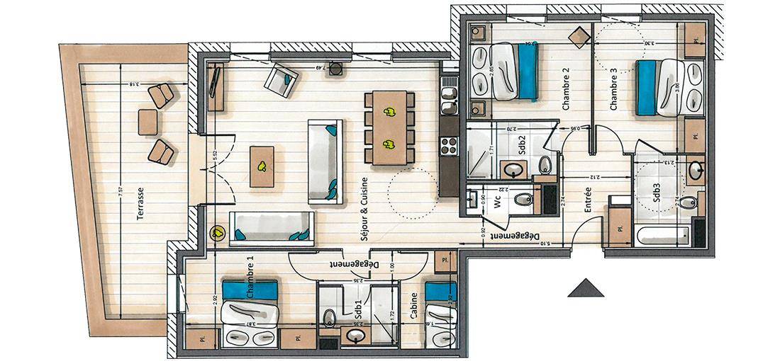 Το Διαμέρισμα B103, που βρίσκεται στον 1ο όροφο του Residence Annapurna Les Gets, με επιφάνεια 109 τ.μ., είναι ιδανικό για να υποδεχθεί 8 άτομα. Αυτό το διαμέρισμα διαθέτει τρία υπνοδωμάτια με διπλό κρεβάτι, μια καμπίνα υπνοδωματίου με κουκέτα συν τρία μπάνια. Το σαλόνι με τηλεόραση διαθέτει επίσης πλήρως εξοπλισμένη κουζίνα και μπαλκόνι. Κατά τη διάρκεια των διακοπών σας, μπορείτε να επωφεληθείτε από μια θέση στάθμευσης στον ιδιωτικό χώρο στάθμευσης αυτοκινήτων, ένα ντουλάπι σκι και πρόσβαση Wi-Fi.