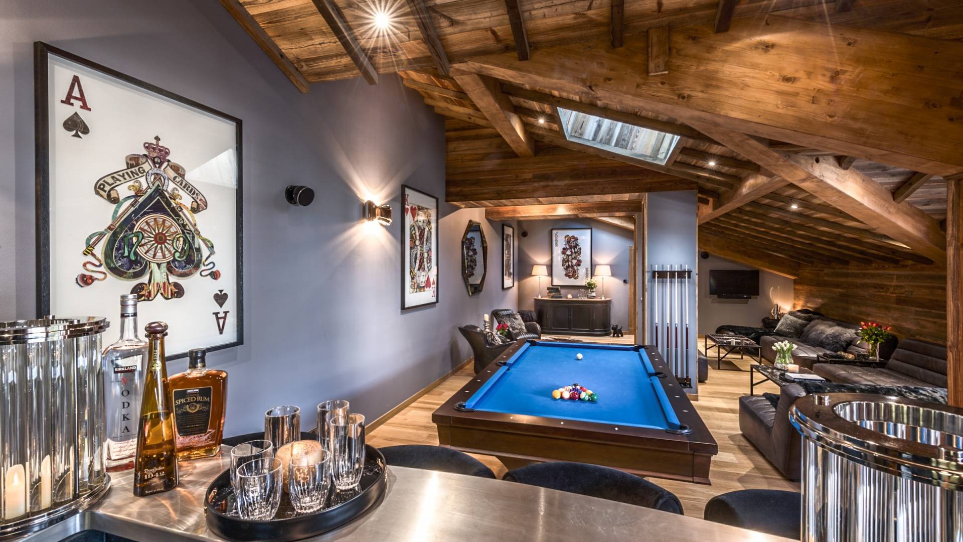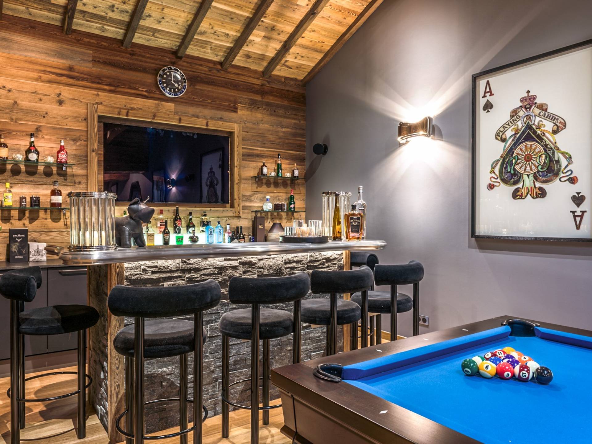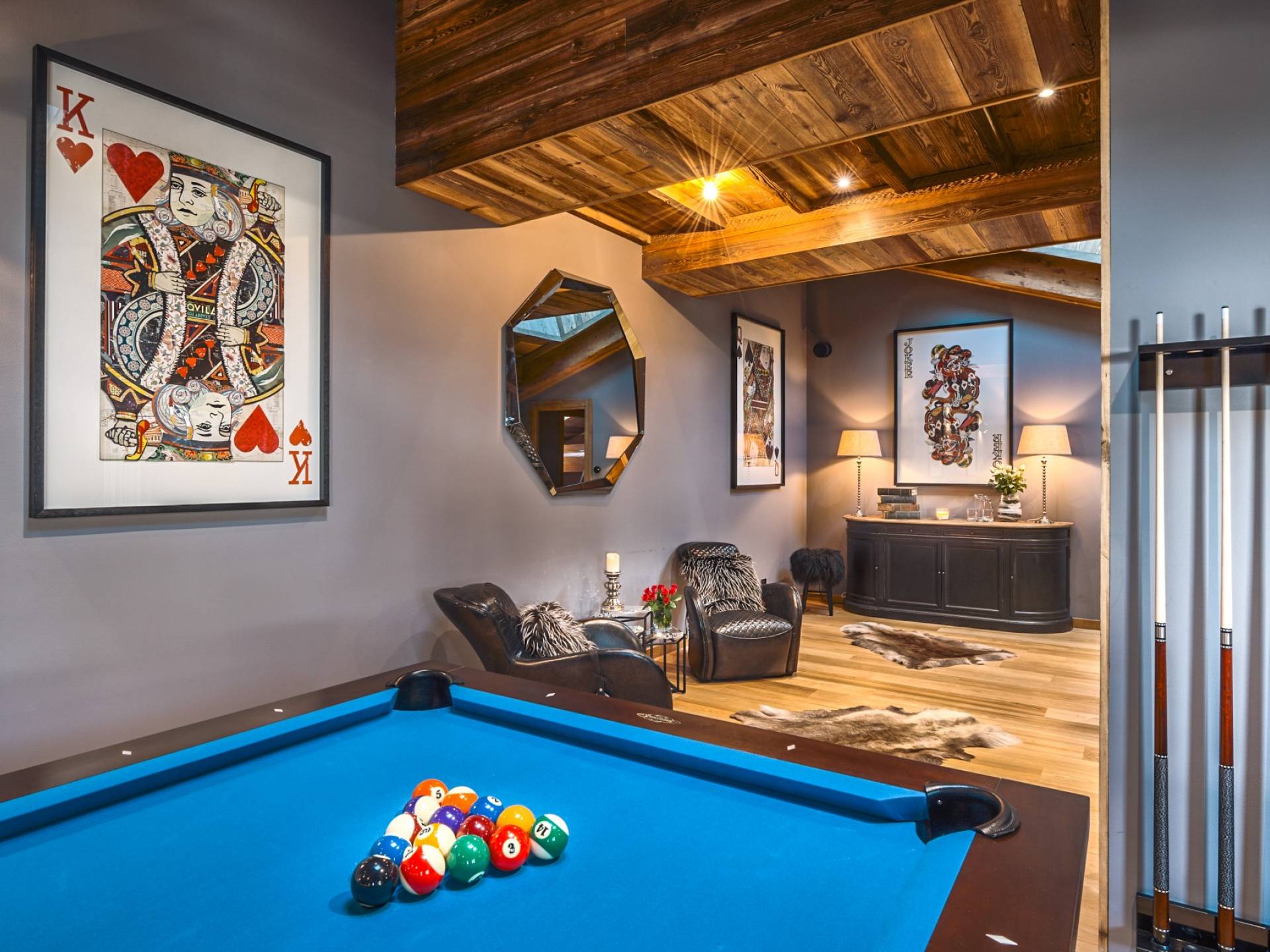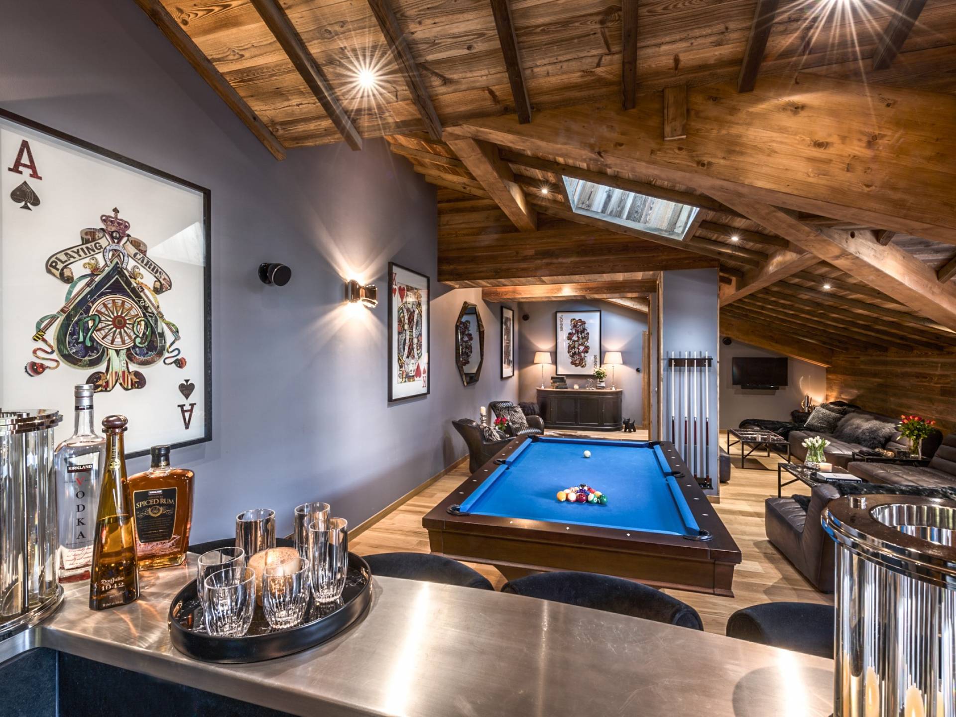 Το διαμέρισμα 5 υπνοδωματίων μοιάζει περισσότερο με σαλέ από ένα διαμέρισμα λόγω του μεγέθους και των οροφών διπλού ύψους στο κύριο δωμάτιο ψυχαγωγίας. Το επίπεδο εισόδου είναι εκεί όπου θα βρείτε ένα μεγάλο, ενιαίο σαλόνι και αίθουσα μπαρ με άφθονο χώρο για να φιλοξενήσετε τους επισκέπτες. Το πλήρες μέγεθος μπιλιάρδου και η εξέχουσα περιοχή του μπαρ το καθιστούν το τέλειο δωμάτιο πάρτι. Επιπλέον, το υδρομασάζ βρίσκεται μέσα από αυτό το δωμάτιο και από εκεί μπορείτε να απολαύσετε τη θέα στο Les Gets, όπου αυτό το διαμέρισμα βρίσκεται στην καρδιά της πόλης.