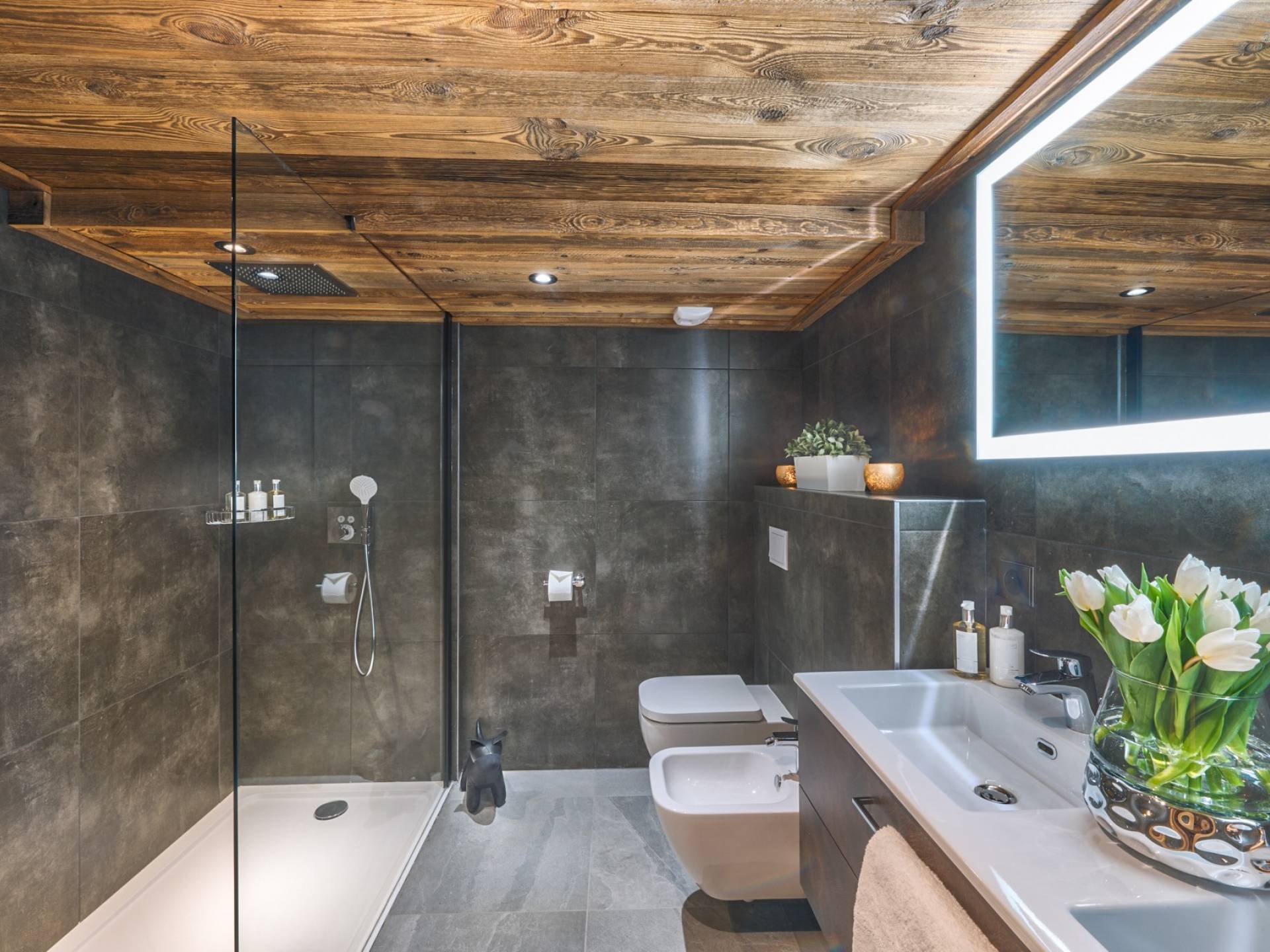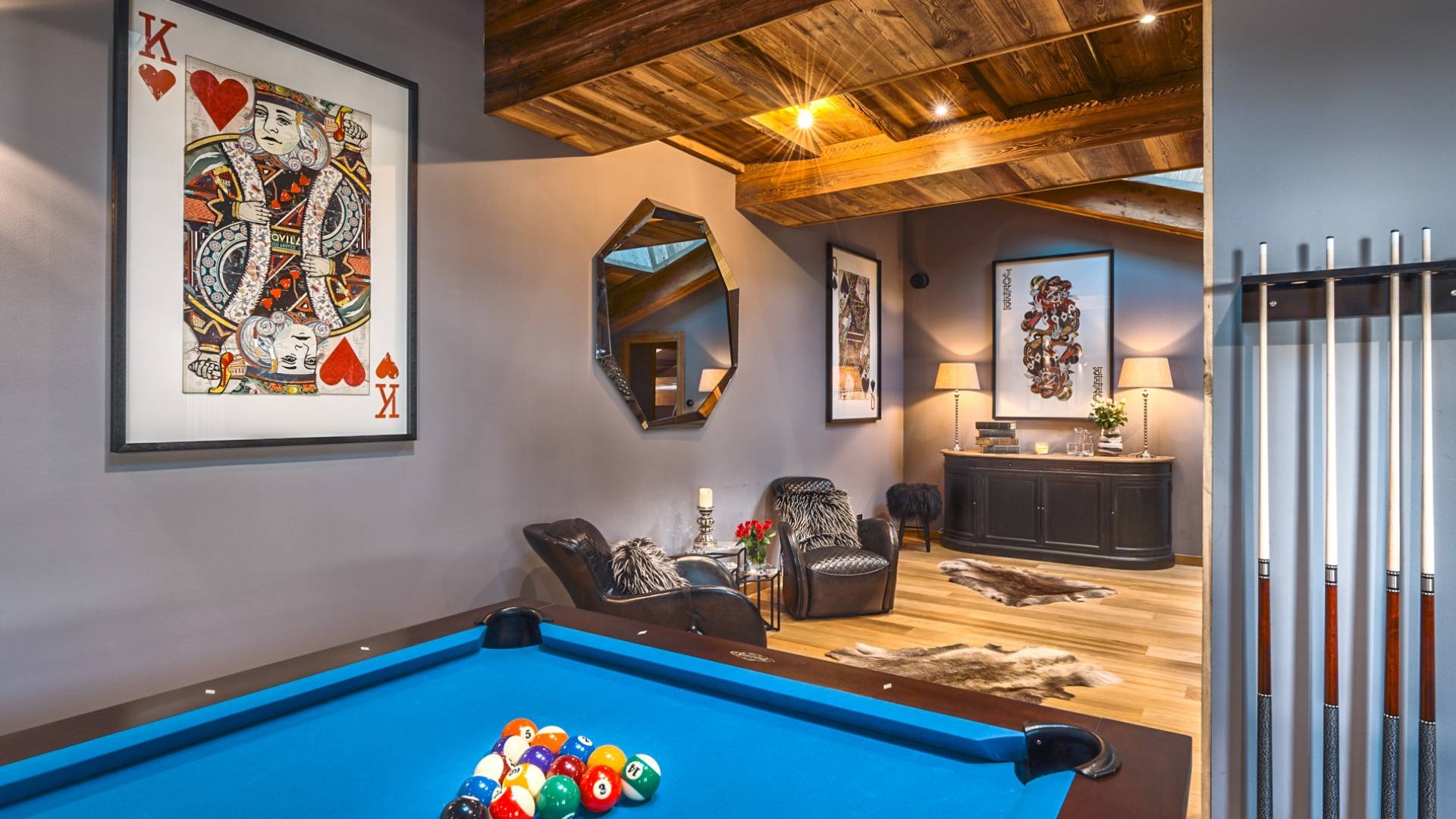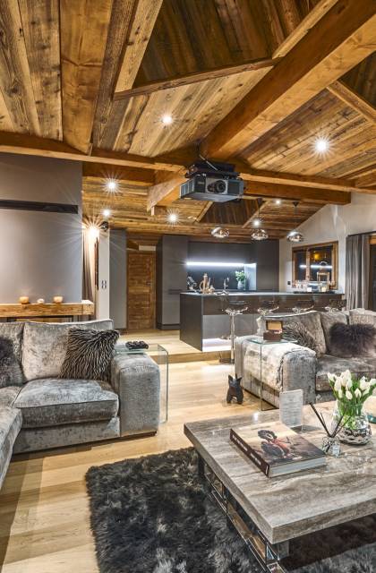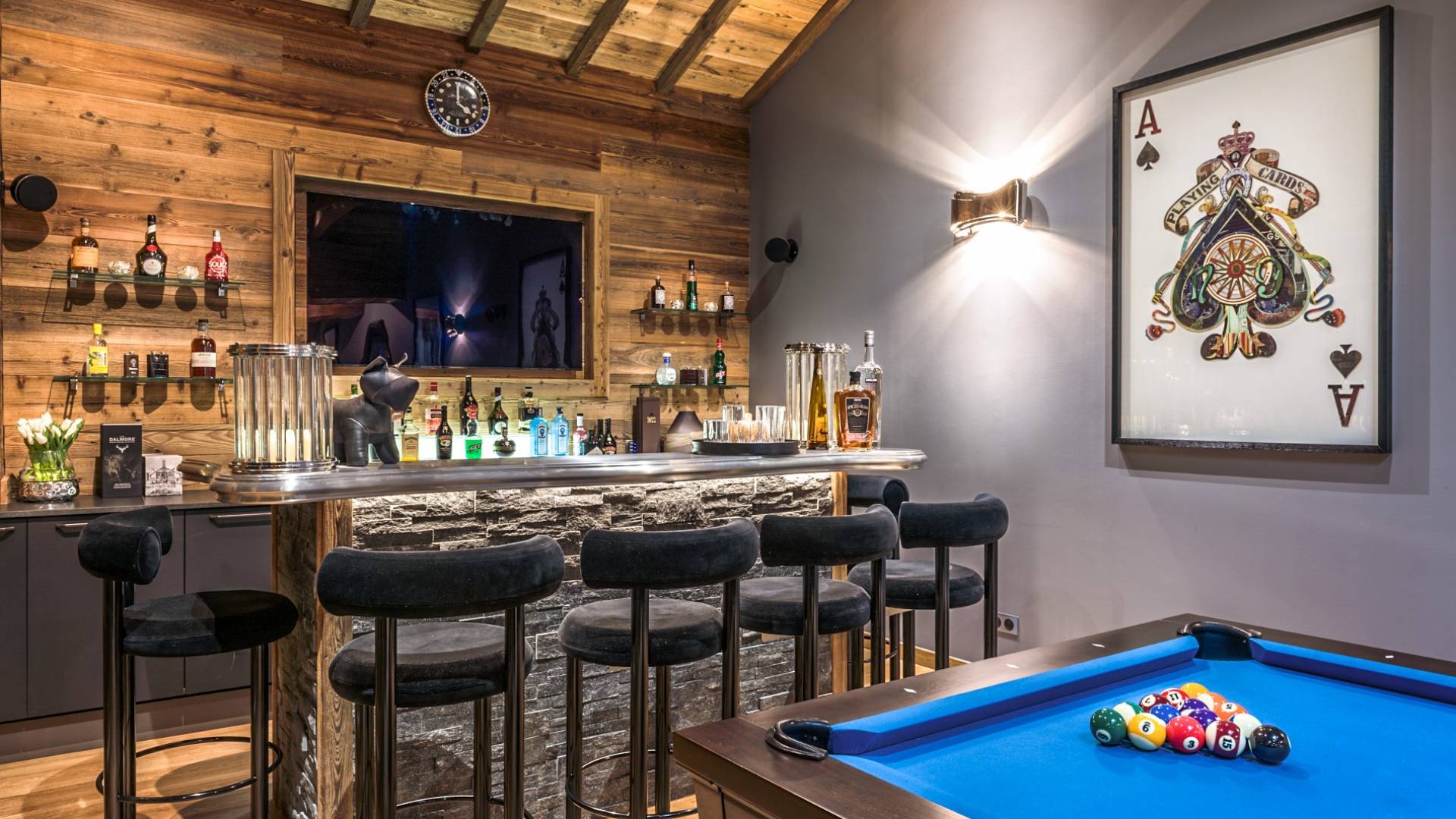 Το διαμέρισμα 5 υπνοδωματίων μοιάζει περισσότερο με σαλέ από ένα διαμέρισμα λόγω του μεγέθους και των οροφών διπλού ύψους στο κύριο δωμάτιο ψυχαγωγίας. Το επίπεδο εισόδου είναι εκεί όπου θα βρείτε ένα μεγάλο, ενιαίο σαλόνι και αίθουσα μπαρ με άφθονο χώρο για να φιλοξενήσετε τους επισκέπτες. Το πλήρες μέγεθος μπιλιάρδου και η εξέχουσα περιοχή του μπαρ το καθιστούν το τέλειο δωμάτιο πάρτι. Επιπλέον, το υδρομασάζ βρίσκεται μέσα από αυτό το δωμάτιο και από εκεί μπορείτε να απολαύσετε τη θέα στο Les Gets, όπου αυτό το διαμέρισμα βρίσκεται στην καρδιά της πόλης.