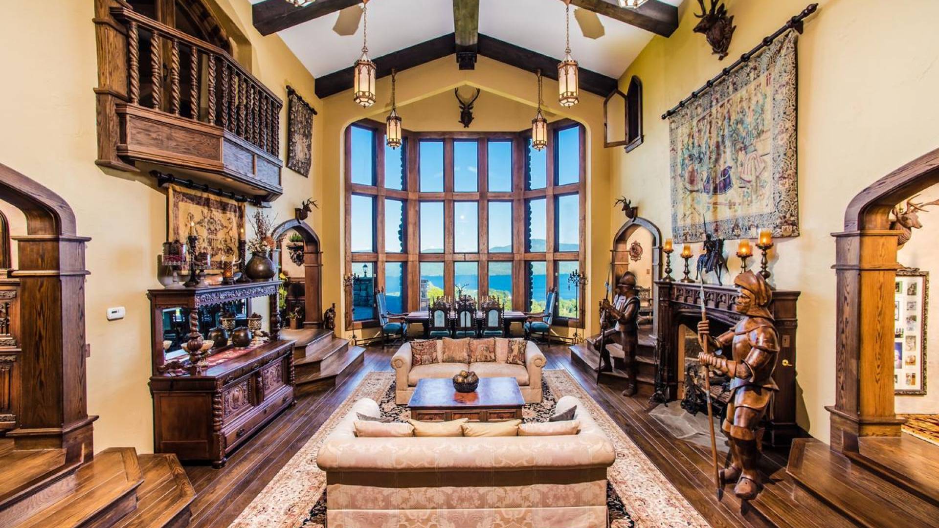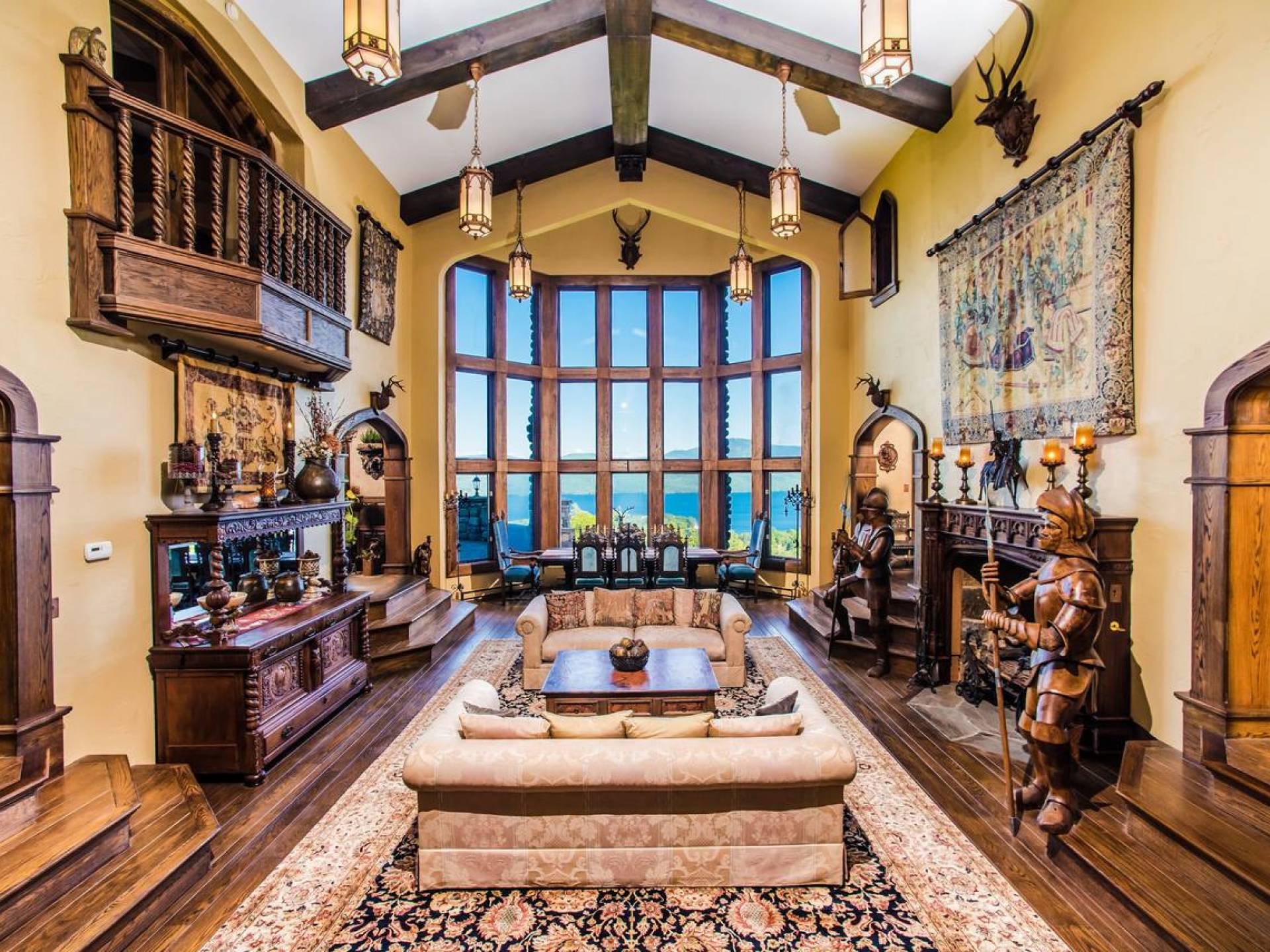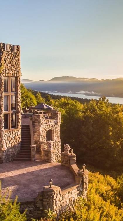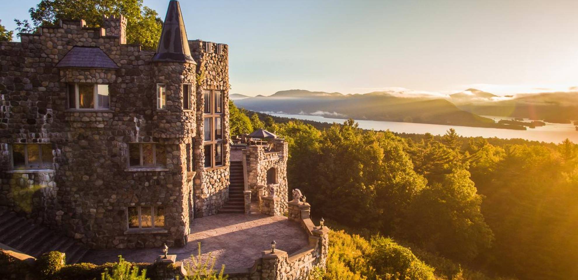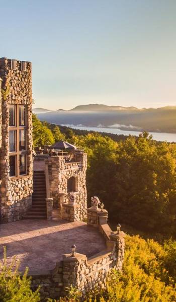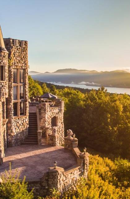 Η γραφική ποιότητα του Κάστρου των Χάιλαντς ταιριάζει μόνο με το ένδοξο περιβάλλον του με εκπληκτική πανοραμική θέα στη λίμνη Τζορτζ με φόντο τα βουνά Adirondack! Με την είσοδό σας στη μεγάλη είσοδο, θα προσελκύσετε τις ρομαντικές πόρτες από βιτρό «Romeo & Juliet» που οδηγούν στην άρτια εξοπλισμένη Μεγάλη Αίθουσα με μια επίσημη τραπεζαρία, έναν μοναδικά διακοσμημένο χώρο για ιδιαίτερη διασκέδαση. Το Κάστρο των Χάιλαντς είναι το πιο εξαιρετικό κτήμα που θα βρείτε ποτέ!