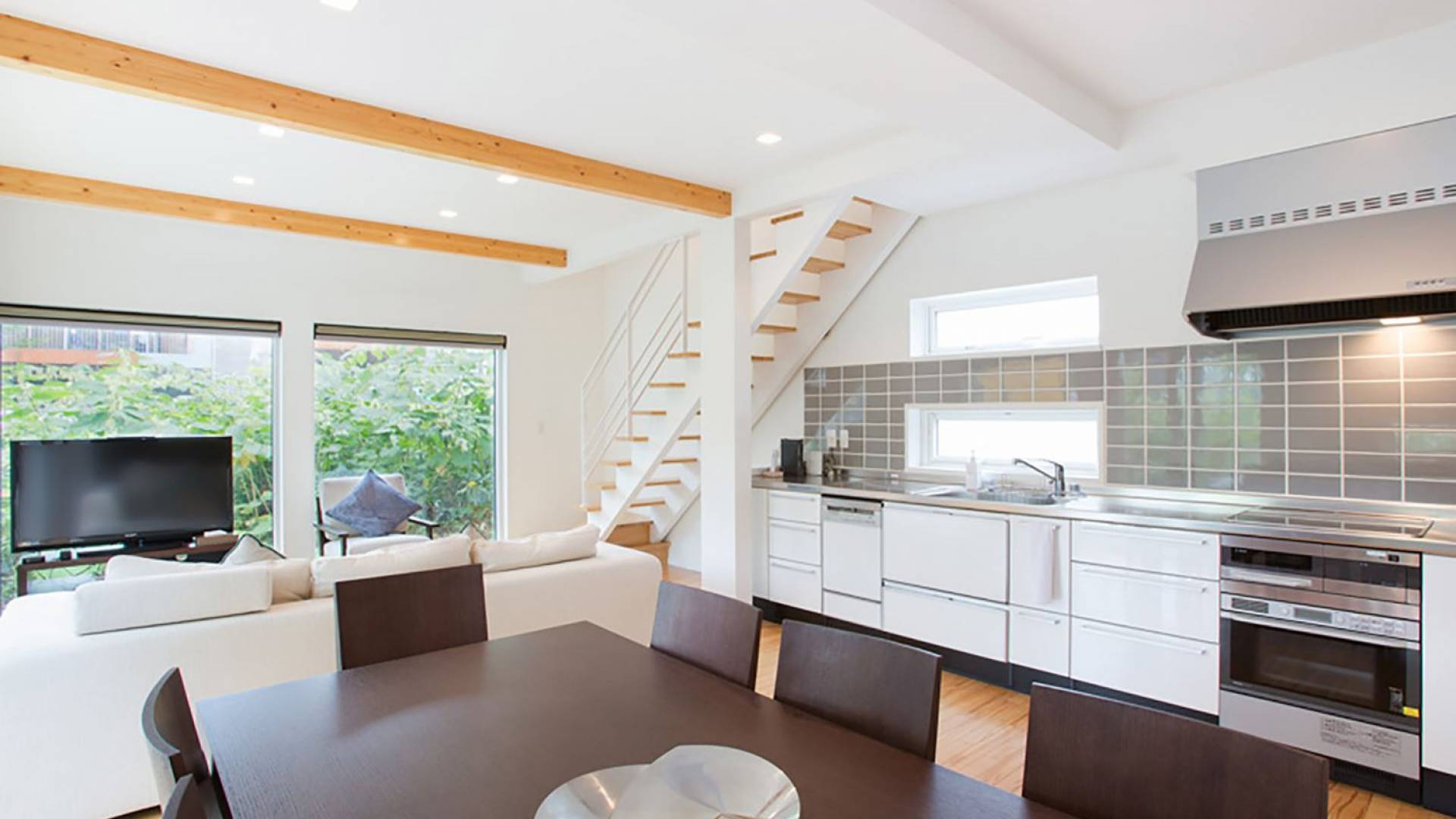 Το σαλόνι και η υπαίθρια κουζίνα του Ajisai Chalet είναι διακοσμημένα σε λευκά και φωτεινά χρώματα που δένουν αρμονικά μεταξύ τους και αναδίδουν αβίαστα την αίσθηση της ευτυχίας. Με μεγάλους μαλακούς καναπέδες και μαξιλάρια, δορυφορική τηλεόραση επίπεδης οθόνης και κονσόλα βιντεοπαιχνιδιών, το κομψό σαλόνι είναι ιδανικό για χαλάρωση, ομαδικές συγκεντρώσεις και ψυχαγωγία σε εσωτερικούς χώρους. Όλα αυτά, σε συνδυασμό με τη μοντέρνα και μοναδικά σχεδιασμένη κουζίνα που διαθέτει όλες τις βασικές ανέσεις, θα σας κάνουν να μην θέλετε να φύγετε από τους εσωτερικούς χώρους της.