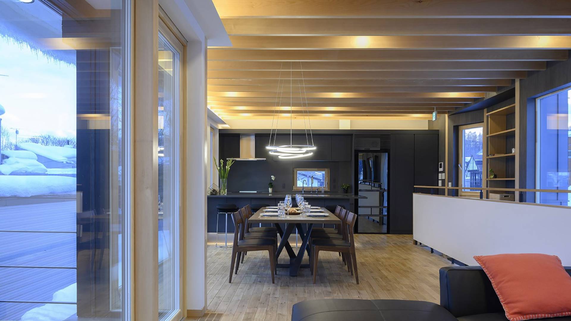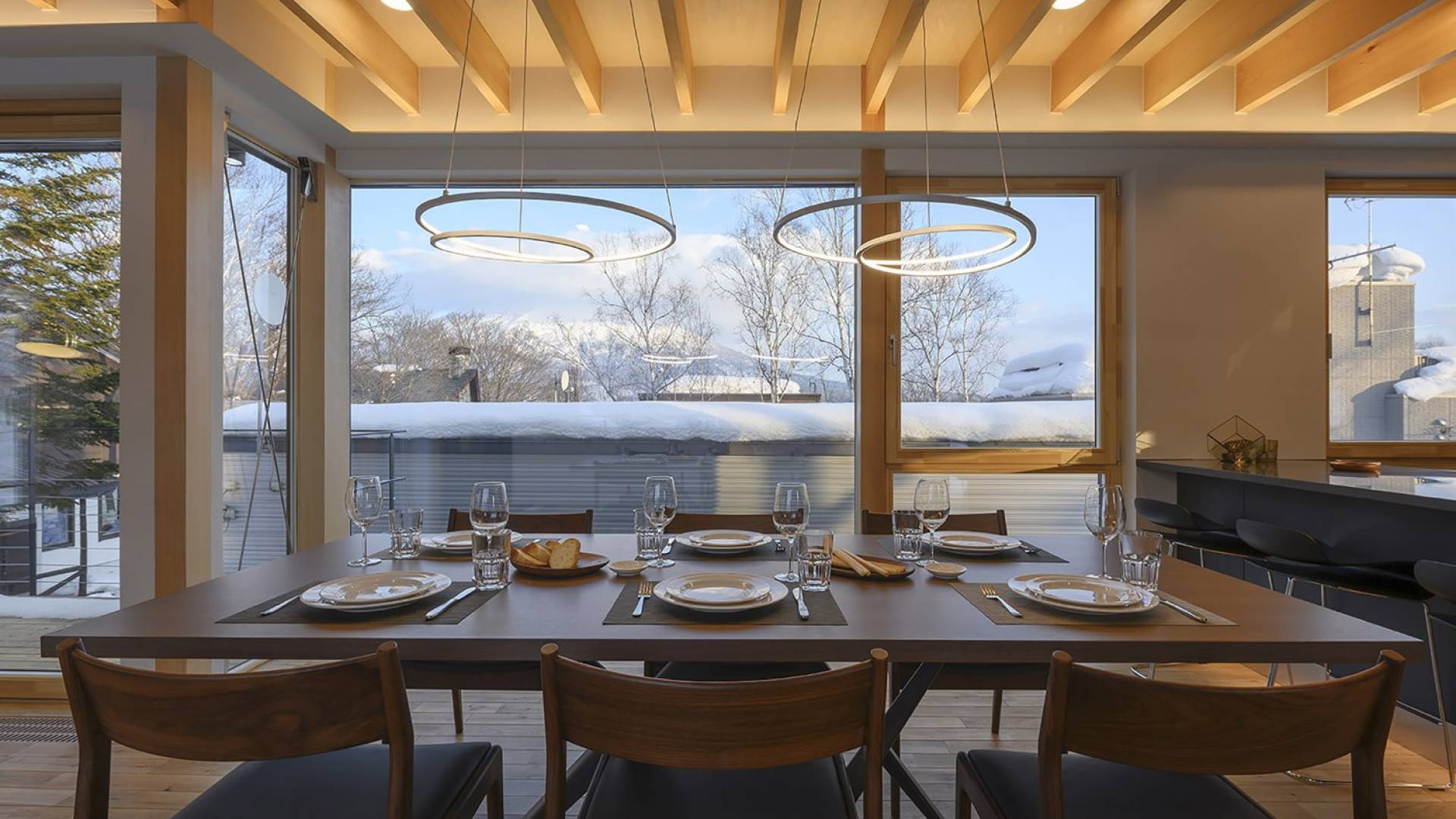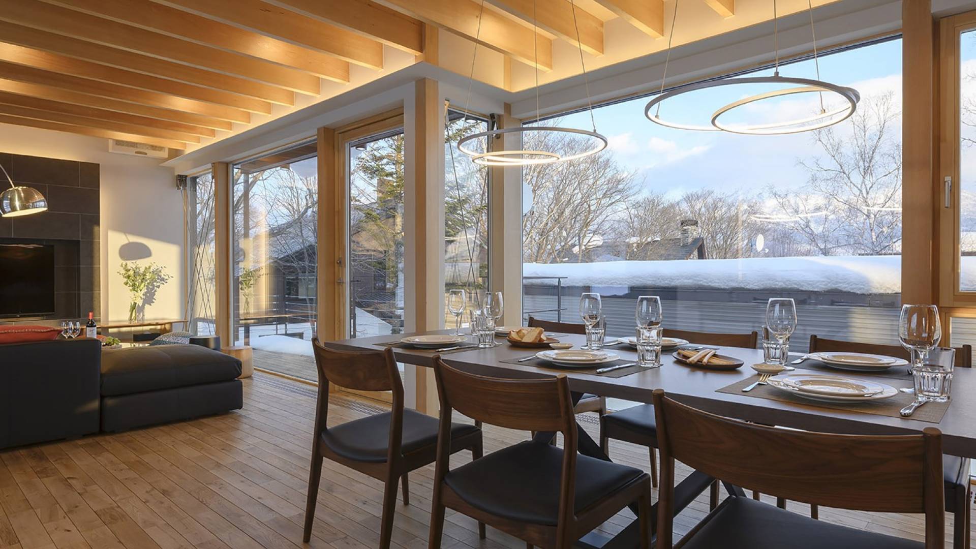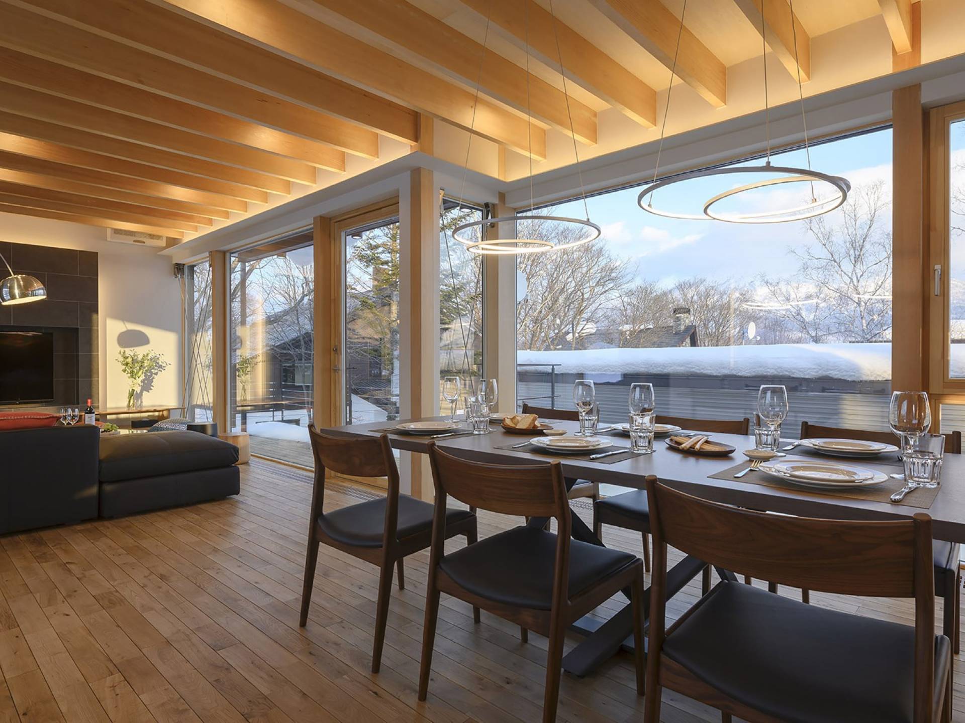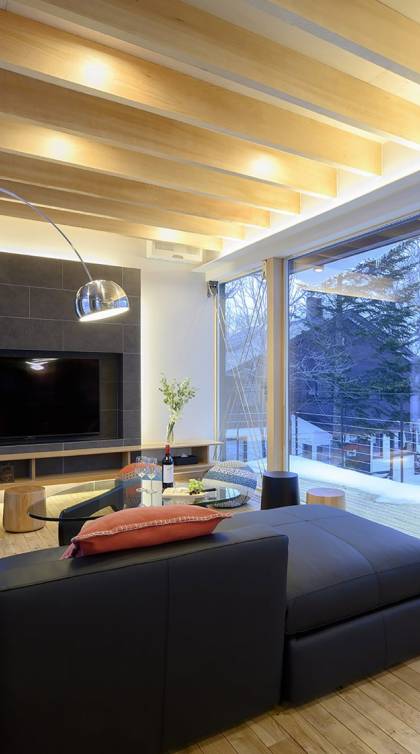 Το εσωτερικό έχει ολοκληρωθεί σε εξαιρετικά υψηλά πρότυπα για να προσφέρει στους επισκέπτες την πιο κομψή δυνατή εμπειρία. Το φωτεινό και ευάερο πολυτελές σαλέ 3 υπνοδωματίων αποτελείται από τρεις ορόφους και με γυάλινες πόρτες από το δάπεδο μέχρι την οροφή, προσφέρει εκπληκτική θέα στο όρος Yotei. Το ευρύχωρο υπαίθριο σαλόνι και η τραπεζαρία του είναι ιδανικά για όσους επιθυμούν να περάσουν ποιοτικό χρόνο με τα αγαπημένα τους πρόσωπα. Ένας αξιολάτρευτος συνδυασμός ξύλινων, σκούρων και φωτεινών επιφανειών και ο ζεστός φωτισμός δημιουργούν μια ζεστή και αναζωογονητική ατμόσφαιρα που θα λατρέψουν όλοι. Όλοι οι χώροι στο πολυτελές σαλέ είναι φυσικά φωτεινοί.