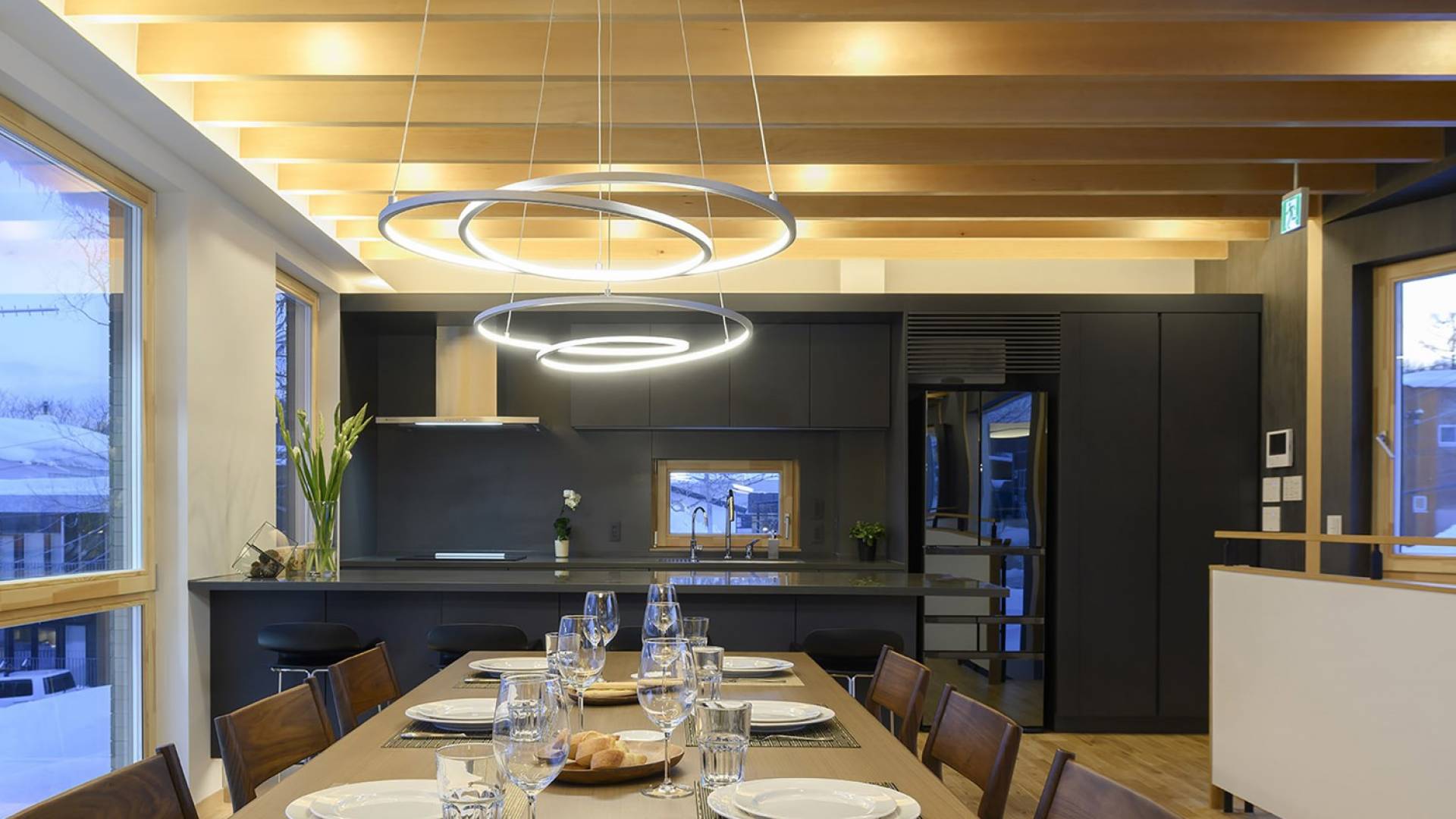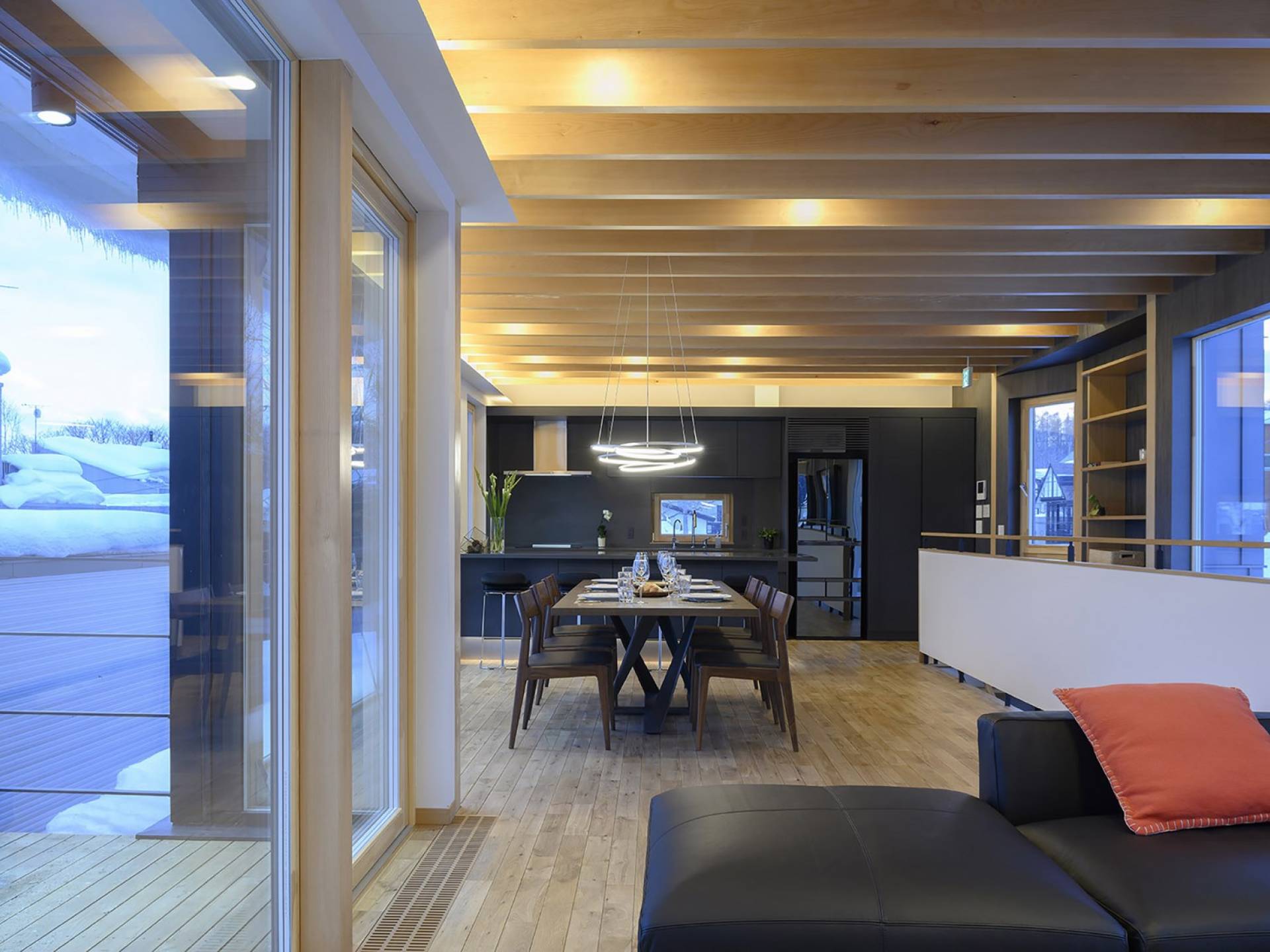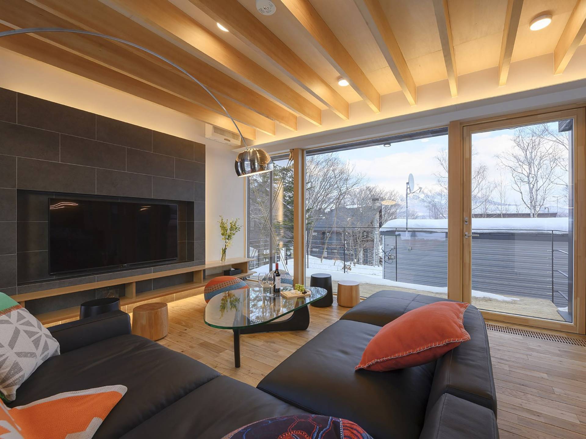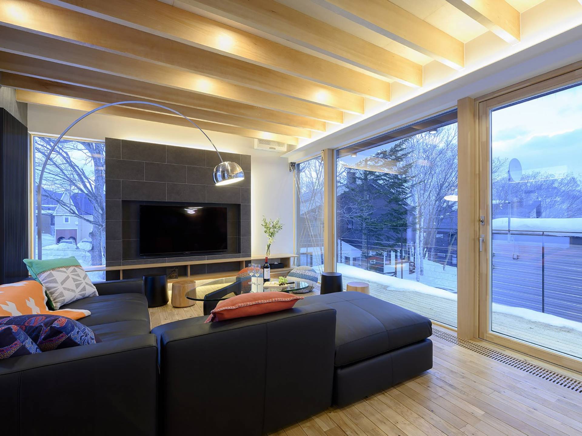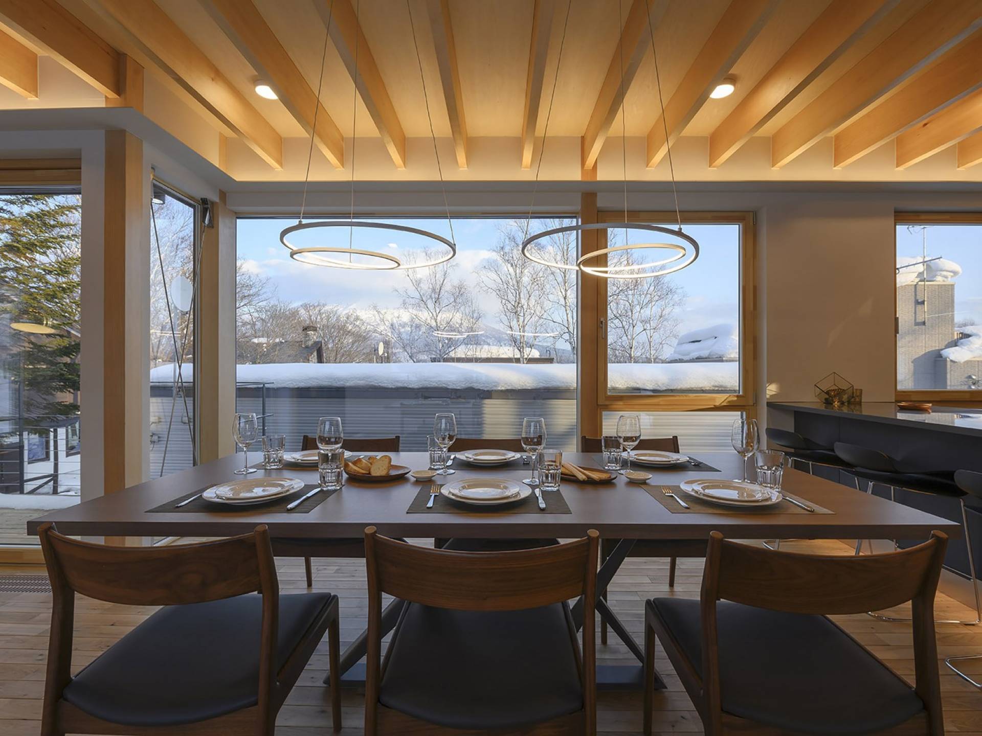 Το εσωτερικό έχει ολοκληρωθεί σε εξαιρετικά υψηλά πρότυπα για να προσφέρει στους επισκέπτες την πιο κομψή δυνατή εμπειρία. Το φωτεινό και ευάερο πολυτελές σαλέ 3 υπνοδωματίων αποτελείται από τρεις ορόφους και με γυάλινες πόρτες από το δάπεδο μέχρι την οροφή, προσφέρει εκπληκτική θέα στο όρος Yotei. Το ευρύχωρο υπαίθριο σαλόνι και η τραπεζαρία του είναι ιδανικά για όσους επιθυμούν να περάσουν ποιοτικό χρόνο με τα αγαπημένα τους πρόσωπα. Ένας αξιολάτρευτος συνδυασμός ξύλινων, σκούρων και φωτεινών επιφανειών και ο ζεστός φωτισμός δημιουργούν μια ζεστή και αναζωογονητική ατμόσφαιρα που θα λατρέψουν όλοι. Όλοι οι χώροι στο πολυτελές σαλέ είναι φυσικά φωτεινοί.