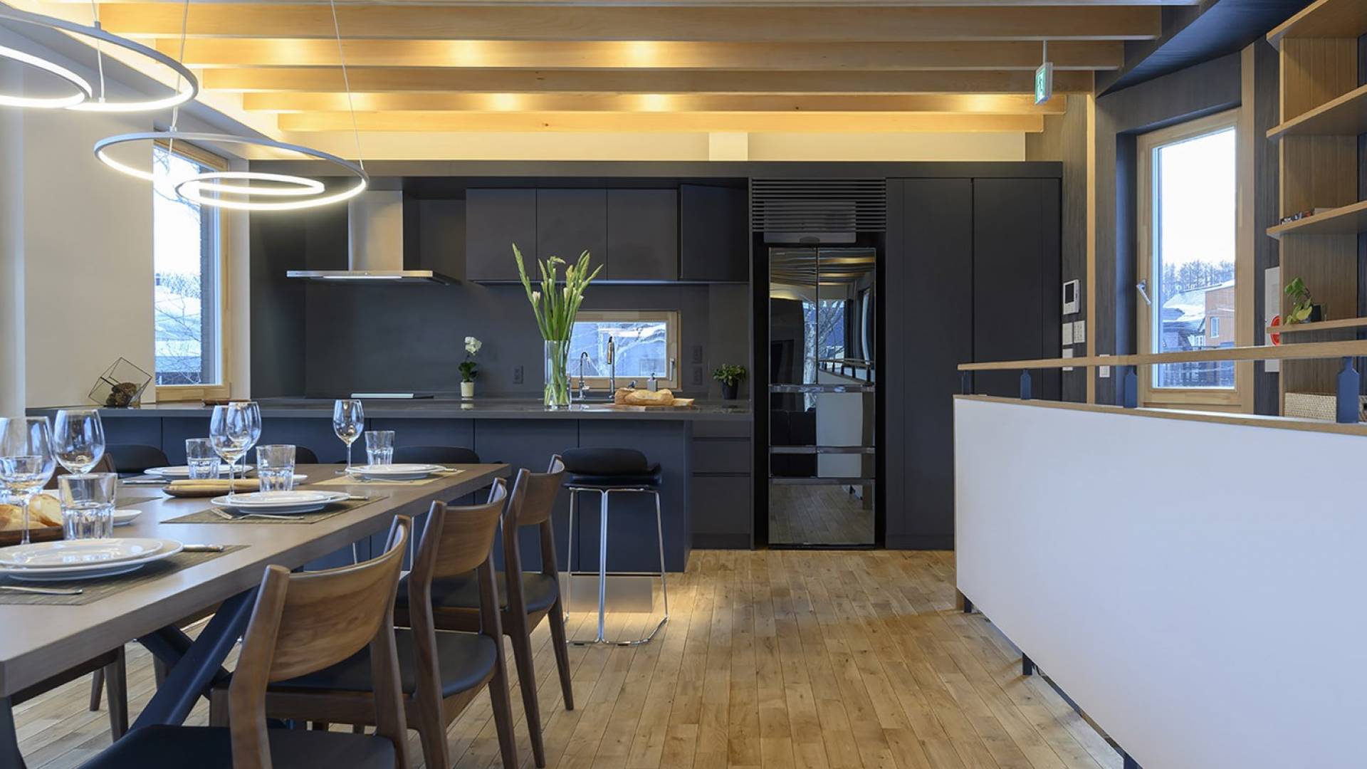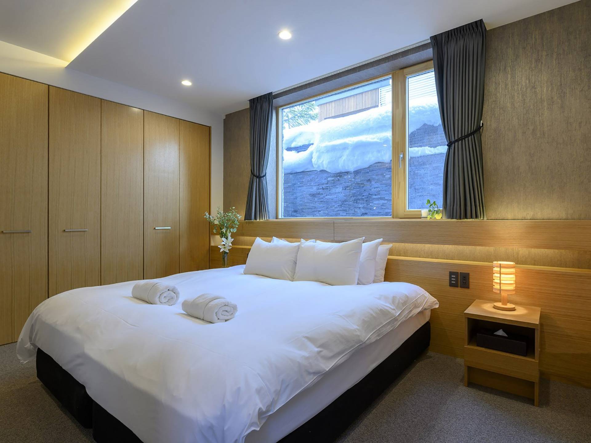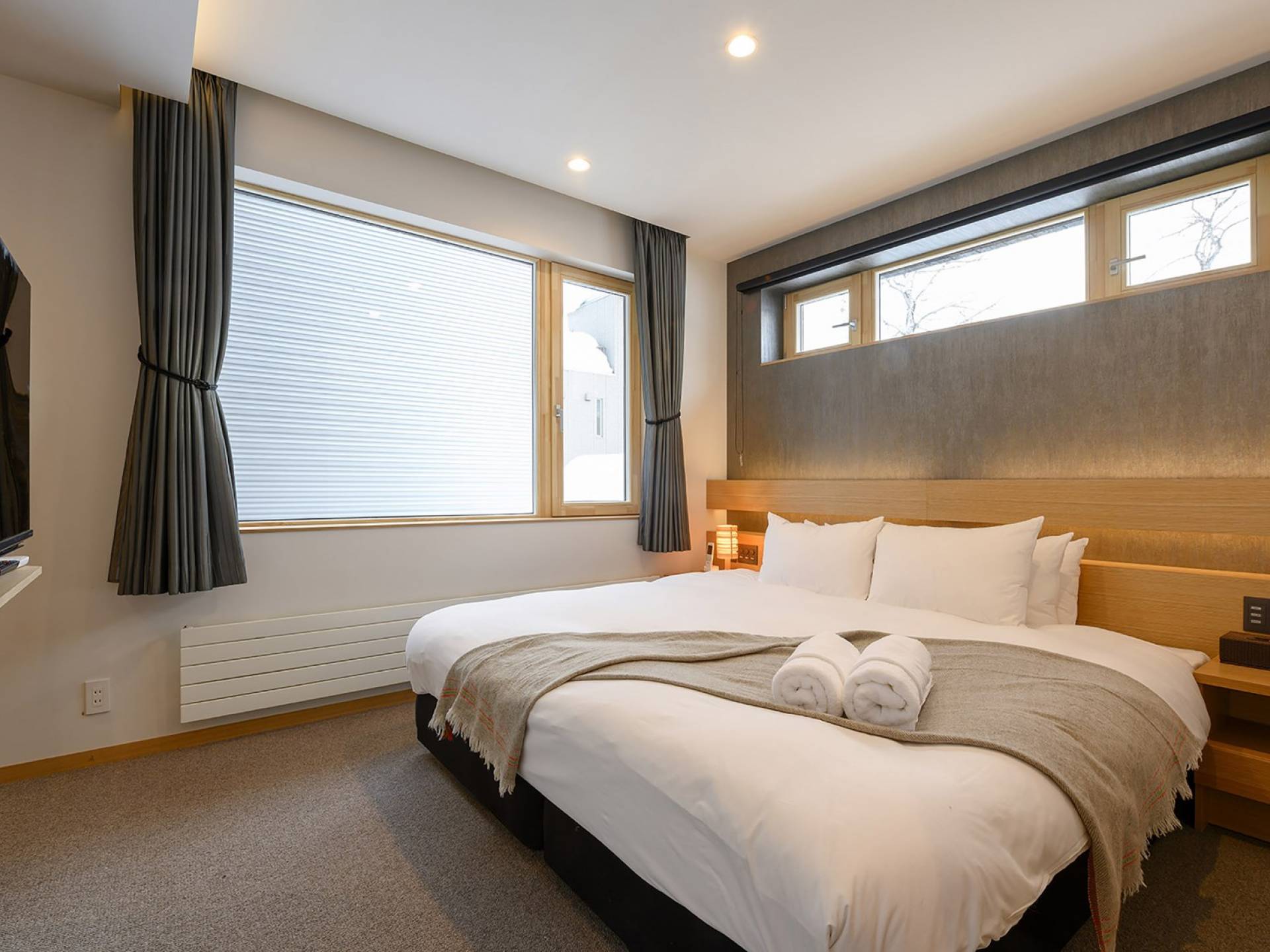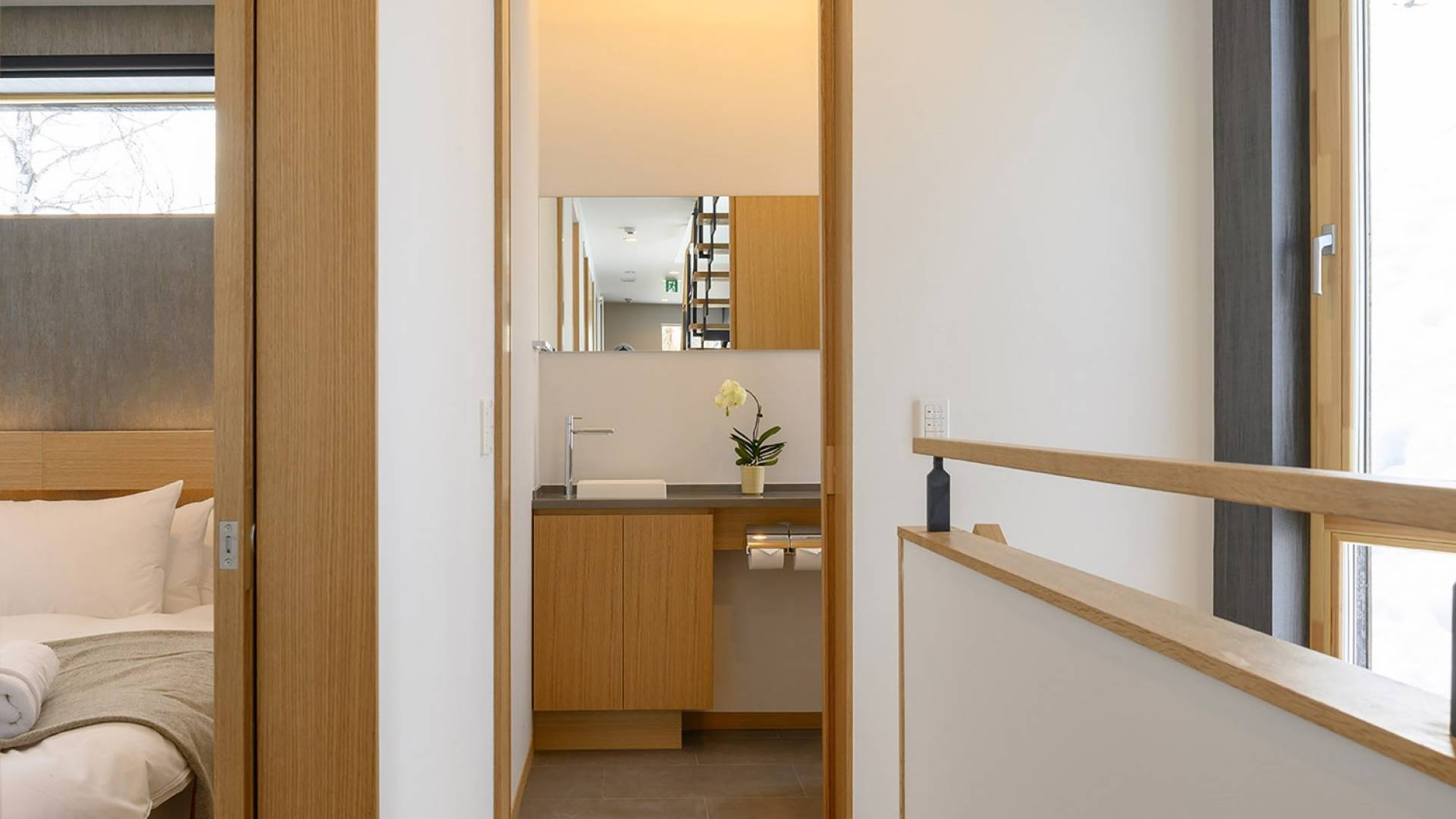 Το εσωτερικό έχει ολοκληρωθεί σε εξαιρετικά υψηλά πρότυπα για να προσφέρει στους επισκέπτες την πιο κομψή δυνατή εμπειρία. Το φωτεινό και ευάερο πολυτελές σαλέ 3 υπνοδωματίων αποτελείται από τρεις ορόφους και με γυάλινες πόρτες από το δάπεδο μέχρι την οροφή, προσφέρει εκπληκτική θέα στο όρος Yotei. Το ευρύχωρο υπαίθριο σαλόνι και η τραπεζαρία του είναι ιδανικά για όσους επιθυμούν να περάσουν ποιοτικό χρόνο με τα αγαπημένα τους πρόσωπα. Ένας αξιολάτρευτος συνδυασμός ξύλινων, σκούρων και φωτεινών επιφανειών και ο ζεστός φωτισμός δημιουργούν μια ζεστή και αναζωογονητική ατμόσφαιρα που θα λατρέψουν όλοι. Όλοι οι χώροι στο πολυτελές σαλέ είναι φυσικά φωτεινοί.