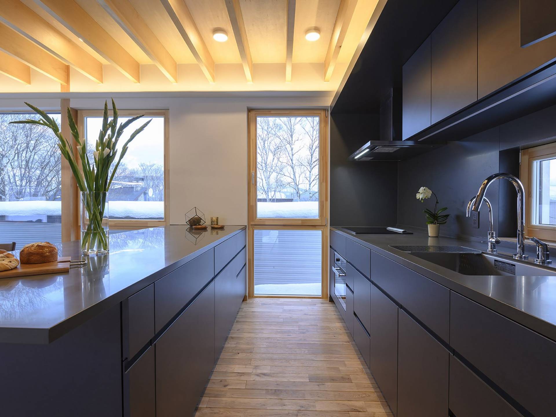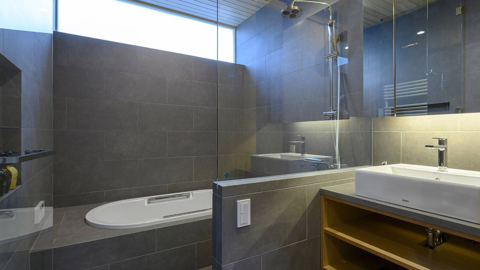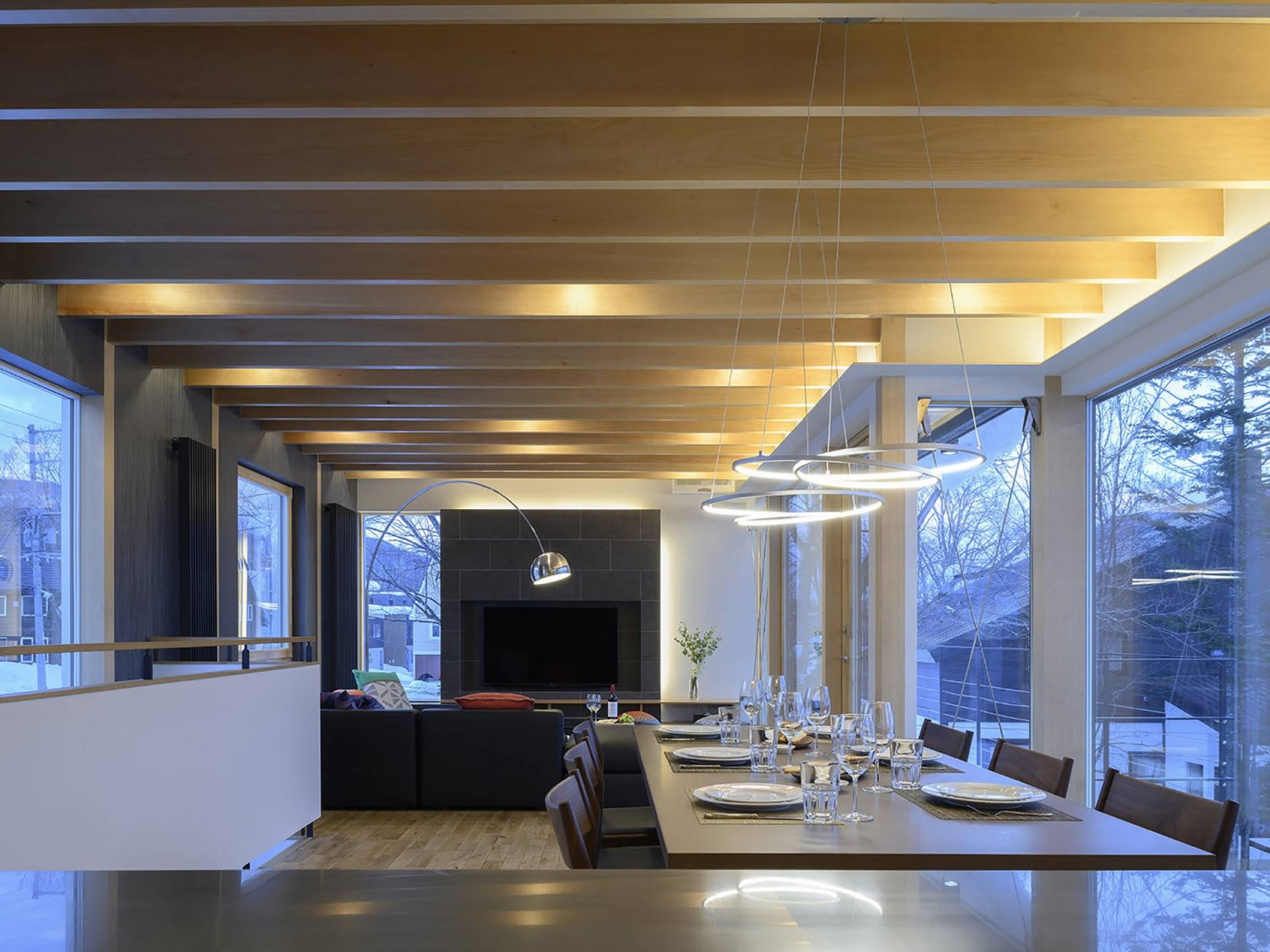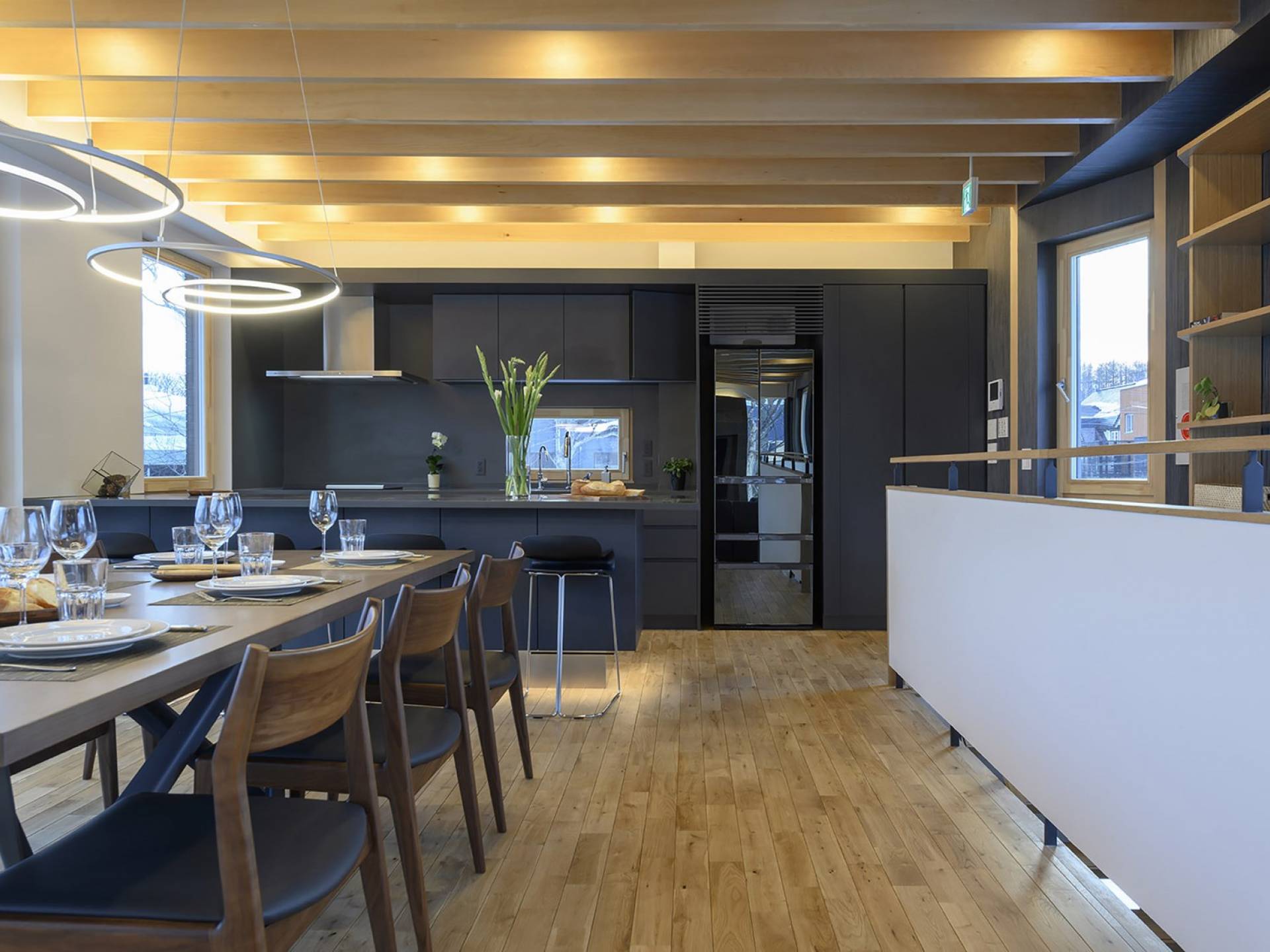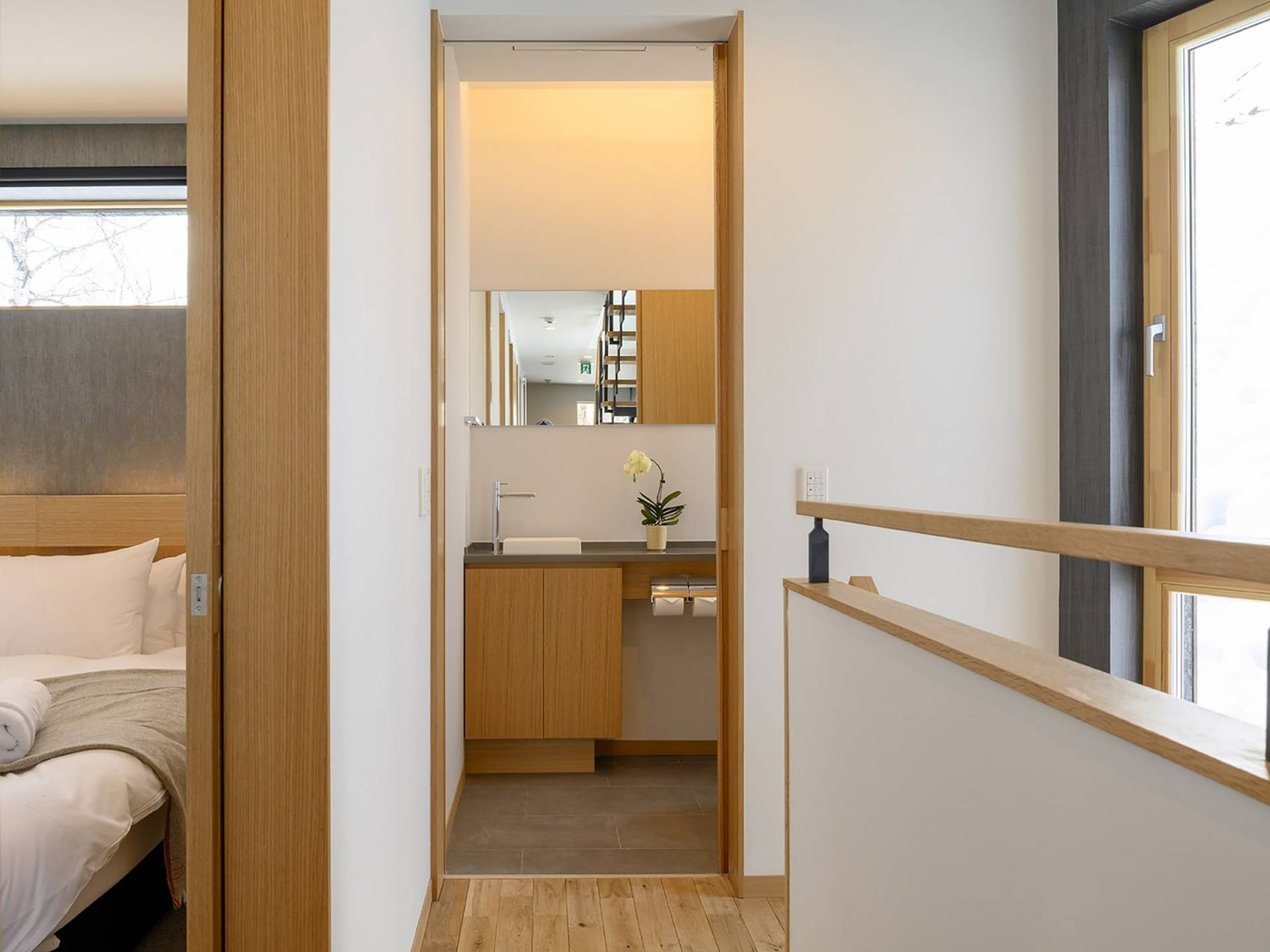 Το εσωτερικό έχει ολοκληρωθεί σε εξαιρετικά υψηλά πρότυπα για να προσφέρει στους επισκέπτες την πιο κομψή δυνατή εμπειρία. Το φωτεινό και ευάερο πολυτελές σαλέ 3 υπνοδωματίων αποτελείται από τρεις ορόφους και με γυάλινες πόρτες από το δάπεδο μέχρι την οροφή, προσφέρει εκπληκτική θέα στο όρος Yotei. Το ευρύχωρο υπαίθριο σαλόνι και η τραπεζαρία του είναι ιδανικά για όσους επιθυμούν να περάσουν ποιοτικό χρόνο με τα αγαπημένα τους πρόσωπα. Ένας αξιολάτρευτος συνδυασμός ξύλινων, σκούρων και φωτεινών επιφανειών και ο ζεστός φωτισμός δημιουργούν μια ζεστή και αναζωογονητική ατμόσφαιρα που θα λατρέψουν όλοι. Όλοι οι χώροι στο πολυτελές σαλέ είναι φυσικά φωτεινοί.