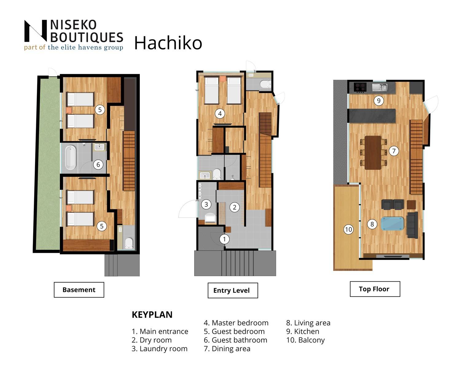 Το Hachiko Chalet είναι ένα πολυτελές σαλέ ενοικίασης με 3 υπνοδωμάτια. Όταν η απόλυτη πολυτέλεια συναντά την οικεία θαλπωρή είναι το Hachiko Chalet. Η εσωτερική του σχεδίαση είναι απλά ένα πανέμορφο έργο τέχνης. Σε έναν ήσυχο δρόμο στη μέση του χωριού Hirafu στο Niseko της Ιαπωνίας, το Hachiko Chalet είναι ένα μαγευτικό πολυτελές καταφύγιο, με 3 άνετα υπνοδωμάτια και 2 μπάνια, και έχει σχεδιαστεί τέλεια για να φιλοξενεί έως και 6 άτομα. Μια εξαιρετική επιλογή για οικογένειες και φίλους που αναζητούν διακοπές γεμάτες υπαίθριες δραστηριότητες και διασκεδαστικές περιπέτειες.