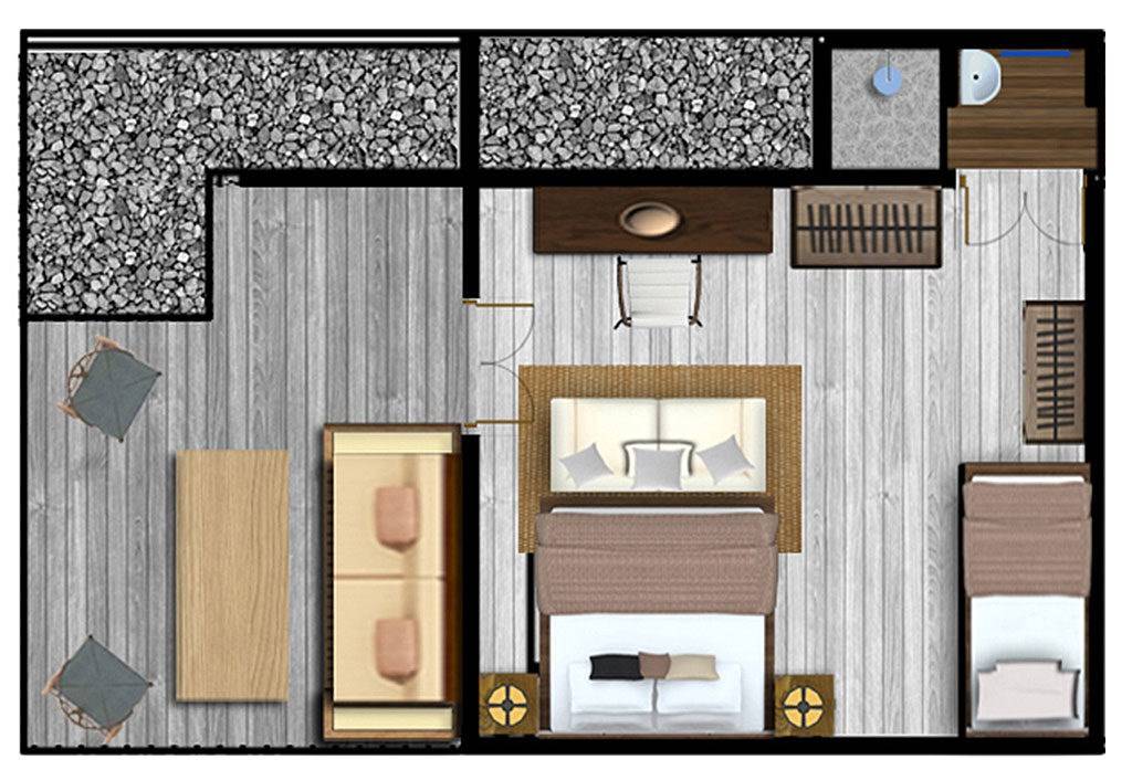 Το Amed Lodge διαθέτει μοναδικά ρουστίκ σχεδιασμό που συμπληρώνει το φυσικό του περιβάλλον. Χτισμένο για να ενσωματώνει μια αξιοθαύμαστη συλλογή από παλιά ξύλα που παρουσιάζονται σε ρουστίκ στιλ που αποκαλύπτει μια απολαυστικά εκλεκτική αρχιτεκτονική. Οι επτά γοητευτικές εξοχικές κατοικίες περιλαμβάνουν ξύλινα έπιπλα, queen ή μονά κρεβάτια και τοπικά διακοσμητικά στοιχεία. Κάθε δομή είναι πλήρως κλιματιζόμενη για προσωπική άνεση και διαθέτει μπάνιο με τροπική έμπνευση.
