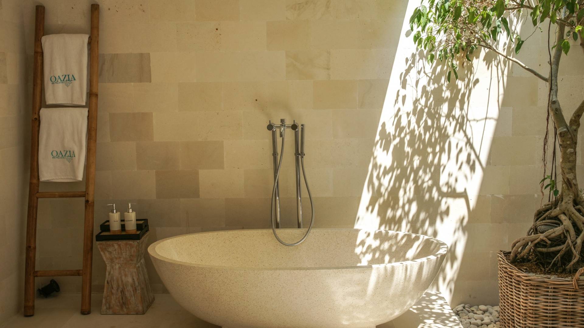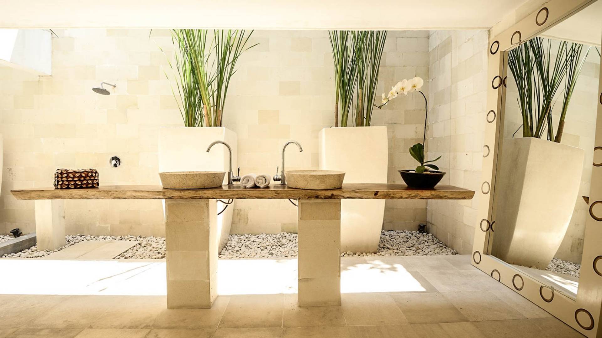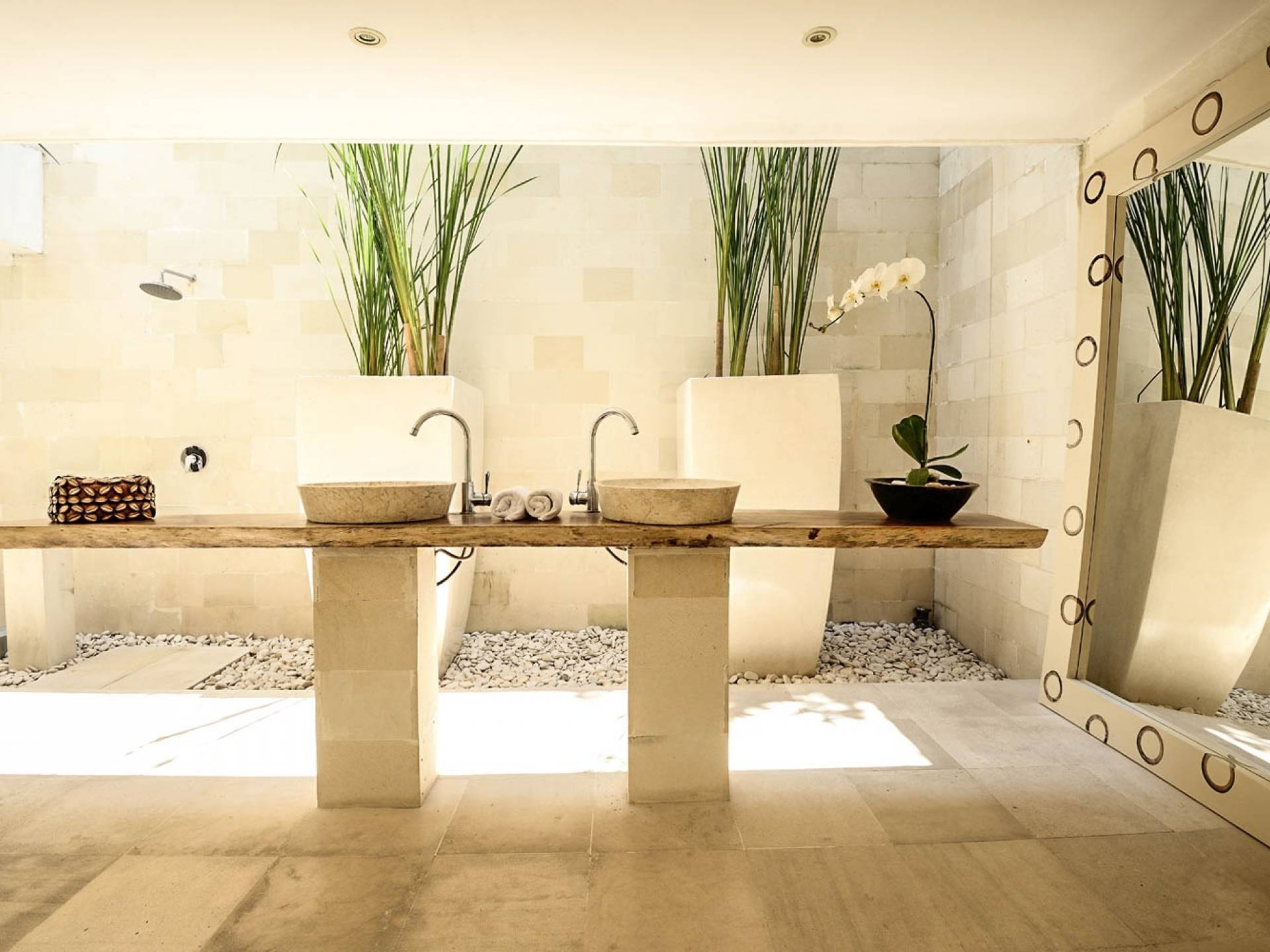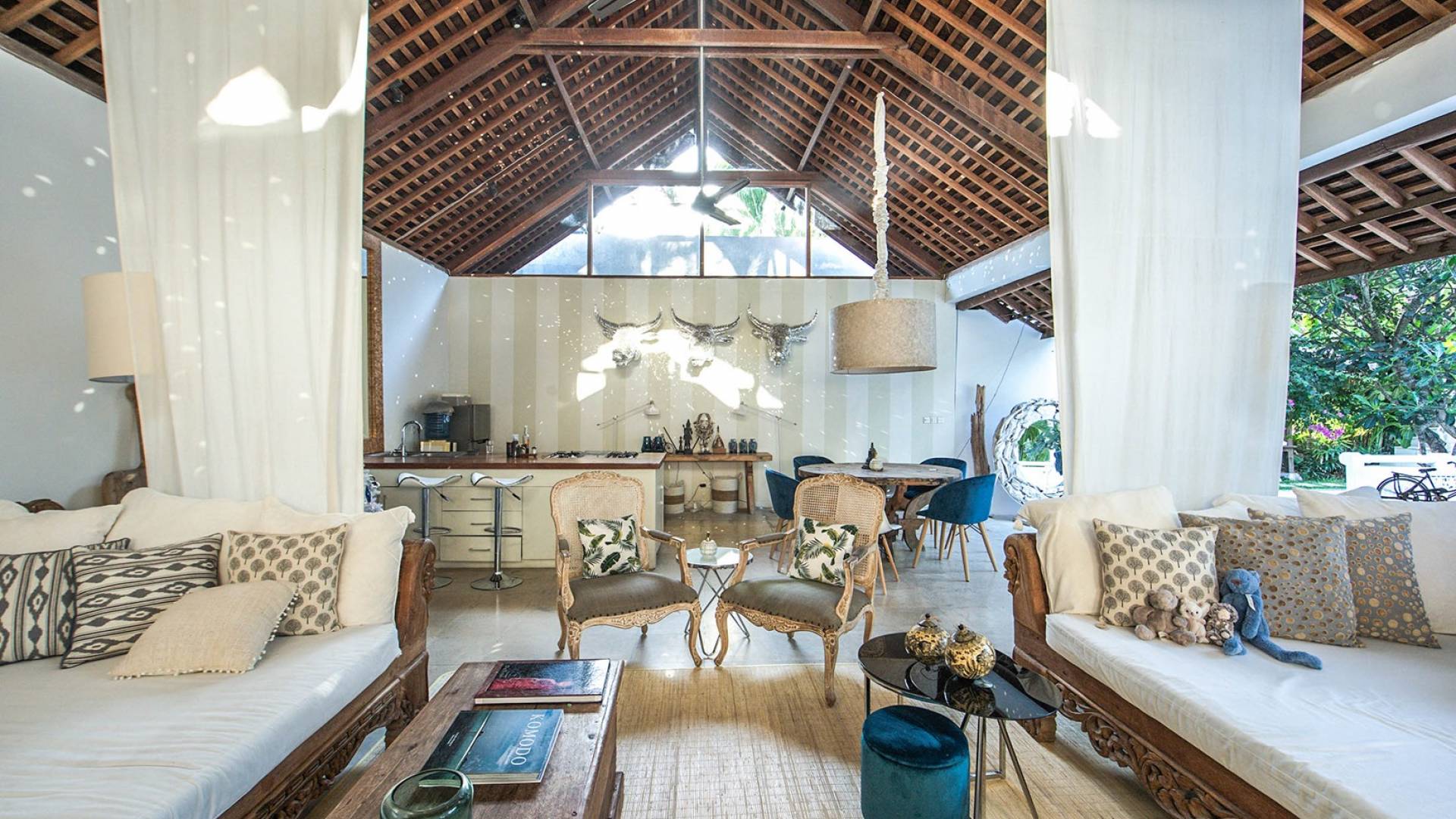 Η πισίνα 13 x 5 μέτρων γίνεται ένας τεράστιος καθρέφτης τη νύχτα, που αντανακλά τα δέντρα frangipani και τις απαλές κουρτίνες. Ο συνδυασμός λευκών υφασμάτων, ασβεστόλιθου, ξυλείας φυσικής παλαίωσης, αντίκες και μοντέρνας τέχνης δημιουργεί μια ατμόσφαιρα ονειρικής και γοητείας. Η Villa OAZIA White διαθέτει 2 master υπνοδωμάτια και 2 ξεχωριστά δωμάτια, τα οποία είναι προσβάσιμα μέσω μιας εκπληκτικής γέφυρας ποταμού. Όλα διαθέτουν μοναδικά υπαίθρια μπάνια και μπανιέρες, ώστε οι επισκέπτες να μπορούν να απομονωθούν.