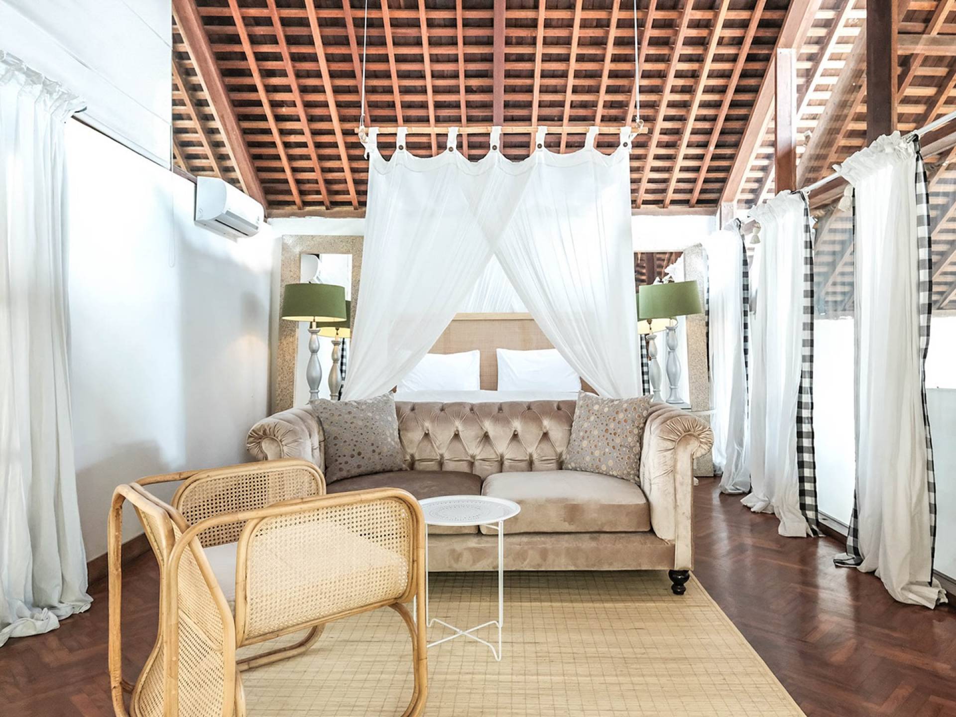 Η Villa Oazia White Bali βρίσκεται στις δύο πλευρές ενός ήρεμου ποταμού, τυλιγμένη στο άρωμα του frangipani και της γαρδένιας, στη σκιά των φοινίκων και των μπαμπού, η Villa Oazia White Bali περιγράφεται καλύτερα ως Ουτοπία.