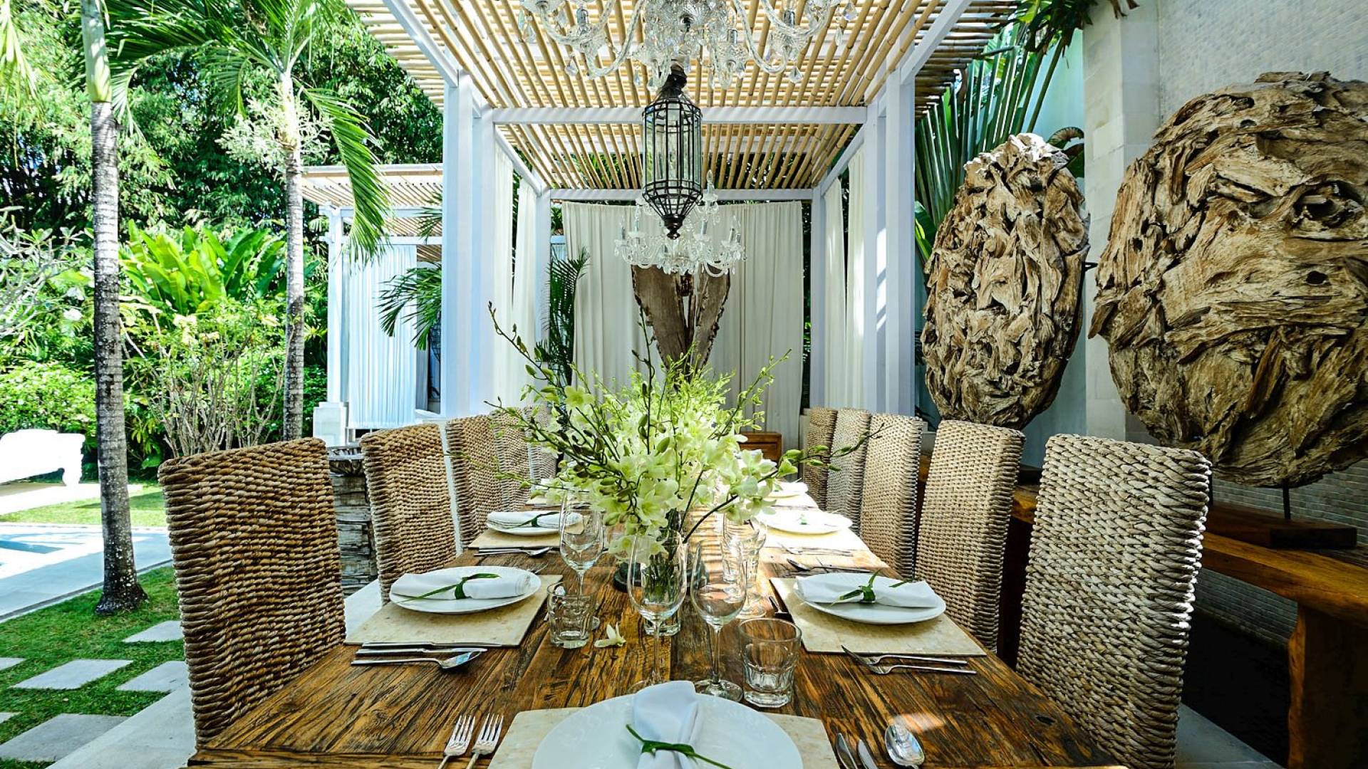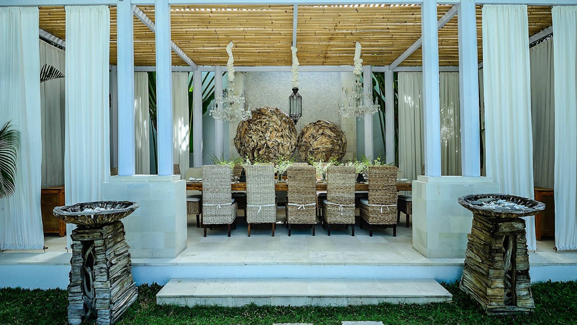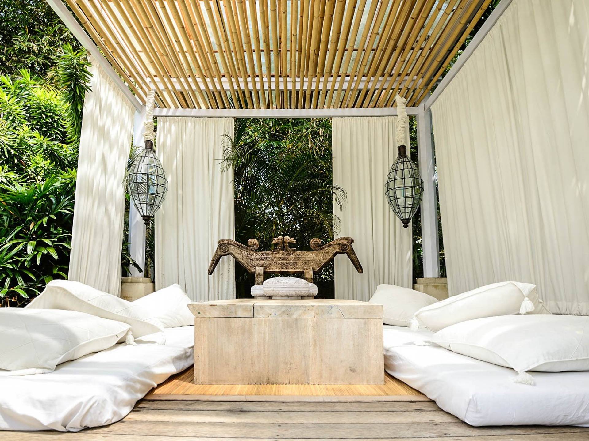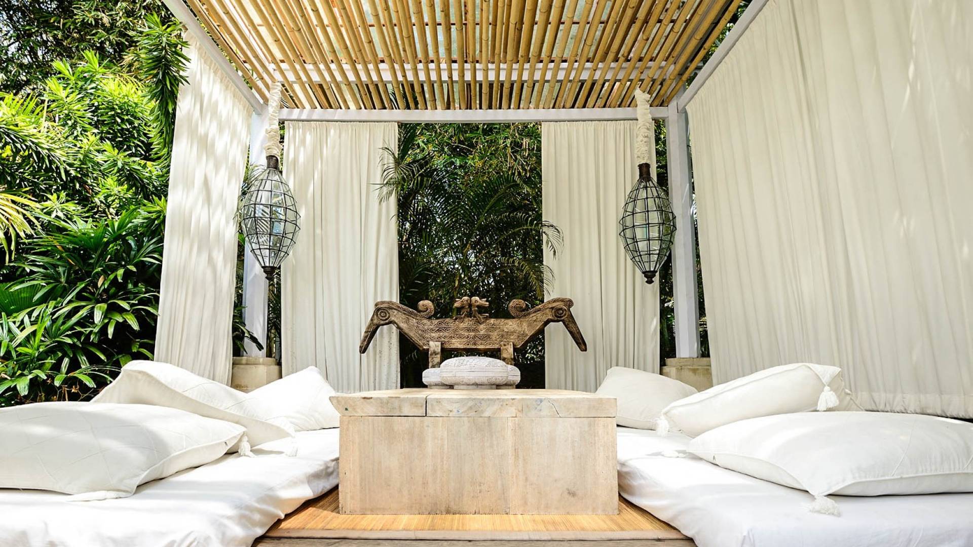 Ο κήπος γεμίζει με κουδουνίσματα τα πρωινά και οι ήχοι του χορευτικού ποταμού ρέουν τη νύχτα. Ο θόλος από μπαμπού δημιουργεί όμορφες σκιές πάνω από ένα μεγάλο τραπέζι φαγητού, σε ένα περίπτερο όπου σερβίρονται πλούσια γεύματα κάτω από περίτεχνους κρυστάλλινους πολυελαίους και το φως των κεριών. Δίπλα είναι μια όμορφη λευκή μπάλα, γεμάτη με μαλακά λευκά μαξιλάρια – ένα τέλειο μέρος για απογευματινό διαλογισμό ή μια μεταμεσονύχτια συζήτηση με τον καλύτερό σας φίλο.