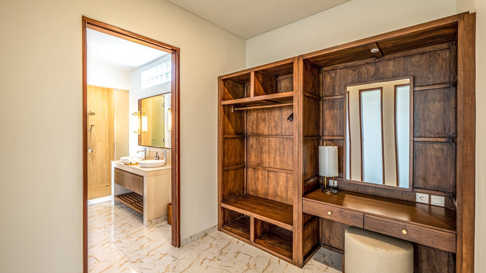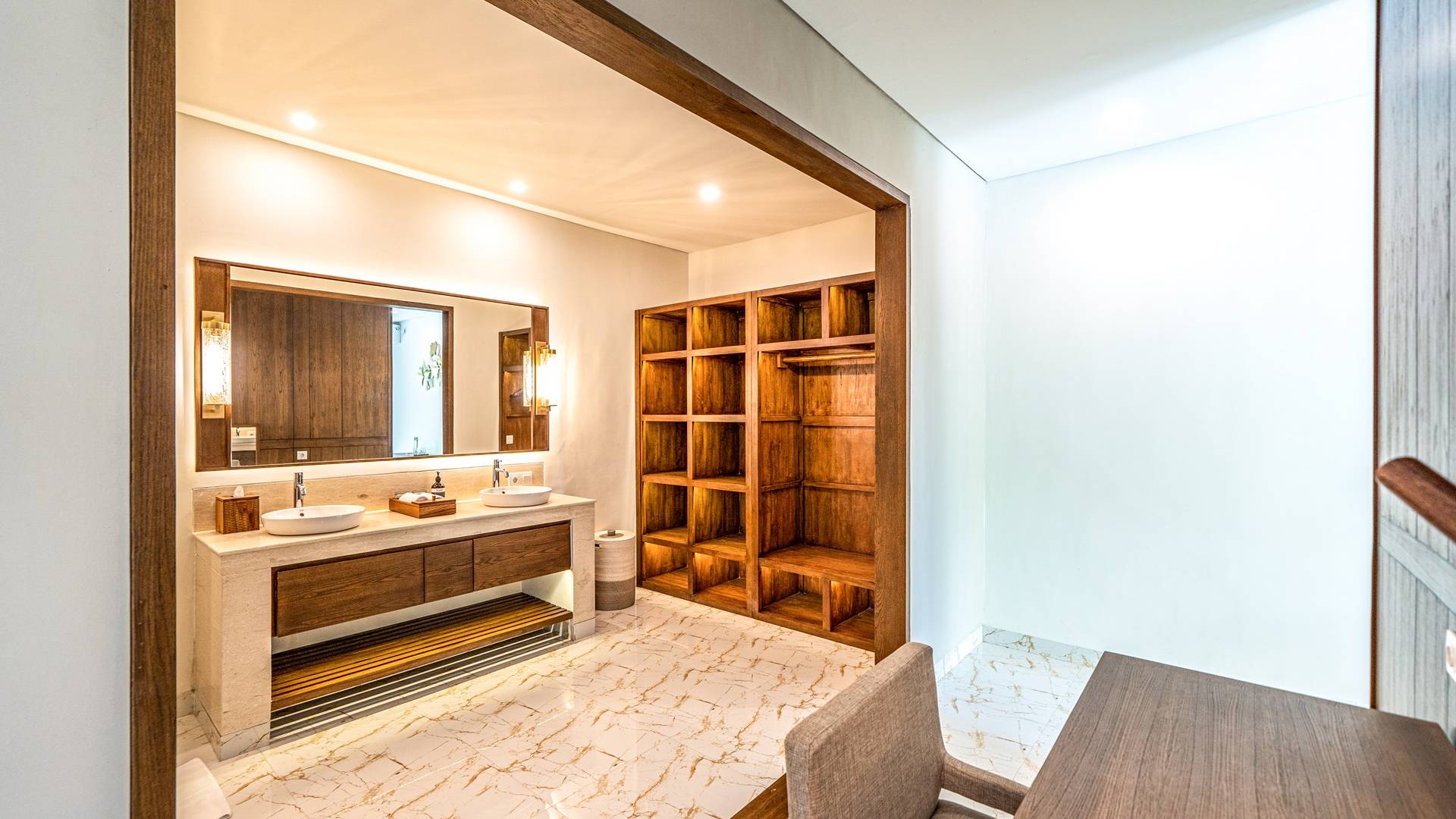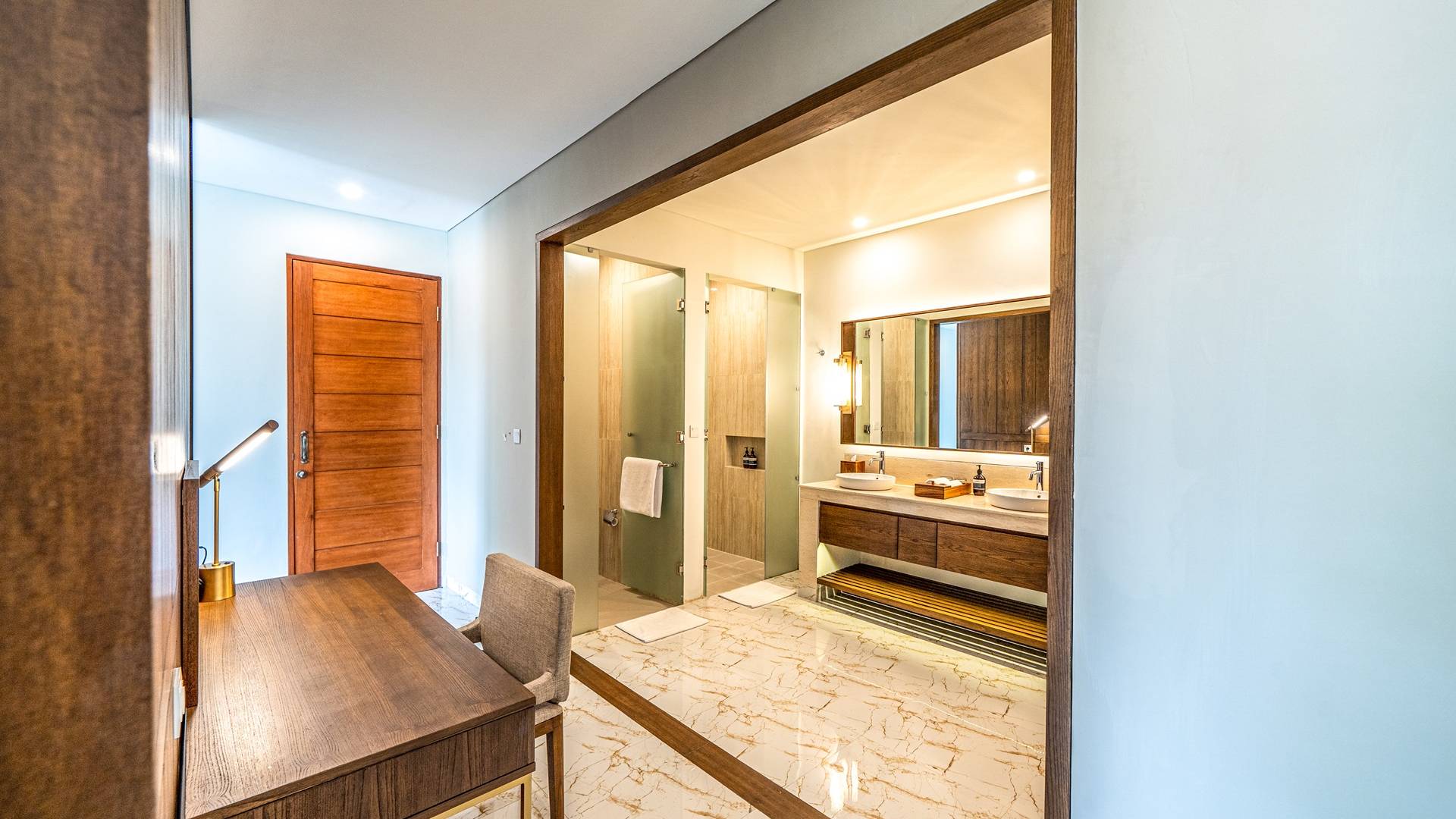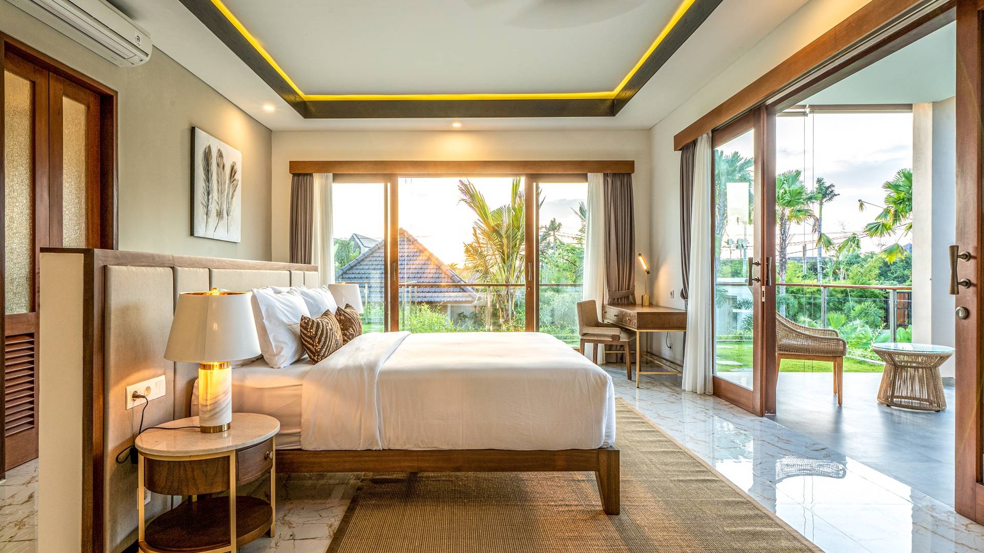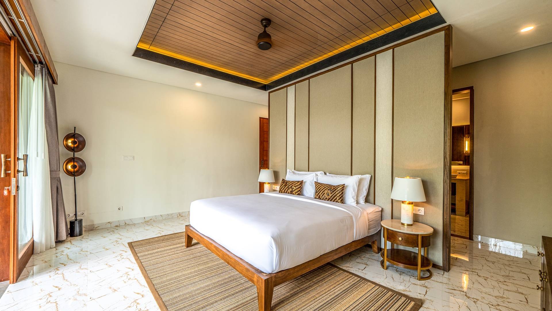 Εκθέτοντας πέντε υπνοδωμάτια σε δύο ορόφους, το καθένα διαθέτει τη δική του ντουλάπα από το δάπεδο μέχρι την οροφή, AC και ανεμιστήρα οροφής. Το κυρίως υπνοδωμάτιο στον τελευταίο όροφο διαθέτει τηλεόραση και μεγάλη ντουλάπα, καθώς και μπάνιο. Και τα τρία υπνοδωμάτια στον τελευταίο όροφο συνδέονται με μια μεγάλη βεράντα με ζιγκ-ζαγκ με θέα στην καταπράσινη πισίνα του κήπου από κάτω. Τα δύο υπνοδωμάτια στο ισόγειο συνδέονται μεταξύ τους, έχουν δική τους βεράντα καθώς και άμεση πρόσβαση στον κήπο της πισίνας. Από τα πέντε υπνοδωμάτια, τα τρία χρησιμοποιούν κρεβάτια queen με τα υπόλοιπα δύο μονά κρεβάτια.