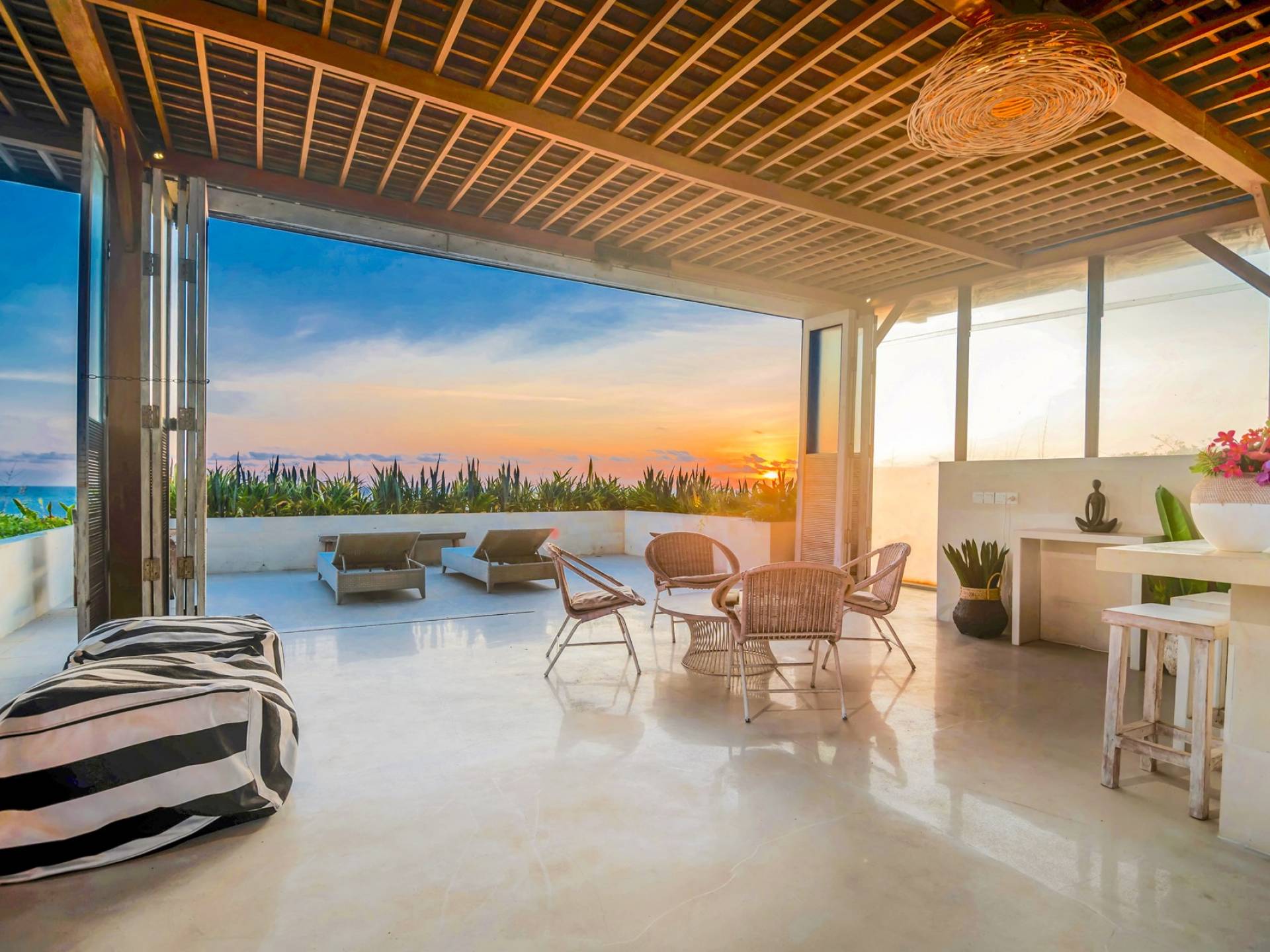 Το όραμα εμπνέεται από τα ταξίδια και την αγάπη για τη φύση, καταλήγοντας σε ένα «Boutique Sanctuary» προσαρμοσμένο για απαιτητικούς επισκέπτες που αναζητούν χώρο, στυλ και πολυτέλεια δίπλα στη θάλασσα. Ο σχεδιασμός και η διάταξη επιτρέπει στους επισκέπτες να απολαμβάνουν αδιάκοπα τις ανέσεις και τον περιβάλλοντα χώρο. Τα ανατολικά έπιπλα συνδυάζονται με σύγχρονους εσωτερικούς χώρους. Ένα στυλ "Luxe meets tribal". Το εκτεταμένο σκηνικό σε εξωτερικούς χώρους υποκινεί τη διασκέδαση και τη χαλάρωση, την αναπαραγωγή μουσικής ή την παρακολούθηση ταινιών με ποιοτικούς ήχους surround. Η απόλυτη πολυτέλεια ξυπόλυτη.