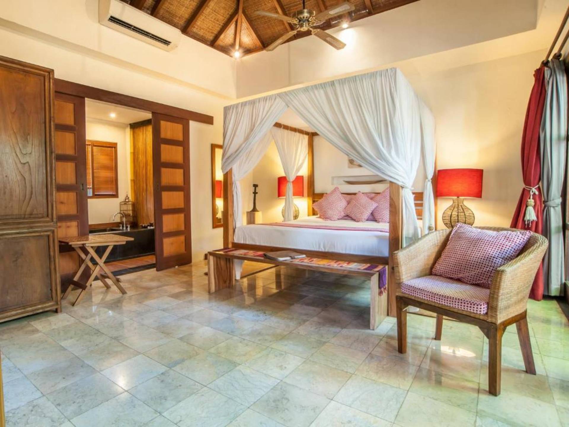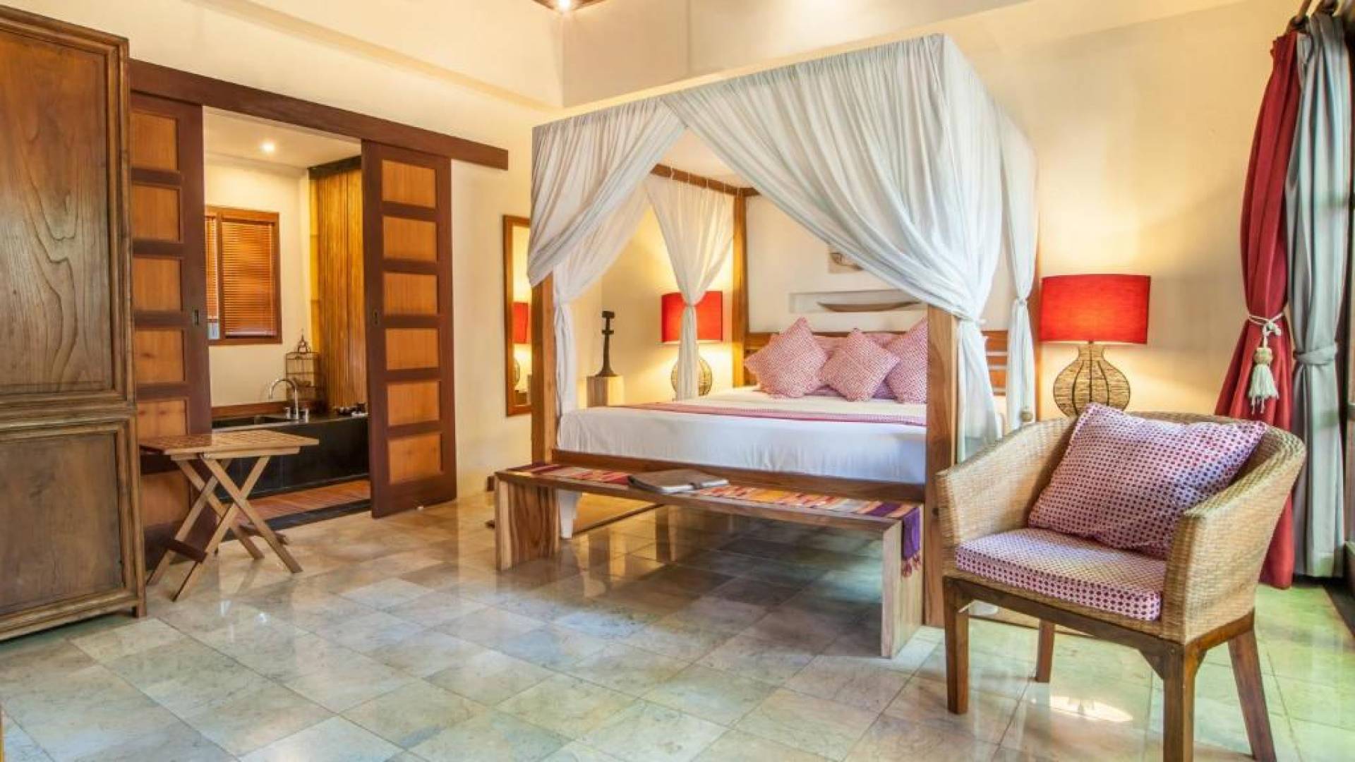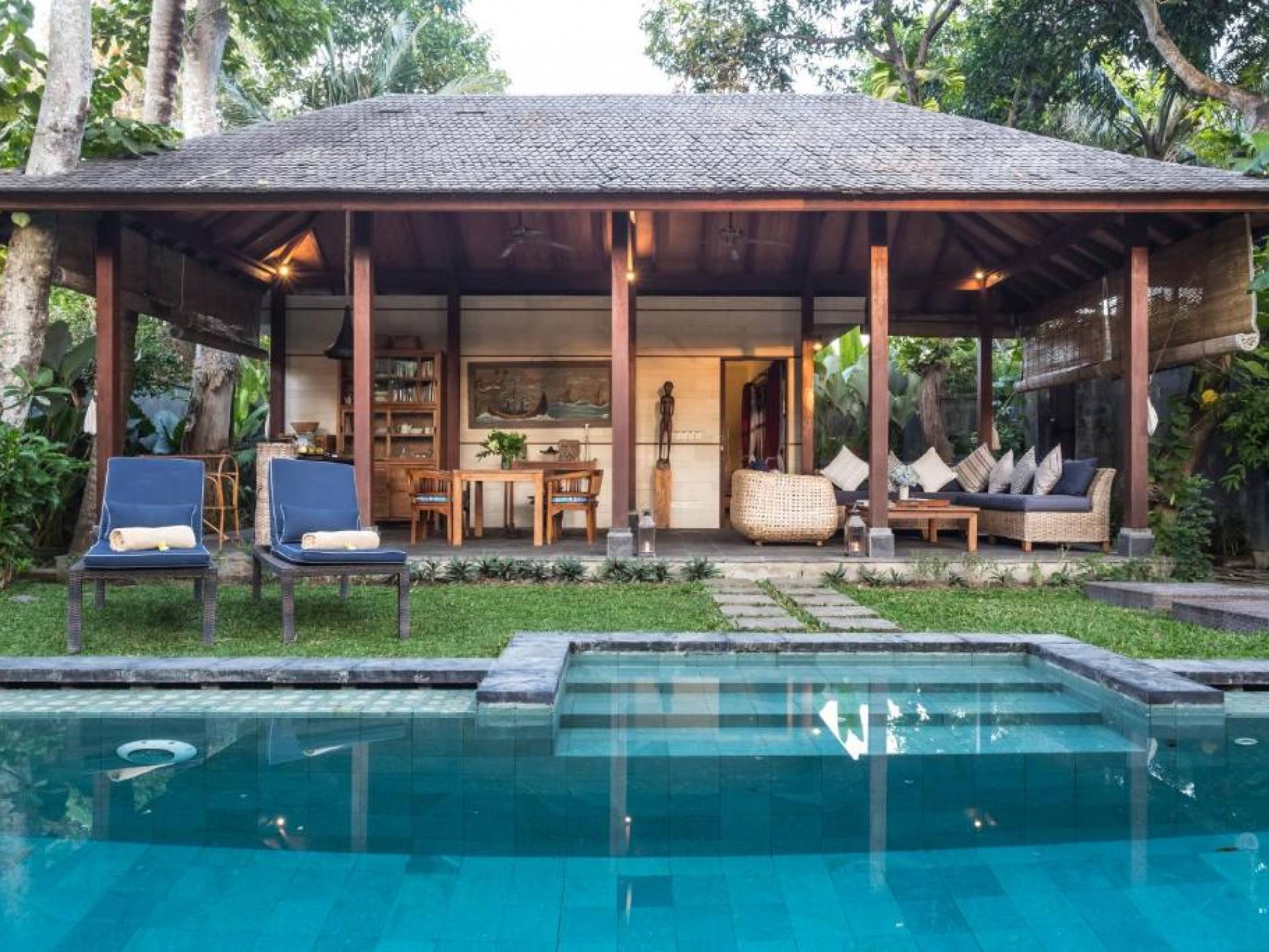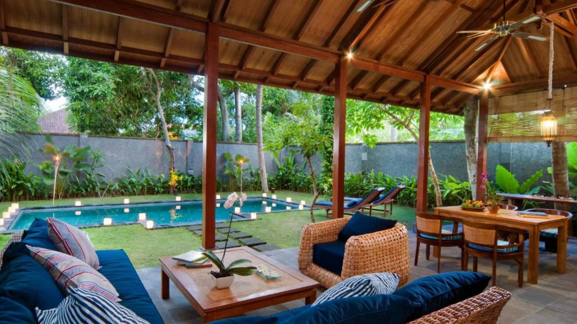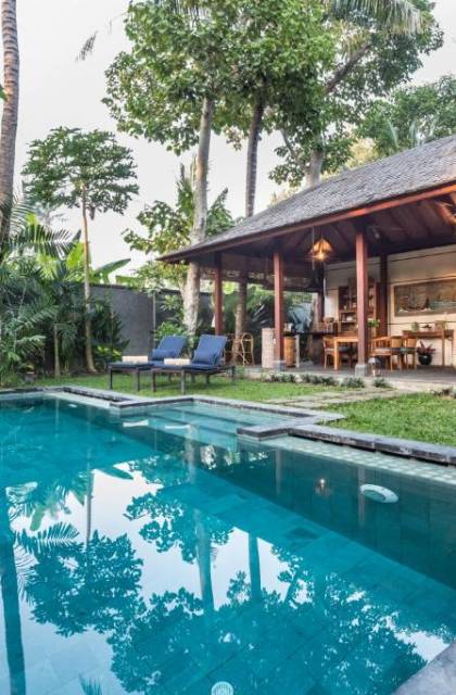 Οι πολυτελείς βίλες σχεδιάστηκαν χρησιμοποιώντας την απλότητα της μπαλινέζικης αρχιτεκτονικής και τη χρήση τοπικών υλικών όπως μπαμπού, παλιό ξύλο τικ και λευκή πέτρα Palimanan, μαζί με στέγες από βότσαλα από σίδηρο. Όλα αυτά σε συνδυασμό με σύγχρονες εγκαταστάσεις. όπως κλιματισμός, ανοιχτό σαλόνι, άρτια εξοπλισμένη κουζίνα κ.λπ. Οι επισκέπτες μπορούν να χαλαρώσουν στην ιδιωτική αυλή ενώ κάνουν ηλιοθεραπεία δίπλα στο κατάστρωμα της πισίνας ή απλά να καθίσουν στον καναπέ απολαμβάνοντας τον ιδιωτικό καταπράσινο κήπο της βίλας.