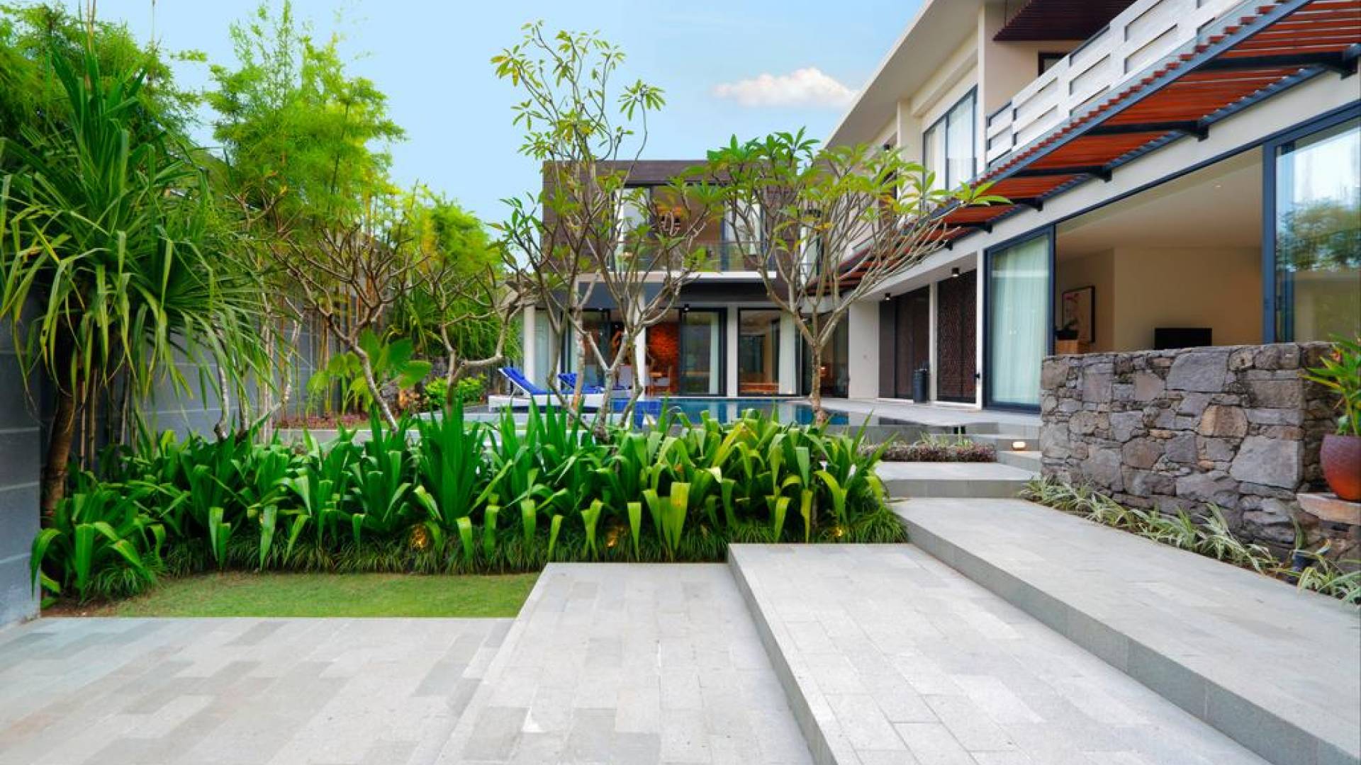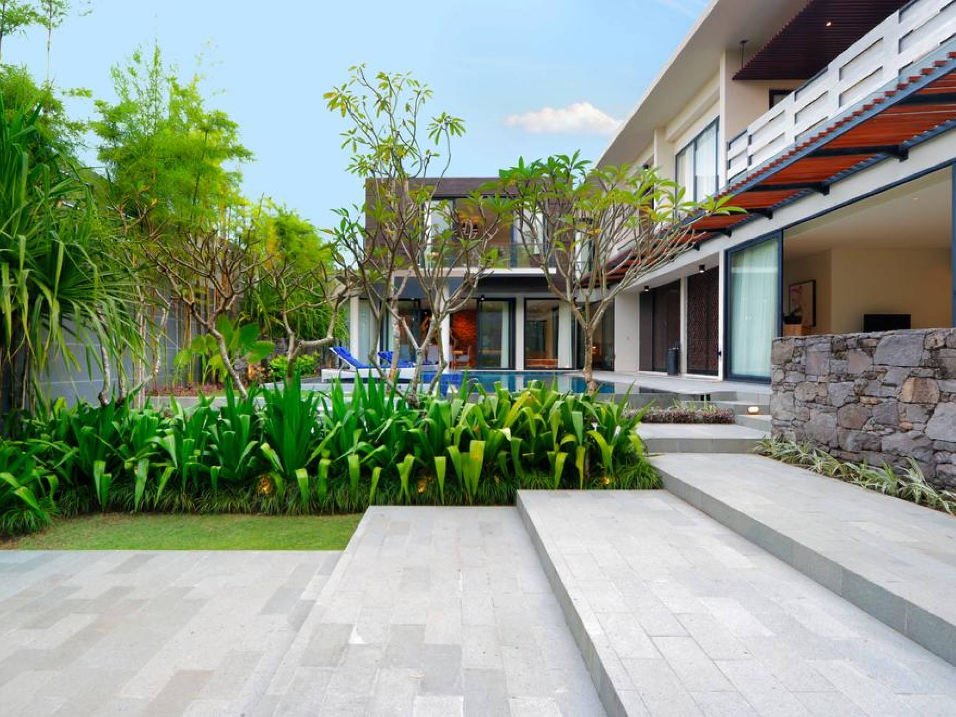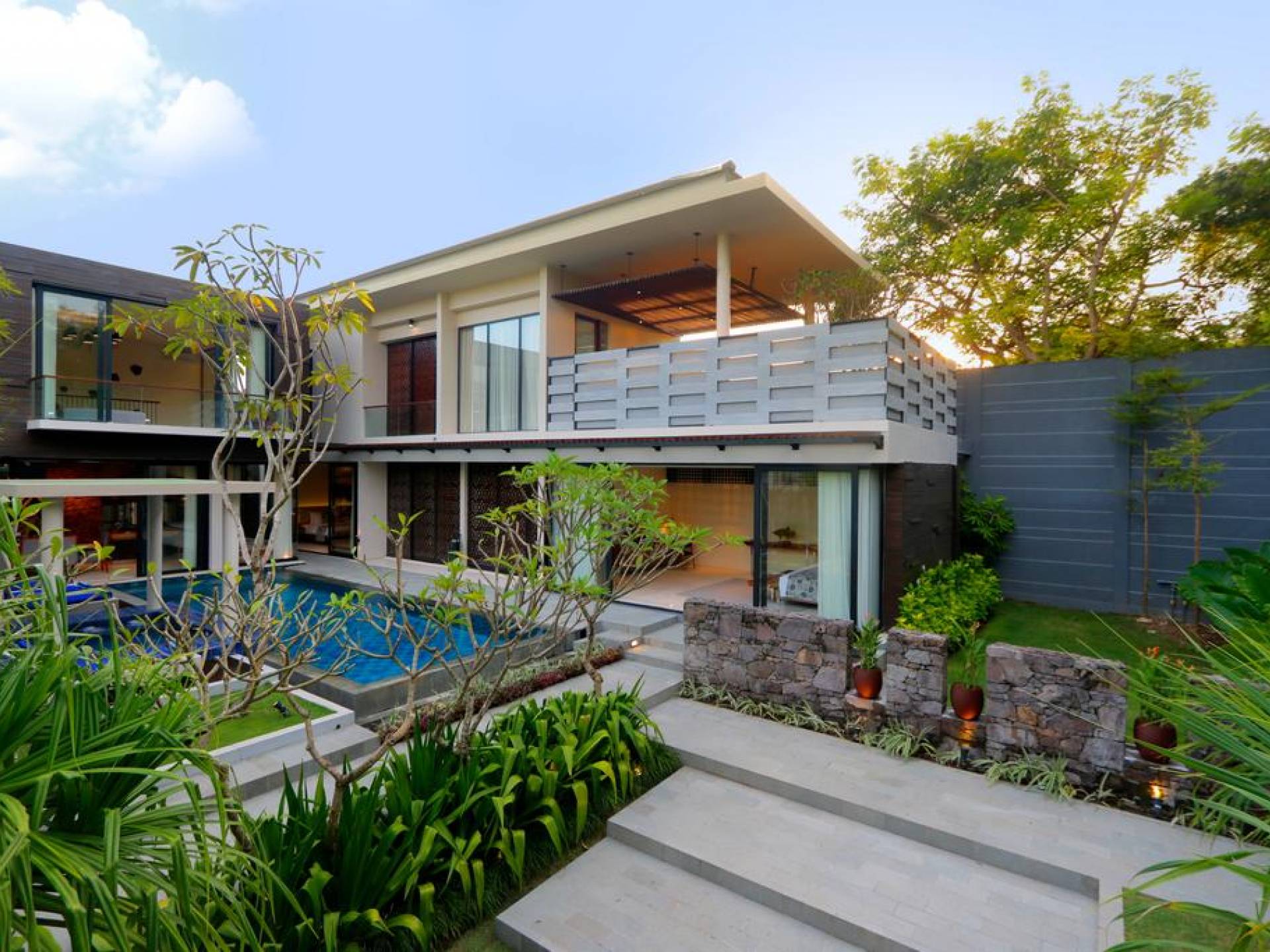 Το υπνοδωμάτιο στον τελευταίο όροφο έχει το δικό του μπαλκόνι με θέα στο κεντρικό τεμάχιο που είναι η πισίνα του κήπου και το πυκνό φύλλωμα της γύρω περιοχής. Τα κομψά μπάνια είναι ευρύχωρα με ημι-ανοιχτή δομή οροφής που επιτρέπουν άφθονο φυσικό φως. Διακοσμημένα με λευκά μάρμαρα, με φυσικά πέτρες σε μέρη, πιθανότατα καταλήγετε περισσότερο στο μπάνιο από ό, τι σκοπεύετε. Όλα τα μπάνια είναι εξοπλισμένα με μπανιέρες και τα ντους είναι εξοπλισμένα με ανέσεις σε επίπεδο θέρετρου.