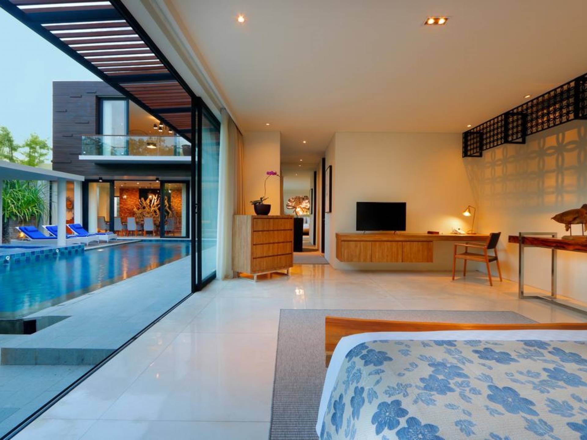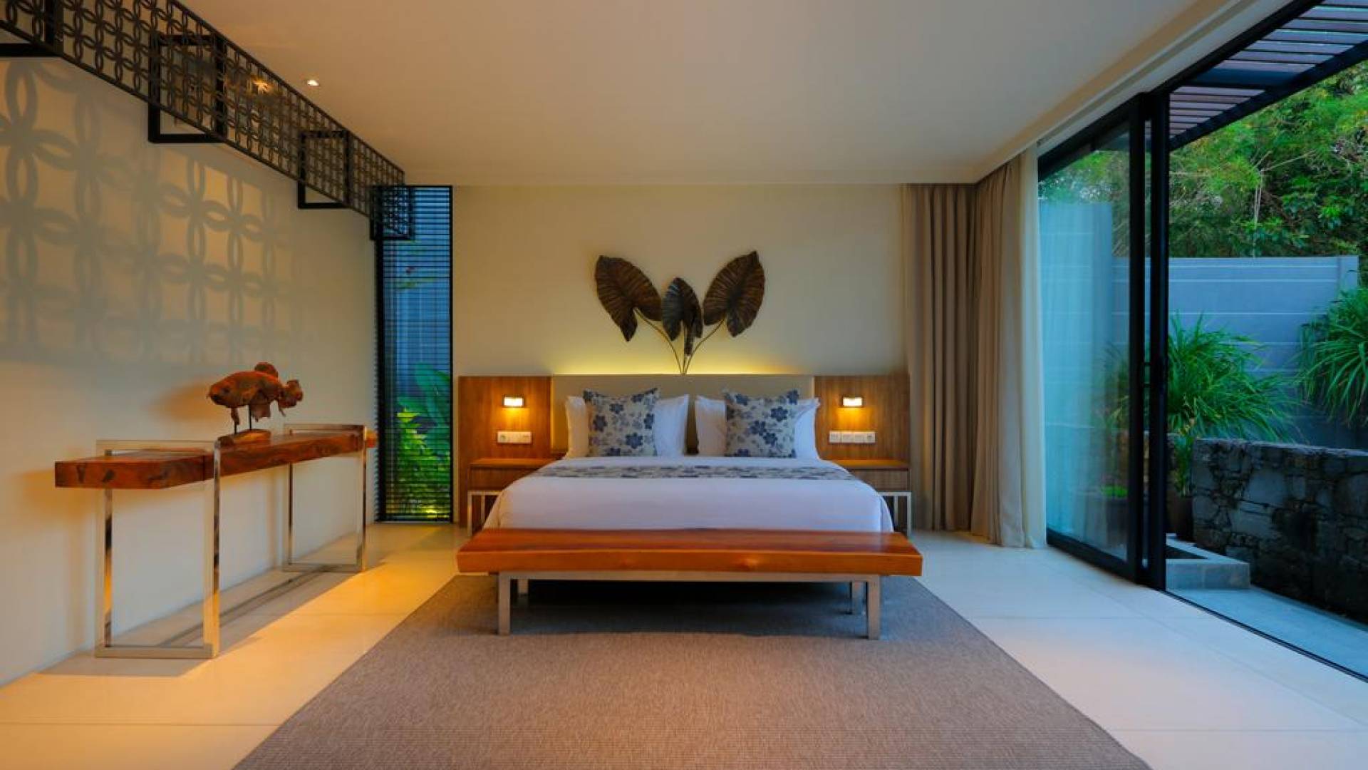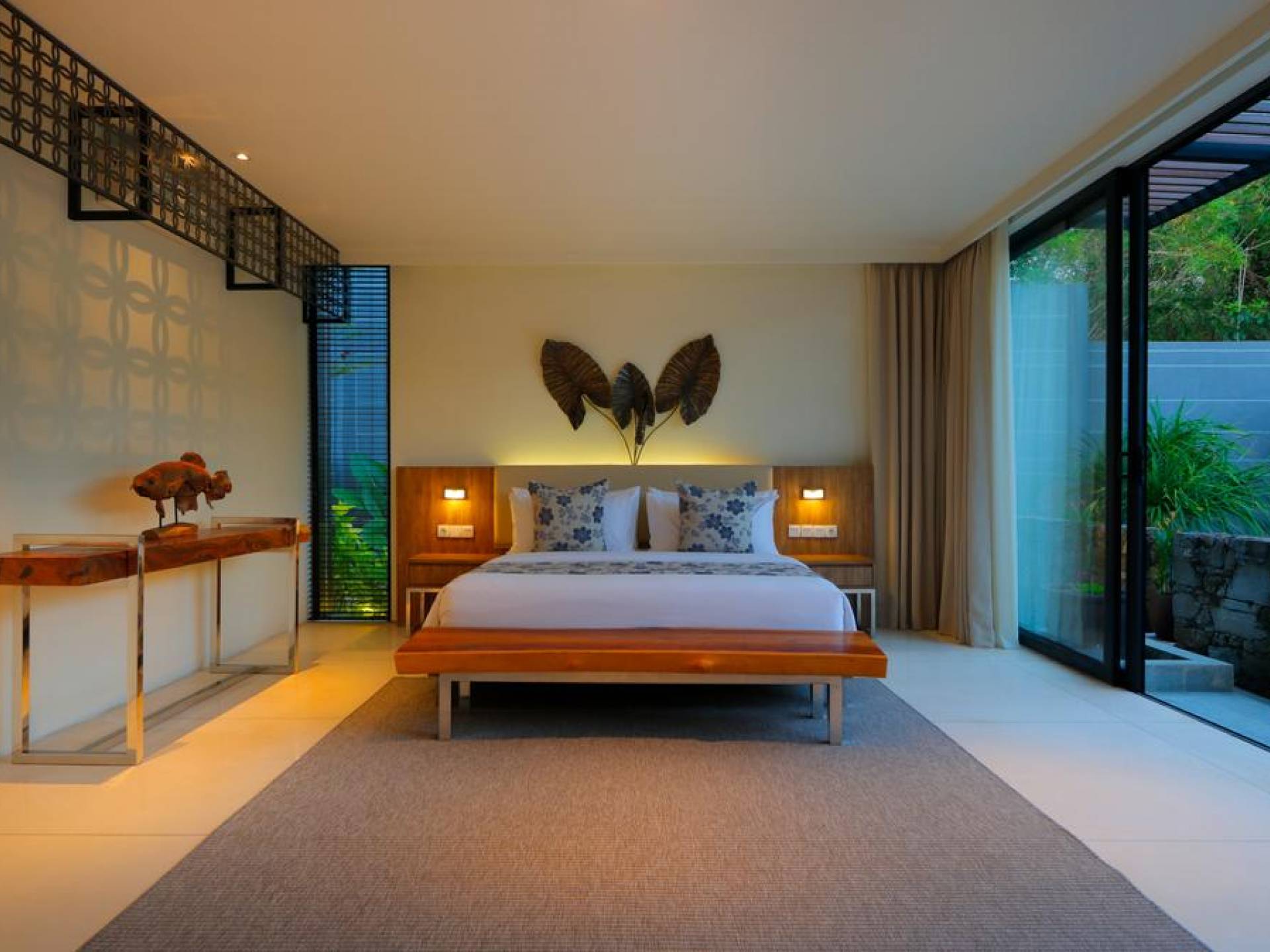 Οι χαλαροί χώροι είναι σχεδιασμένοι με σύγχρονες ευαισθησίες για μέγιστη άνεση, συμπληρωμένοι με εξαιρετική επίπλωση και εκλεπτυσμένα έργα τέχνης. Κάθε στροφή μιας γωνίας είναι μια ευχάριστη έκπληξη για τα μάτια. Η δημοφιλής παραλία Geger απέχει μόλις 5 λεπτά με τα πόδια. Και τα τέσσερα πολυτελή υπνοδωμάτια διαθέτουν υπέροχα διπλά κρεβάτια, ιδιωτικό μπάνιο, ντουλάπα και κλιματισμό. Τα τρία υπνοδωμάτια στο ισόγειο ανοίγουν στον χώρο της πισίνας.