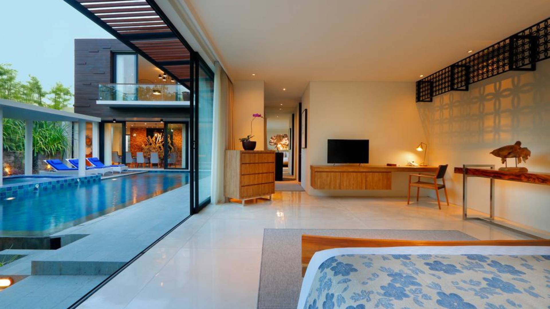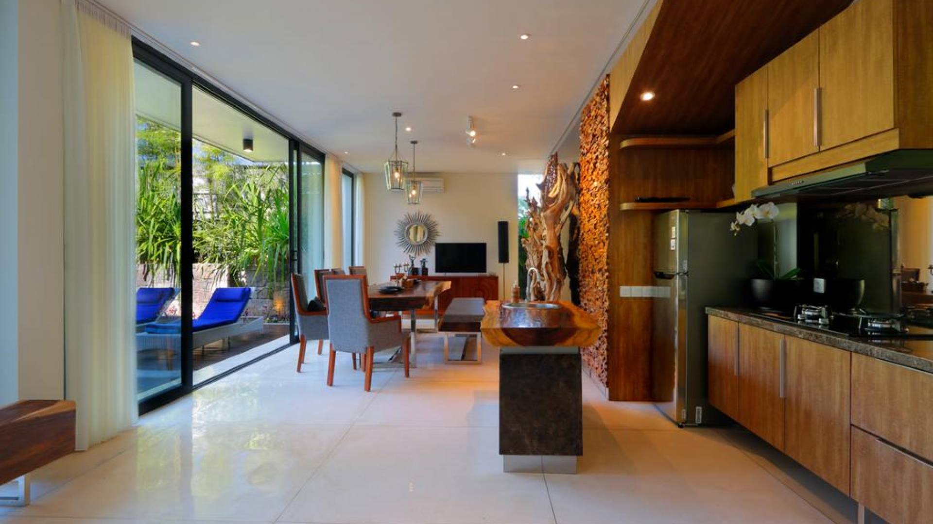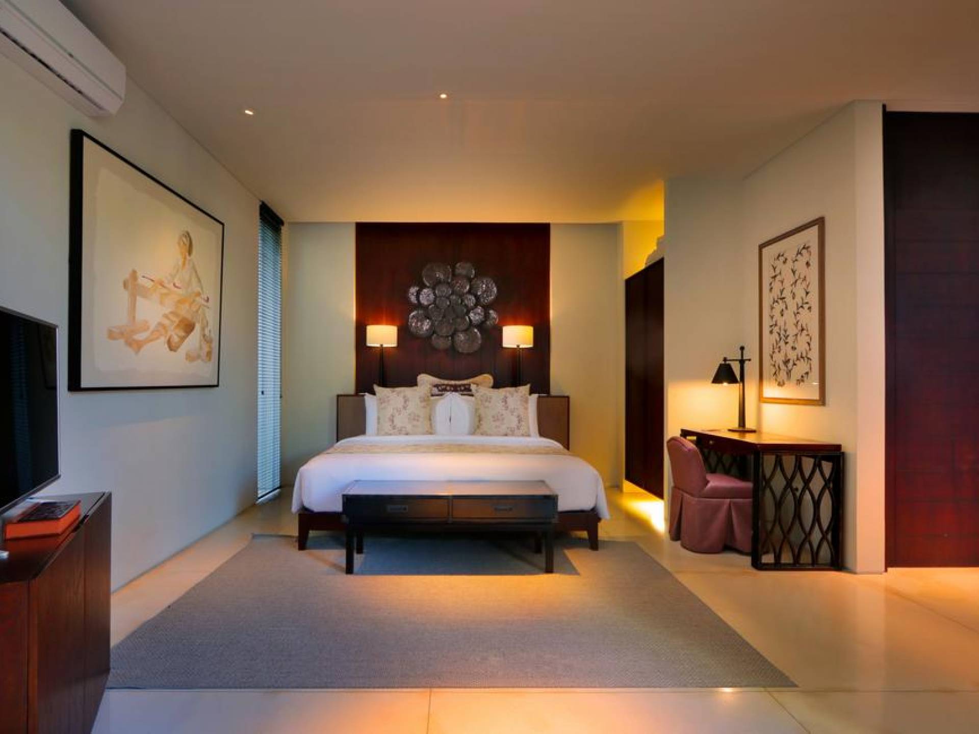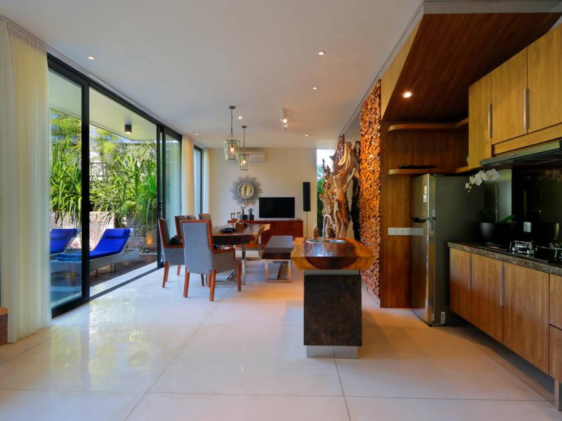 Οι χαλαροί χώροι είναι σχεδιασμένοι με σύγχρονες ευαισθησίες για μέγιστη άνεση, συμπληρωμένοι με εξαιρετική επίπλωση και εκλεπτυσμένα έργα τέχνης. Κάθε στροφή μιας γωνίας είναι μια ευχάριστη έκπληξη για τα μάτια. Η δημοφιλής παραλία Geger απέχει μόλις 5 λεπτά με τα πόδια. Και τα τέσσερα πολυτελή υπνοδωμάτια διαθέτουν υπέροχα διπλά κρεβάτια, ιδιωτικό μπάνιο, ντουλάπα και κλιματισμό. Τα τρία υπνοδωμάτια στο ισόγειο ανοίγουν στον χώρο της πισίνας.