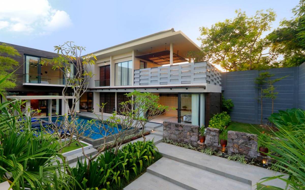 Άψογη με κάθε τρόπο, η ρετιρέ βίλα τεσσάρων υπνοδωματίων στο Vinila Nusa Dua αποπνέει αξεπέραστη πολυτέλεια στο σχεδιασμό, την άνεση και τις λεπτομέρειες. Καταλαμβάνει έκταση 600 τετραγωνικών μέτρων, η διάταξη σχήματος L αποτελείται από μία διώροφη δομή στη μία πλευρά με δύο παρακείμενες μονές ιστορίες στην άλλη. Οι γυάλινοι τοίχοι από το δάπεδο μέχρι την οροφή εξασφαλίζουν άπλετο φυσικό φως, καθώς όλα τα δωμάτια στο ισόγειο έχουν άμεση πρόσβαση στην εξωτερική πισίνα.