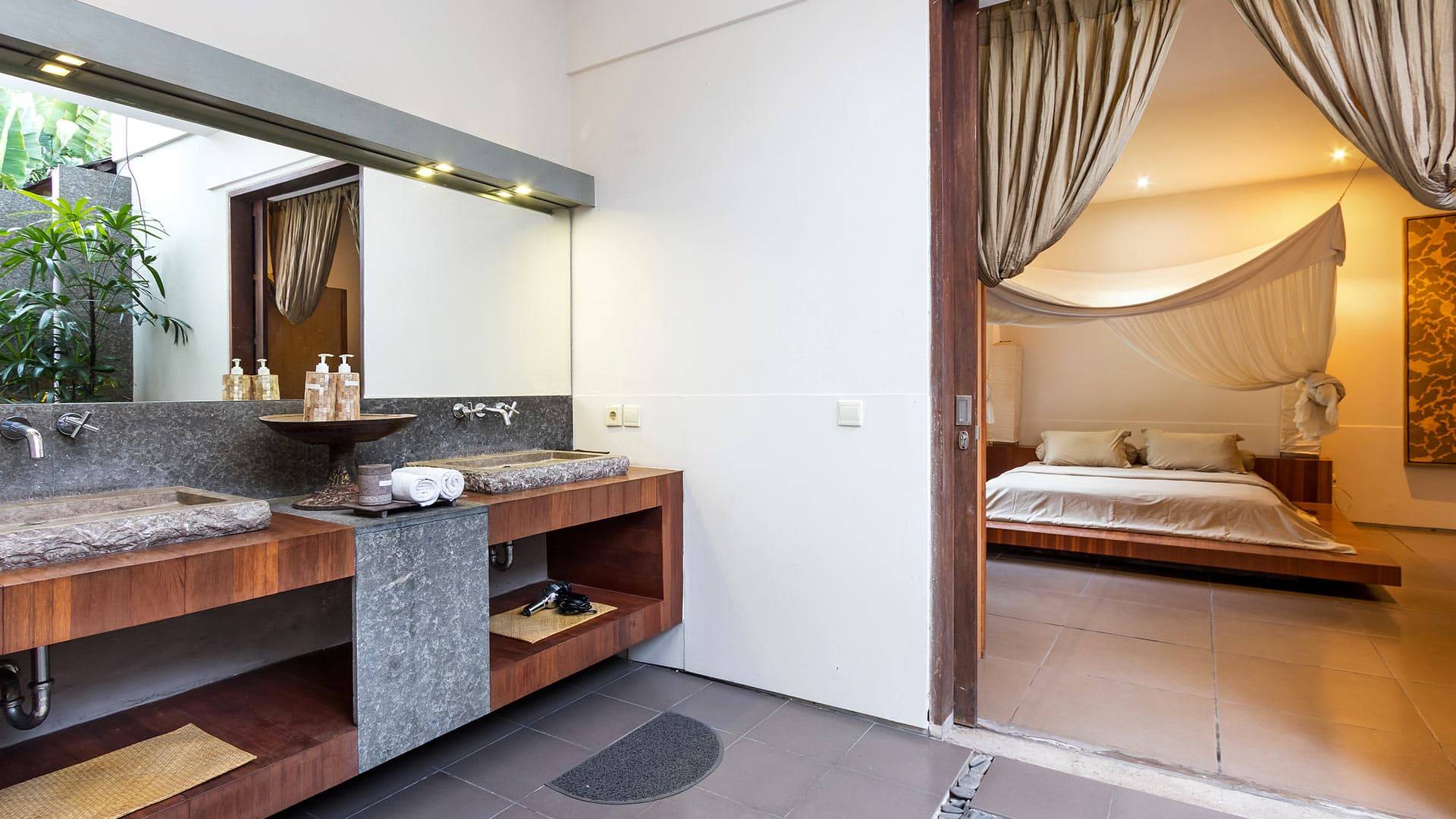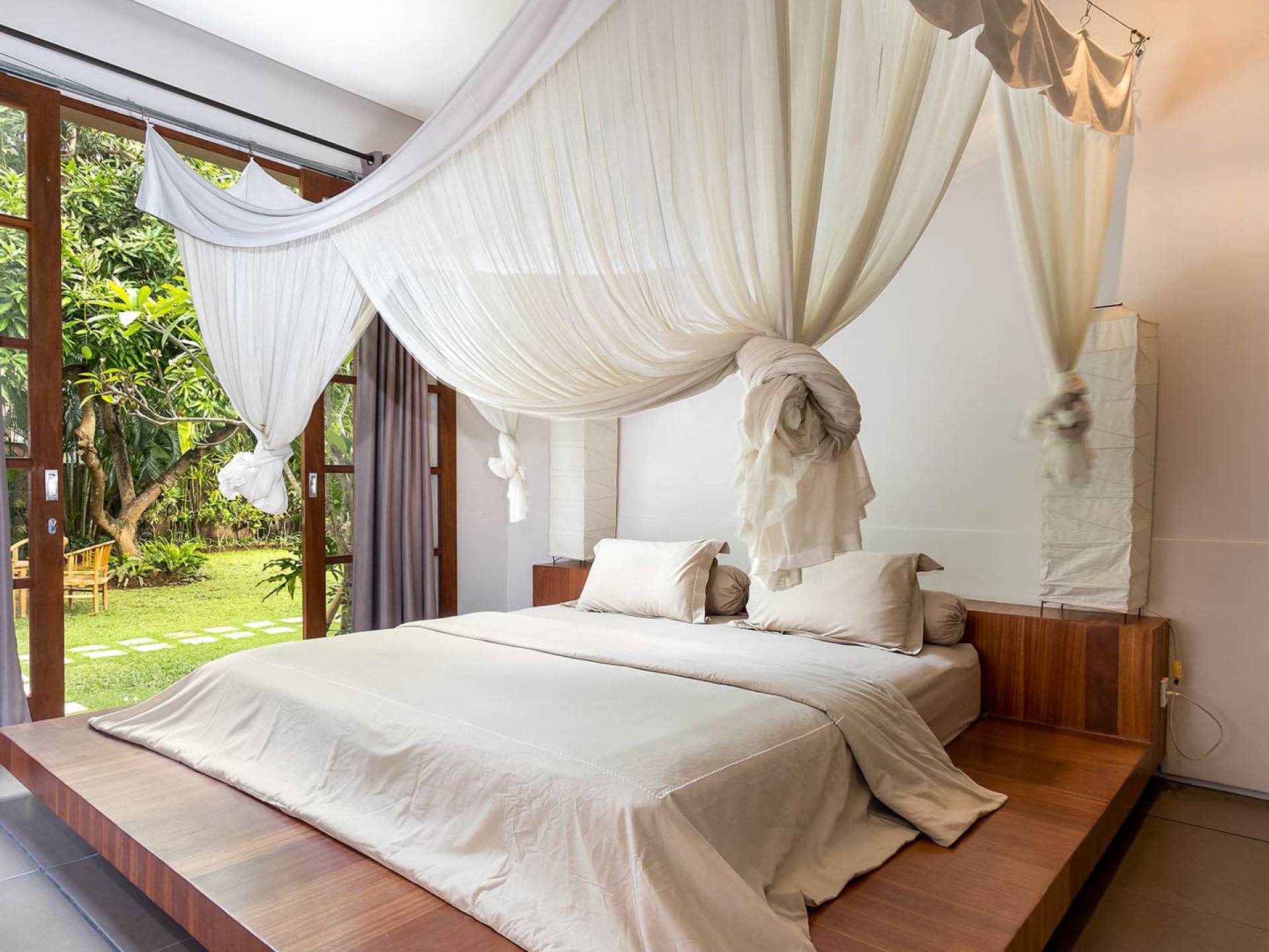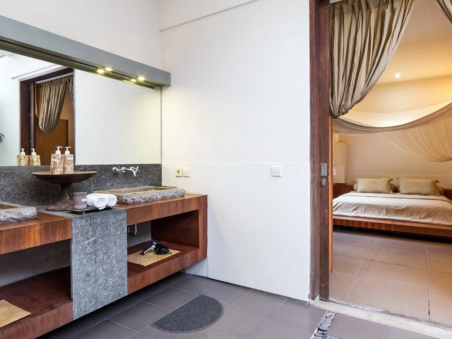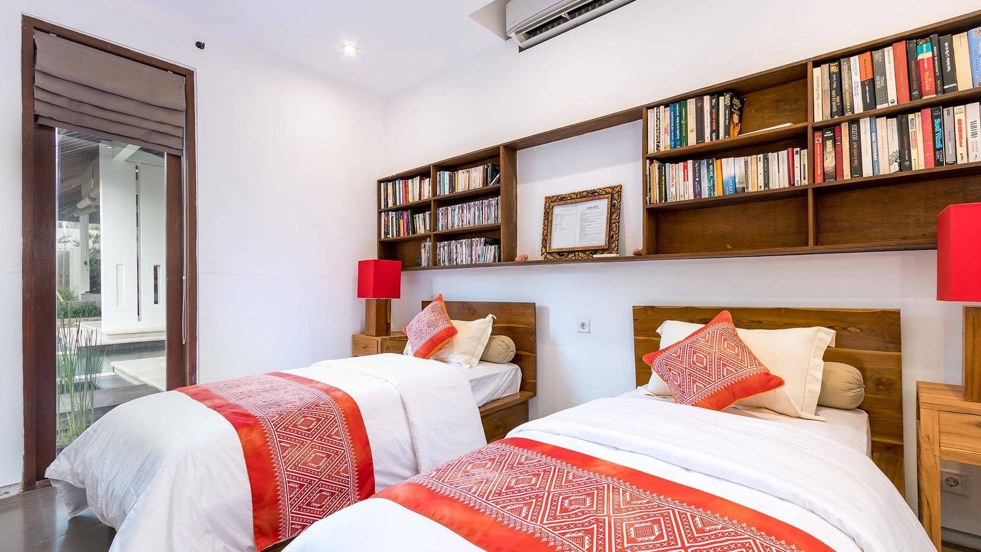 Υπάρχουν 5 τέλεια ξεκούραστες σουίτες βίλας που βρίσκονται μέσα στο κτήμα, η καθεμία πλήρως κλιματιζόμενη και συνοδεύεται από ιδιωτικά τροπικά υπαίθρια ιδιωτικά μπάνια για ντους αλφρέσκο ύφους κάτω από το γαλάζιο ή τον αστέρι. Όλα τα δωμάτια είναι ευρύχωρα, διακοσμημένα με έθνικ έργα τέχνης και υπόκεινται σε φυσικούς γήινους τόνους. Το κύριο υπνοδωμάτιο διαθέτει γυάλινες συρόμενες πόρτες πλήρους μήκους που ανοίγουν κατευθείαν στο κατάστρωμα της πισίνας για εκείνους που τους αρέσει να κάνουν μπάνιο το πρωί. Το king-size κρεβάτι βρίσκεται σε ένα πλάτωμα από ξύλο ντυμένο με κομψές λευκές κουρτίνες. Για ψυχαγωγία, αυτό το δωμάτιο διαθέτει επίσης δορυφορική τηλεόραση με DVD player. Το δωμάτιο συνορεύει με μια ιδιωτική μελέτη, όπου στεγάζεται μια βιβλιοθήκη βιβλίων και DVD. Η μελέτη μετατρέπεται σε επιπλέον υπνοδωμάτιο κατόπιν αιτήματος. Τα δύο υπνοδωμάτια επισκεπτών διαθέτουν επίσης μεγάλα κρεβάτια king size. Η μία από τις συνδέσεις με την κύρια σουίτα, ιδανική για οικογένειες και η άλλη είναι κρυμμένη σε ιδιωτικό στούντιο, με καθιστικό και μικρή κουζίνα.