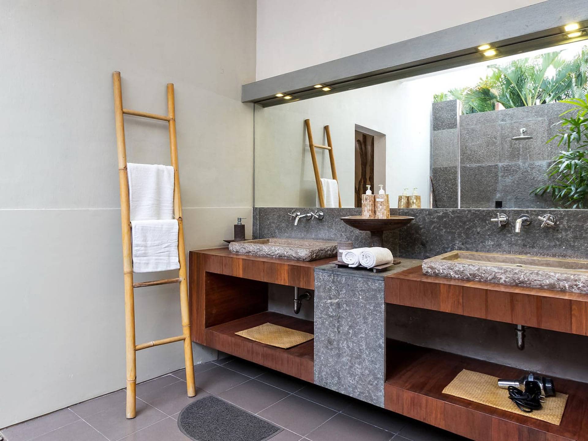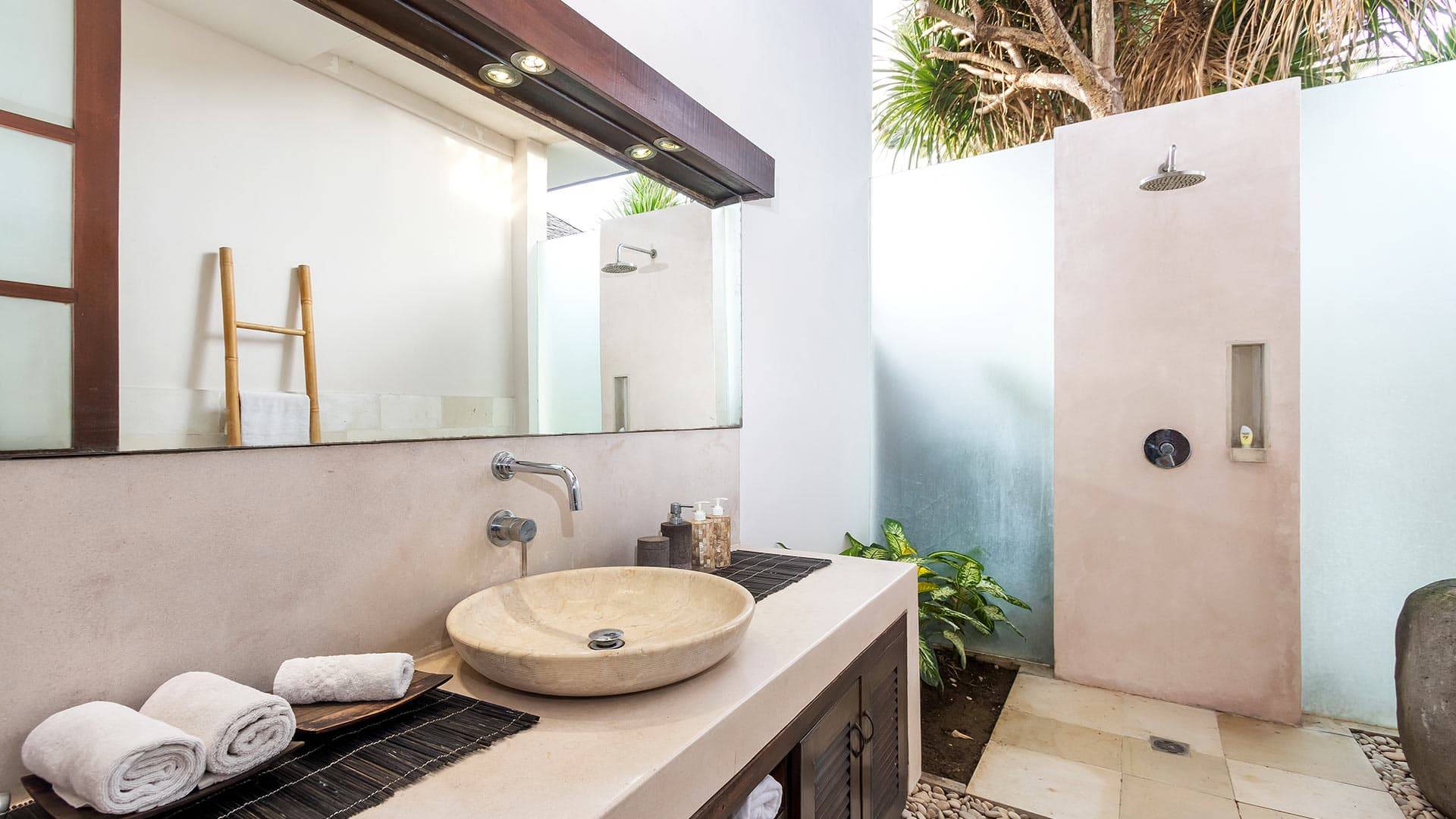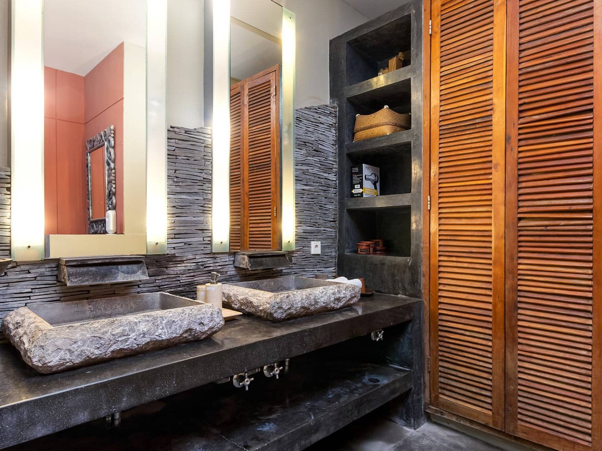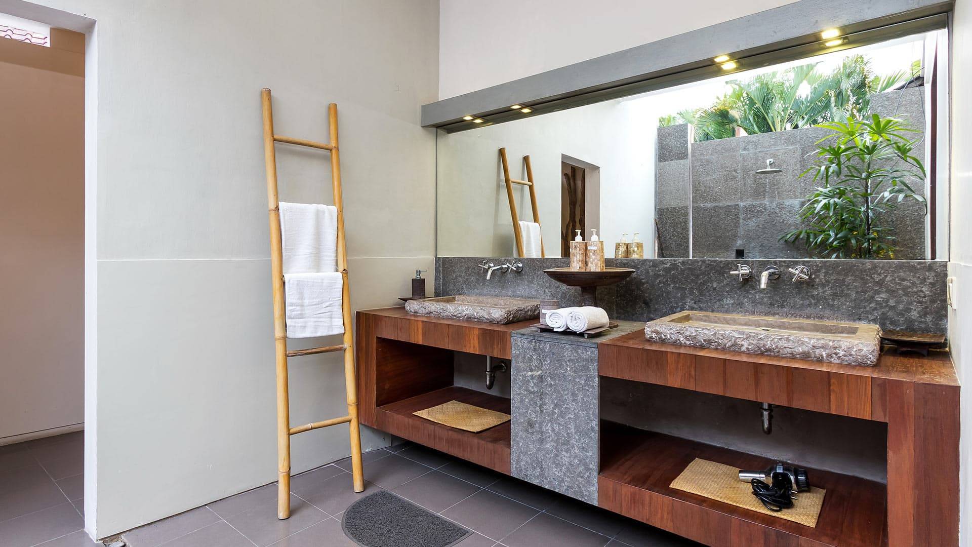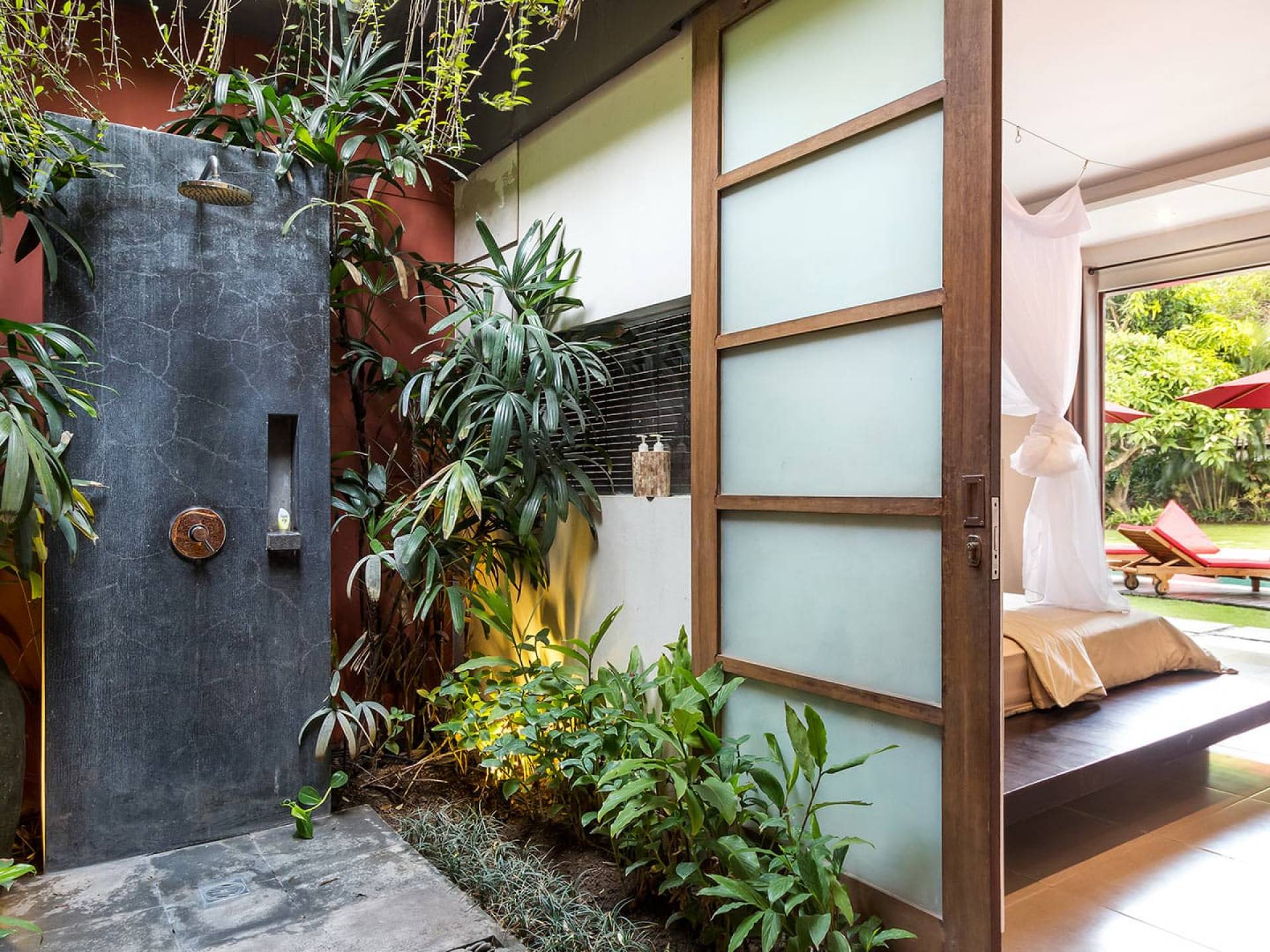 Υπάρχουν 5 τέλεια ξεκούραστες σουίτες βίλας που βρίσκονται μέσα στο κτήμα, η καθεμία πλήρως κλιματιζόμενη και συνοδεύεται από ιδιωτικά τροπικά υπαίθρια ιδιωτικά μπάνια για ντους αλφρέσκο ύφους κάτω από το γαλάζιο ή τον αστέρι. Όλα τα δωμάτια είναι ευρύχωρα, διακοσμημένα με έθνικ έργα τέχνης και υπόκεινται σε φυσικούς γήινους τόνους. Το κύριο υπνοδωμάτιο διαθέτει γυάλινες συρόμενες πόρτες πλήρους μήκους που ανοίγουν κατευθείαν στο κατάστρωμα της πισίνας για εκείνους που τους αρέσει να κάνουν μπάνιο το πρωί. Το king-size κρεβάτι βρίσκεται σε ένα πλάτωμα από ξύλο ντυμένο με κομψές λευκές κουρτίνες. Για ψυχαγωγία, αυτό το δωμάτιο διαθέτει επίσης δορυφορική τηλεόραση με DVD player. Το δωμάτιο συνορεύει με μια ιδιωτική μελέτη, όπου στεγάζεται μια βιβλιοθήκη βιβλίων και DVD. Η μελέτη μετατρέπεται σε επιπλέον υπνοδωμάτιο κατόπιν αιτήματος. Τα δύο υπνοδωμάτια επισκεπτών διαθέτουν επίσης μεγάλα κρεβάτια king size. Η μία από τις συνδέσεις με την κύρια σουίτα, ιδανική για οικογένειες και η άλλη είναι κρυμμένη σε ιδιωτικό στούντιο, με καθιστικό και μικρή κουζίνα.