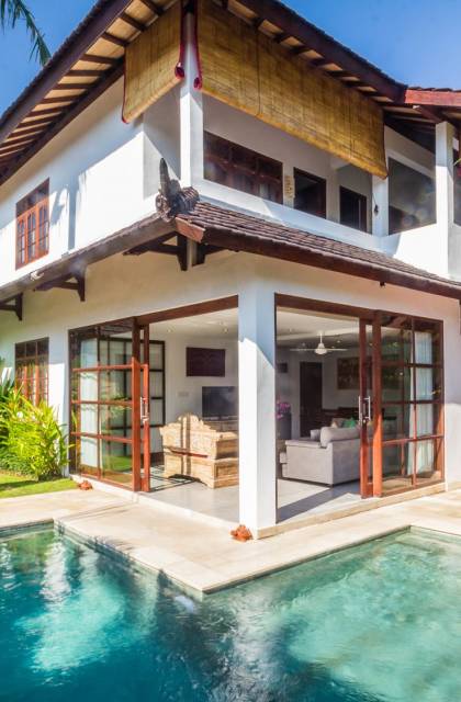 Η Villa Bewa Seminyak είναι μια πολυτελής βίλα με 3 υπνοδωμάτια και ιδιωτική πισίνα. Στην καρδιά του Seminyak, σε μια ωραία και ήσυχη περιοχή αλλά σε κοντινή απόσταση με τα πόδια από όλα τα hot spots του Seminyak (σκεφτείτε τη διάσημη παραλία Double Six, πολυσύχναστους εμπορικούς δρόμους γεμάτους μπουτίκ μόδας υψηλών προδιαγραφών και την εμβληματική «eat street»), μπορείτε να μείνετε και να χαλαρώσετε στη γοητευτική και άνετη Villa Bewa. Αυτό το κρυφό κόσμημα 3 υπνοδωματίων του κεντρικού Seminyak διαθέτει ένα σύγχρονο διώροφο κιόσκι με όμορφο μπαλινέζικο εσωτερικό ντιζάιν και έναν υπέροχο τροπικό κήπο με αστραφτερή ιδιωτική πισίνα, δημιουργώντας την τέλεια ατμόσφαιρα διακοπών για να χαλαρώσετε εντελώς μαζί με τους αγαπημένους σας στο νησί από χίλιους ναούς.