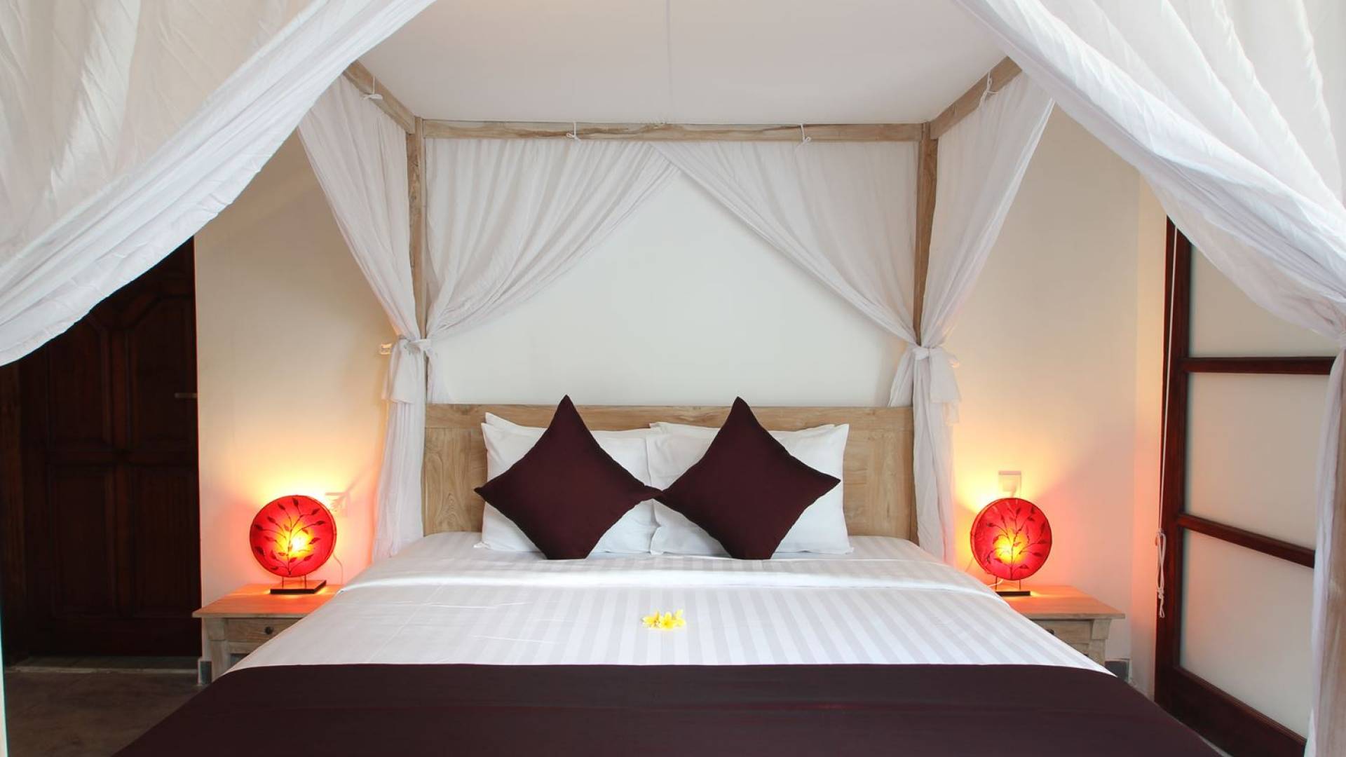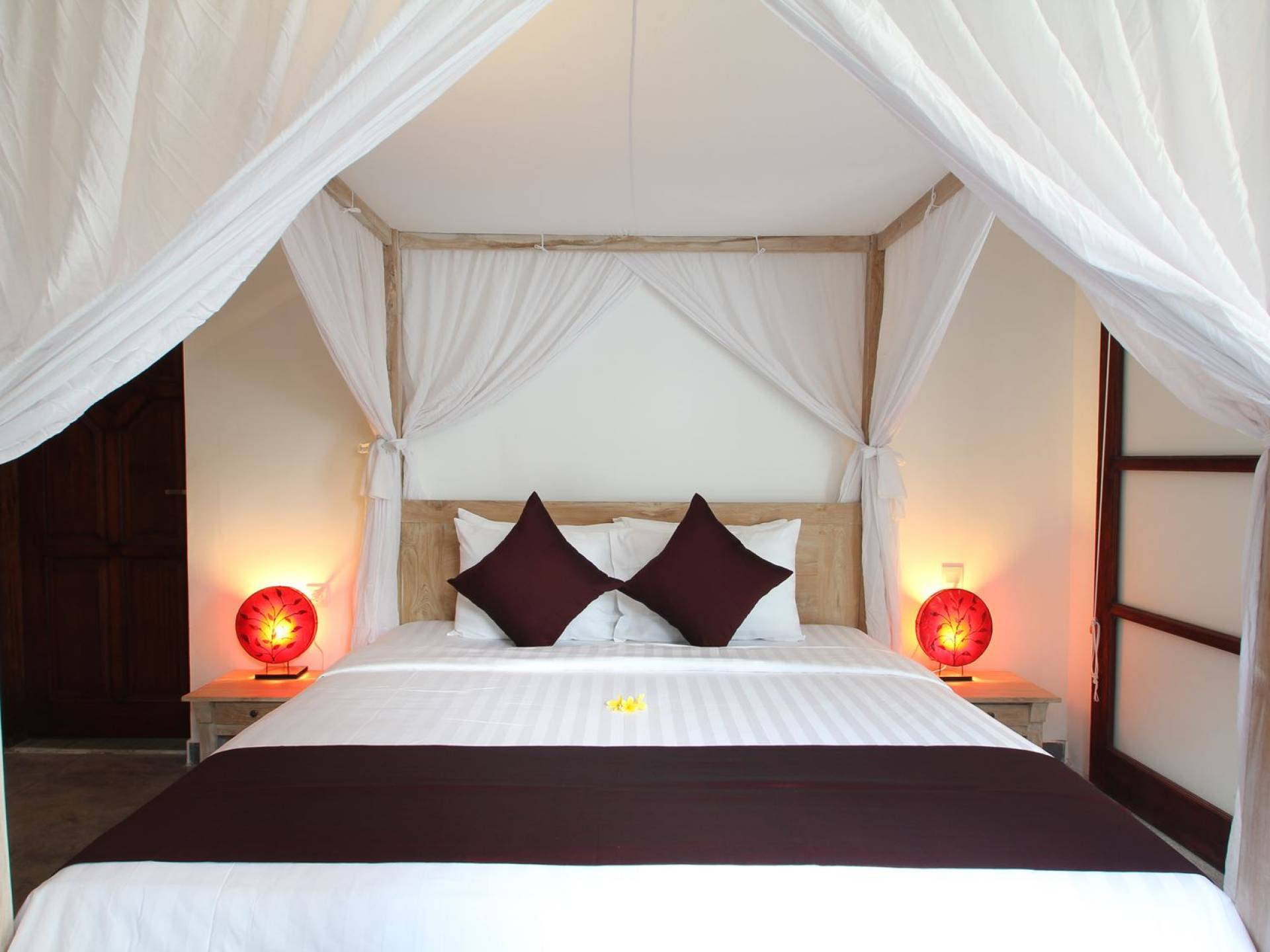 Η Villa Bewa στεγάζει τρεις κλιματιζόμενες σουίτες κρεβατοκάμαρων. Μια σπειροειδής ξύλινη σκάλα, που φυλάσσεται από δύο παραδοσιακά ξυλόγλυπτα αγάλματα, οδηγεί στα δύο υπνοδωμάτια επισκεπτών και η κύρια σουίτα βρίσκεται στον κάτω όροφο, γειτονική με τον κήπο και το σαλόνι με γυάλινες συρόμενες πόρτες. Και τα τρία υπνοδωμάτια διαθέτουν πανέμορφα ξύλινα δάπεδα, εντυπωσιακά κρεβάτια king-size ντυμένα με λευκές κουρτίνες, τηλεοράσεις με DVD player για ψυχαγωγία αργά το βράδυ και ιδιωτικά, εν μέρει υπαίθρια ιδιωτικά μπάνια εξοπλισμένα με πολυτελή ντους ψιλής βροχής.