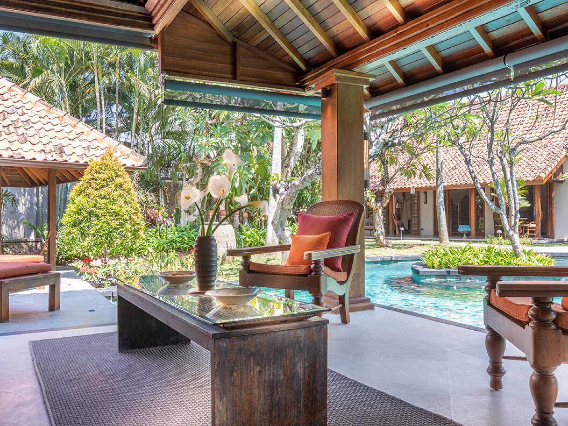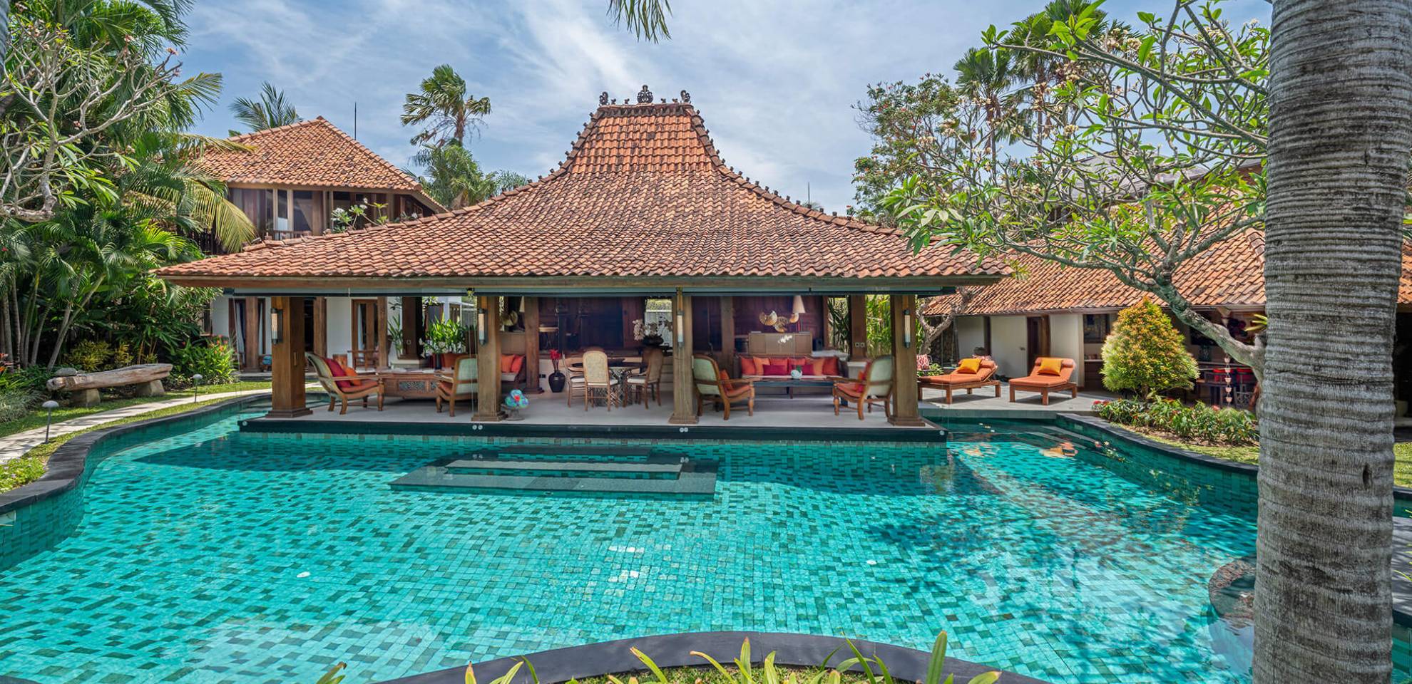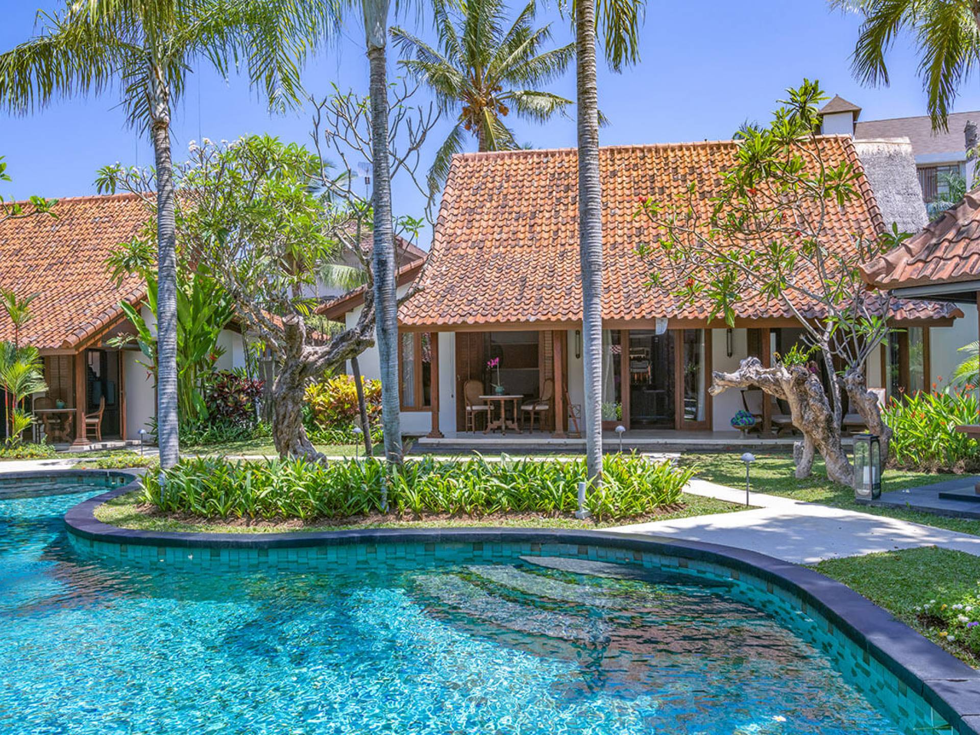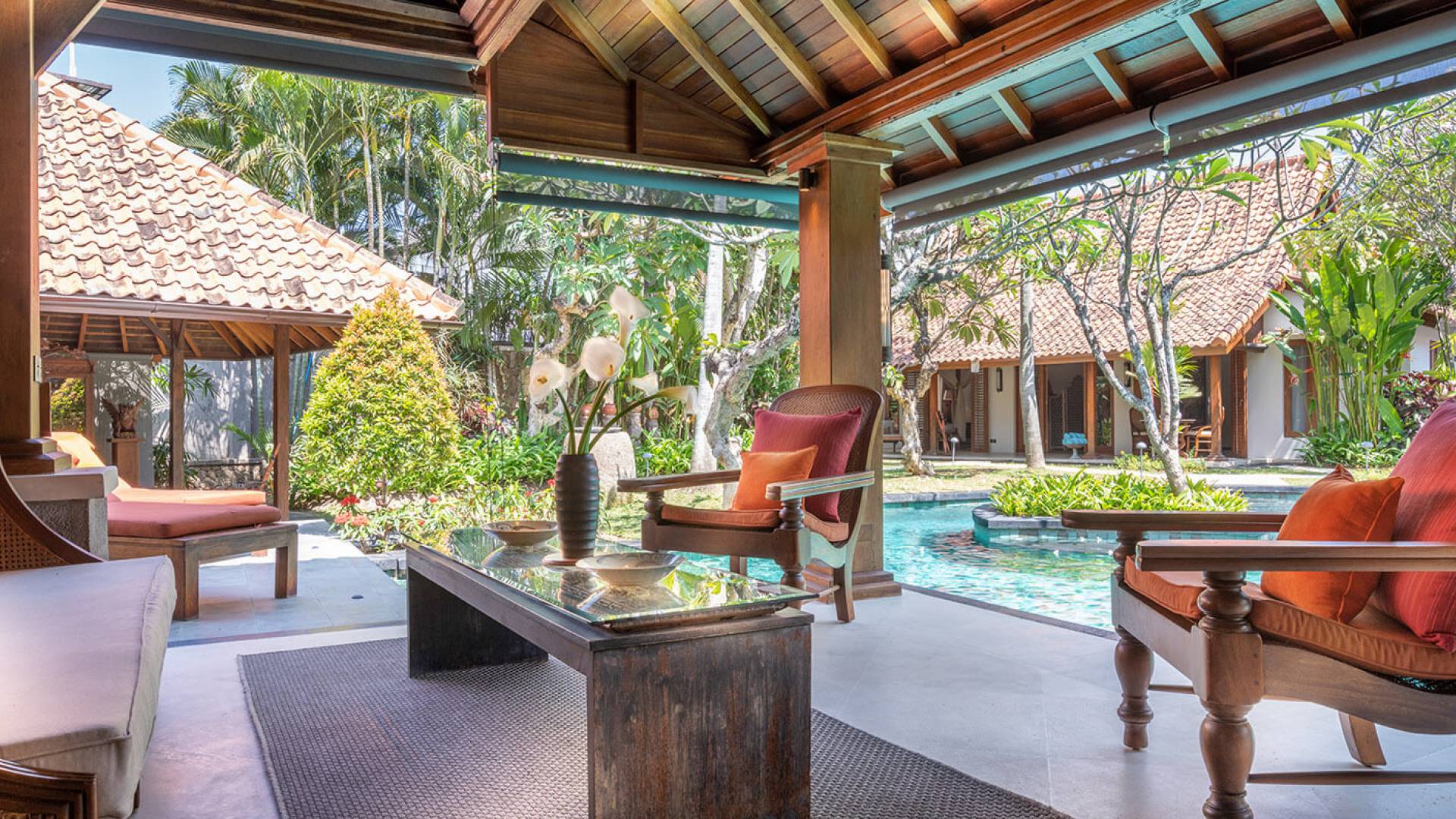 Μια σειρά από περίπτερα που συνοδεύονται από έναν όμορφο τροπικό κήπο και μια υπερβολική πισίνα. Το πλήρως στελεχωμένο Villa Des Indes I Seminyak προσφέρει παραδοσιακή φιλοξενία στο Μπαλί από την κύρια είσοδο με τη μεγάλη λίμνη koi και το γλυπτό αντίκες γλυπτό. Δύο μπανγκαλόου με κύρια κρεβατοκάμαρα βρίσκονται απέναντι από τη μεγάλη πισίνα με τον ενιαίο χώρο καθιστικού, ενώ το διώροφο κτίριο με τις 2 σουίτες επισκεπτών βρίσκεται στη μία πλευρά του κήπου. Απέναντι, το υπέροχο μπαρ επισκεπτών με το γκαρνταρόμπα και πίσω του η κουζίνα και ο χώρος εξυπηρέτησης συνθέτουν το συνολικό τοπίο του κτήματος.