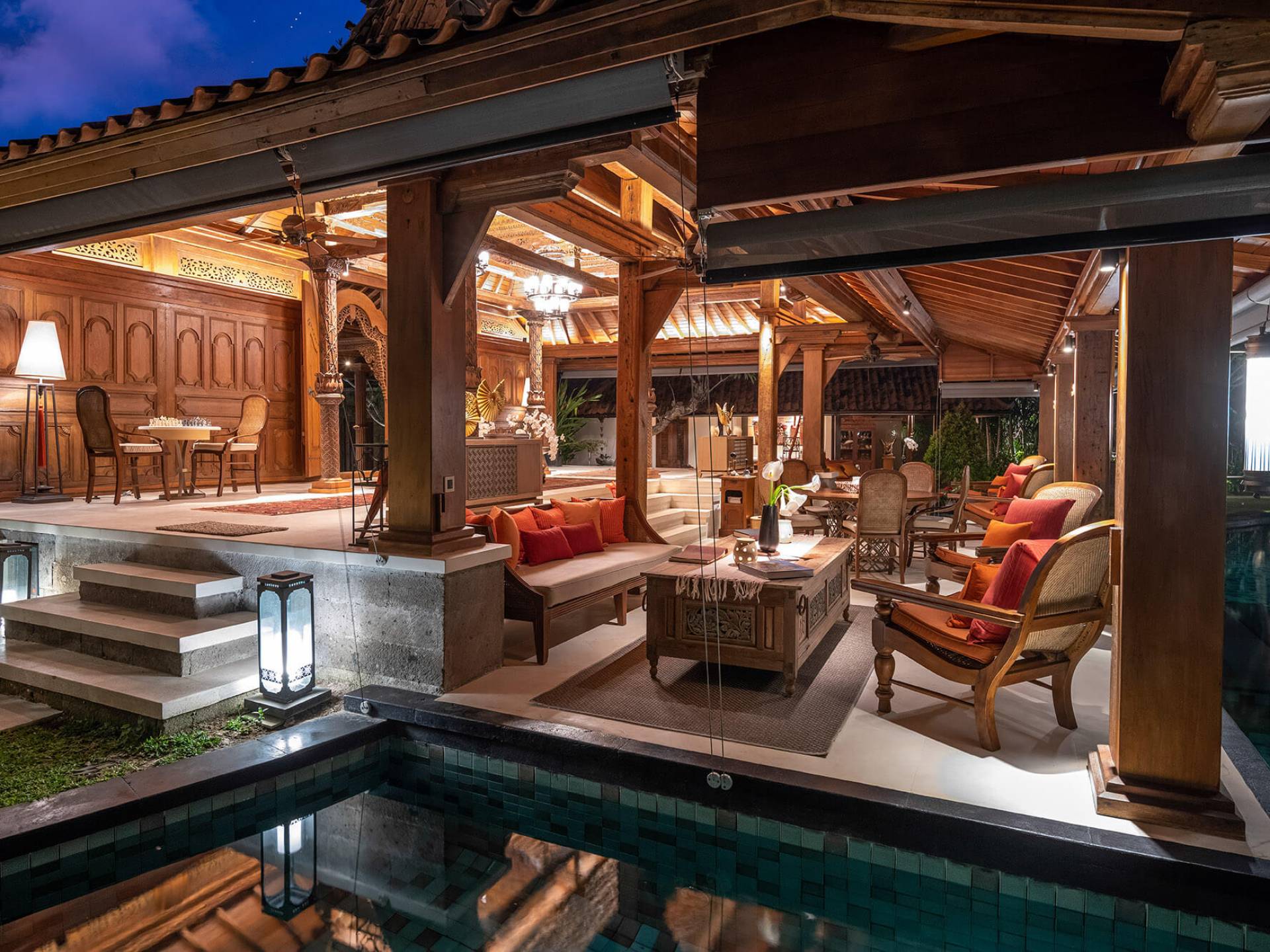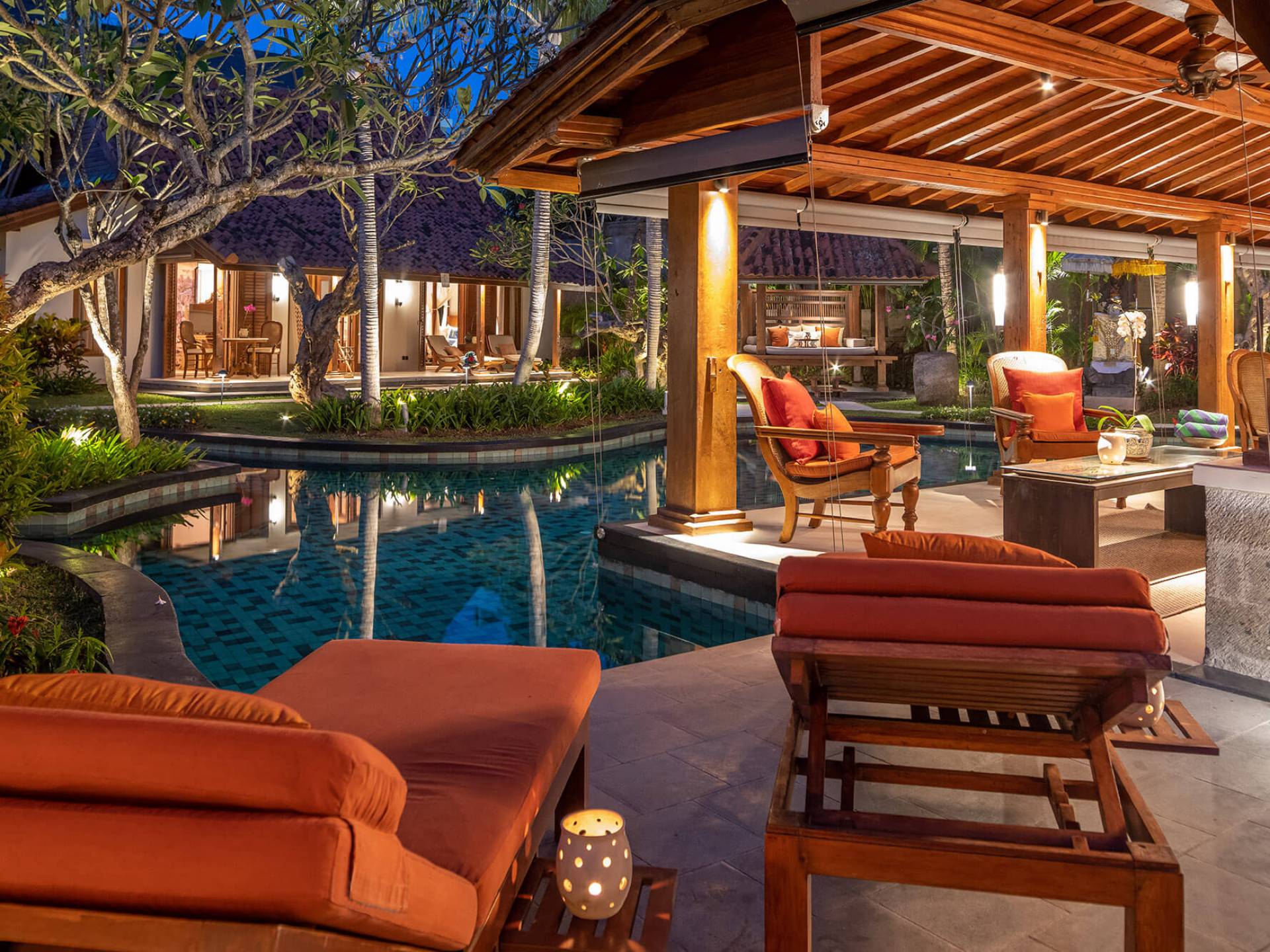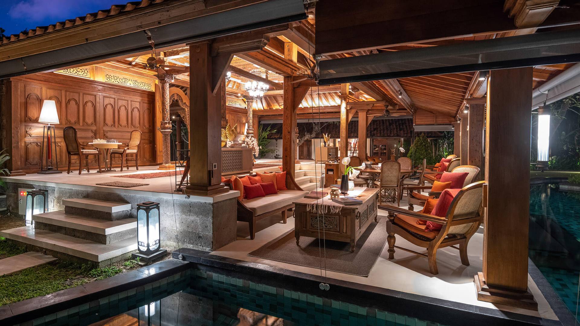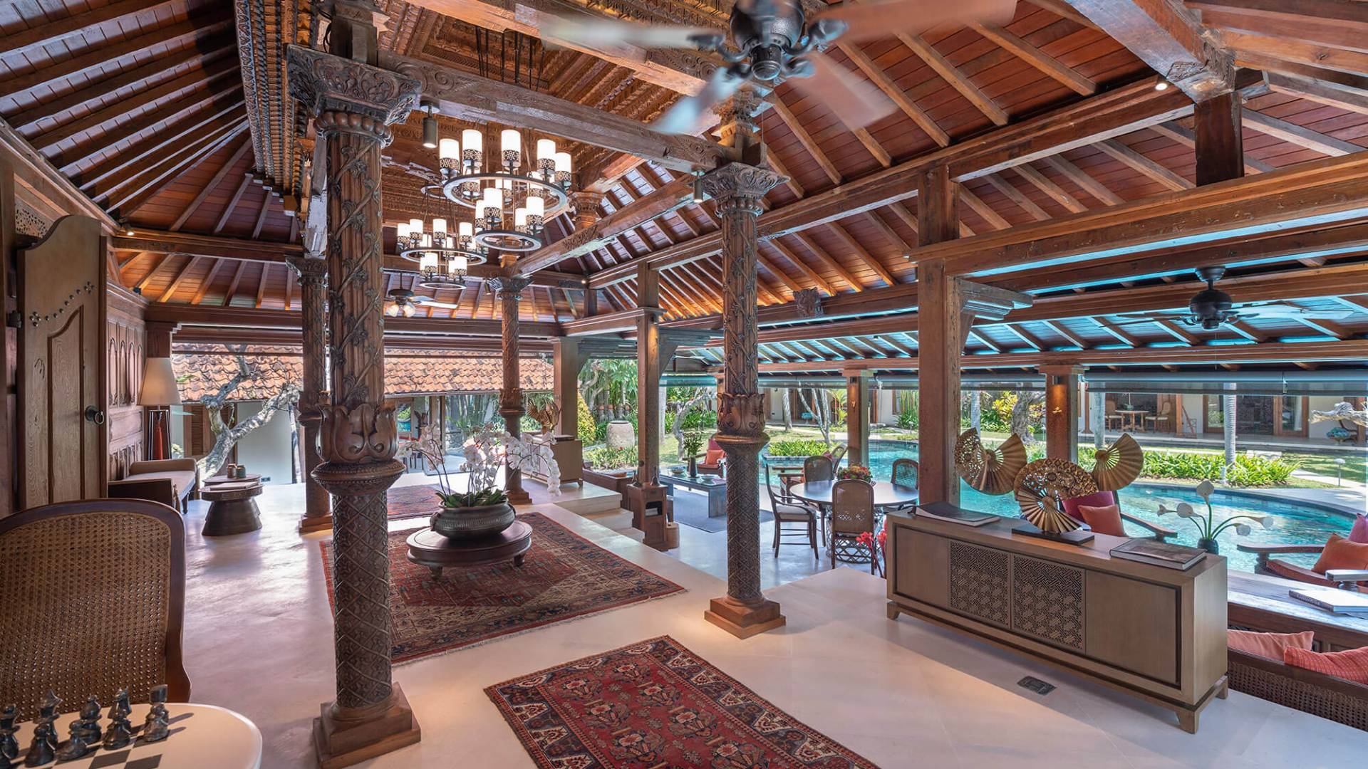 Μια σειρά από περίπτερα που συνοδεύονται από έναν όμορφο τροπικό κήπο και μια υπερβολική πισίνα. Το πλήρως στελεχωμένο Villa Des Indes I Seminyak προσφέρει παραδοσιακή φιλοξενία στο Μπαλί από την κύρια είσοδο με τη μεγάλη λίμνη koi και το γλυπτό αντίκες γλυπτό. Δύο μπανγκαλόου με κύρια κρεβατοκάμαρα βρίσκονται απέναντι από τη μεγάλη πισίνα με τον ενιαίο χώρο καθιστικού, ενώ το διώροφο κτίριο με τις 2 σουίτες επισκεπτών βρίσκεται στη μία πλευρά του κήπου. Απέναντι, το υπέροχο μπαρ επισκεπτών με το γκαρνταρόμπα και πίσω του η κουζίνα και ο χώρος εξυπηρέτησης συνθέτουν το συνολικό τοπίο του κτήματος.