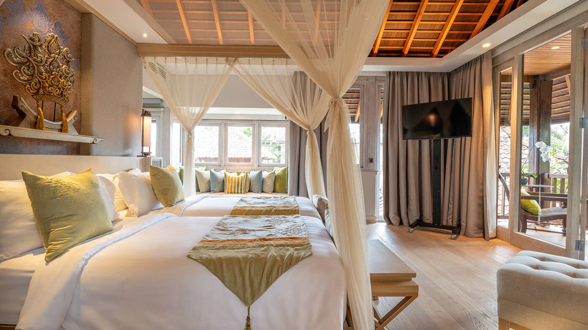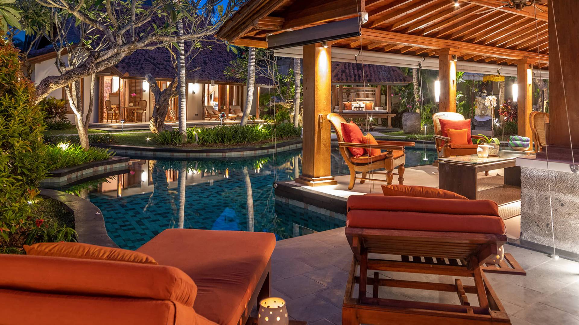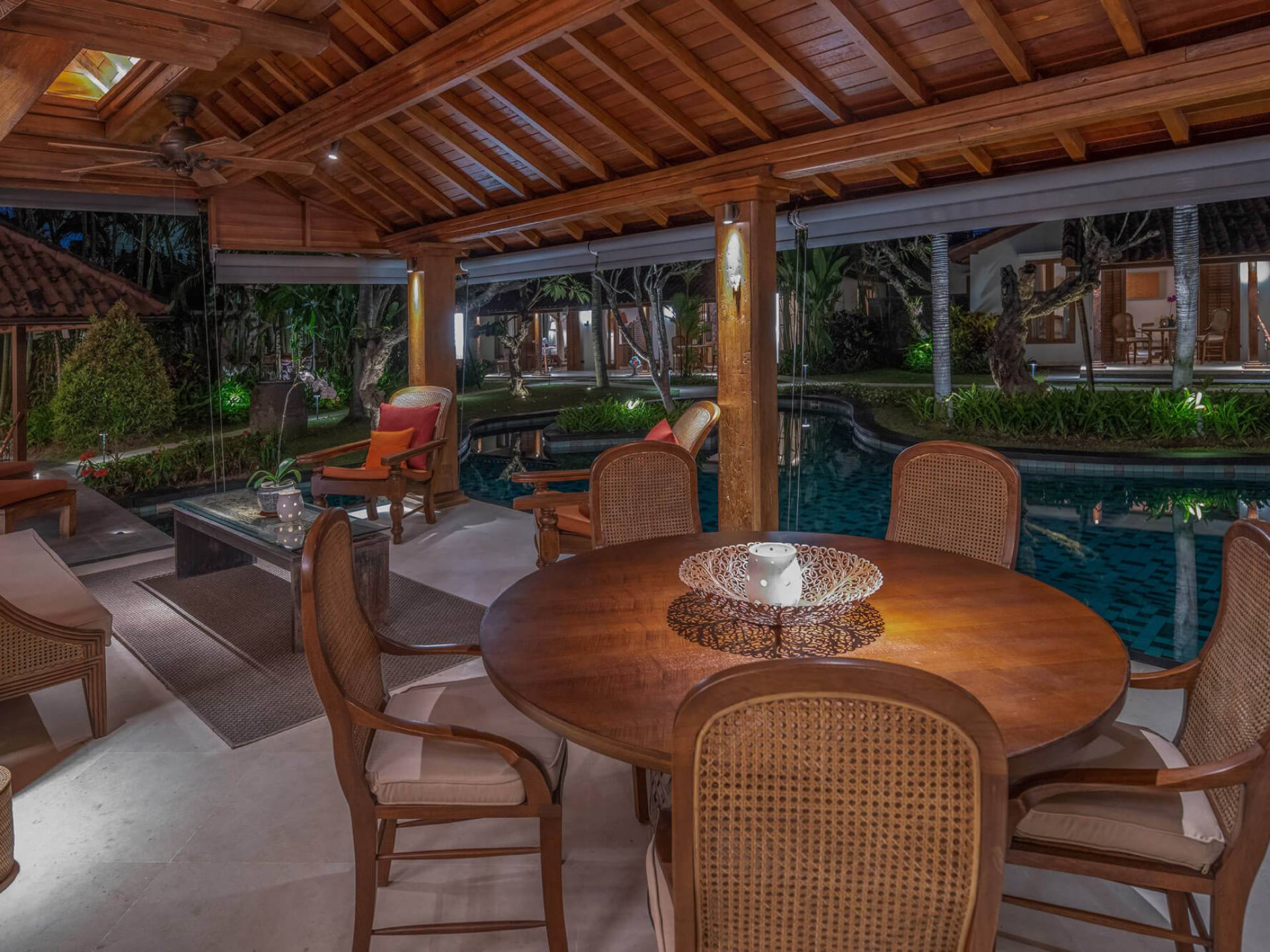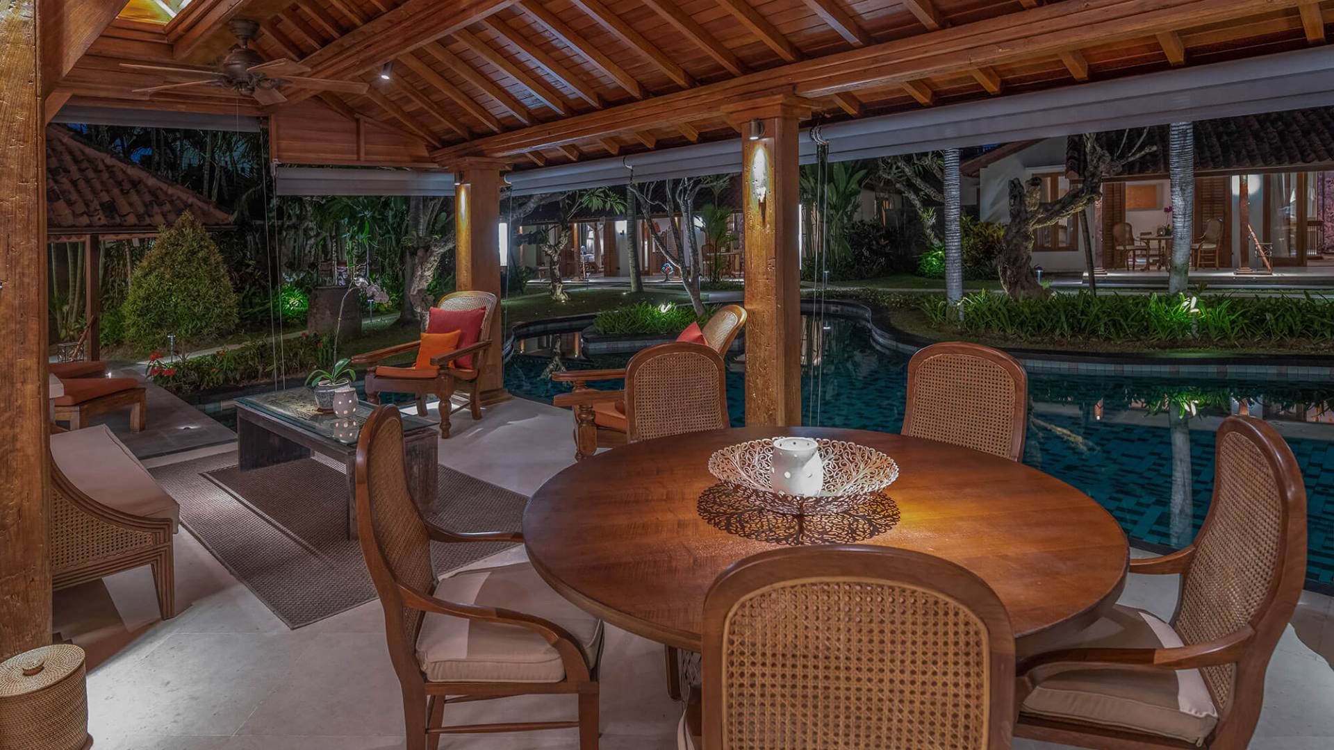 Μια σειρά από περίπτερα που συνοδεύονται από έναν όμορφο τροπικό κήπο και μια υπερβολική πισίνα. Το πλήρως στελεχωμένο Villa Des Indes I Seminyak προσφέρει παραδοσιακή φιλοξενία στο Μπαλί από την κύρια είσοδο με τη μεγάλη λίμνη koi και το γλυπτό αντίκες γλυπτό. Δύο μπανγκαλόου με κύρια κρεβατοκάμαρα βρίσκονται απέναντι από τη μεγάλη πισίνα με τον ενιαίο χώρο καθιστικού, ενώ το διώροφο κτίριο με τις 2 σουίτες επισκεπτών βρίσκεται στη μία πλευρά του κήπου. Απέναντι, το υπέροχο μπαρ επισκεπτών με το γκαρνταρόμπα και πίσω του η κουζίνα και ο χώρος εξυπηρέτησης συνθέτουν το συνολικό τοπίο του κτήματος.