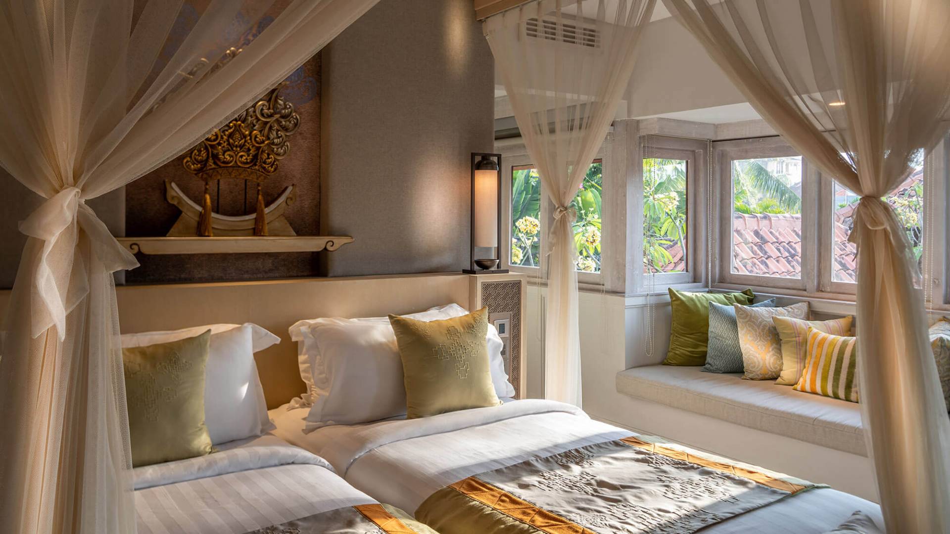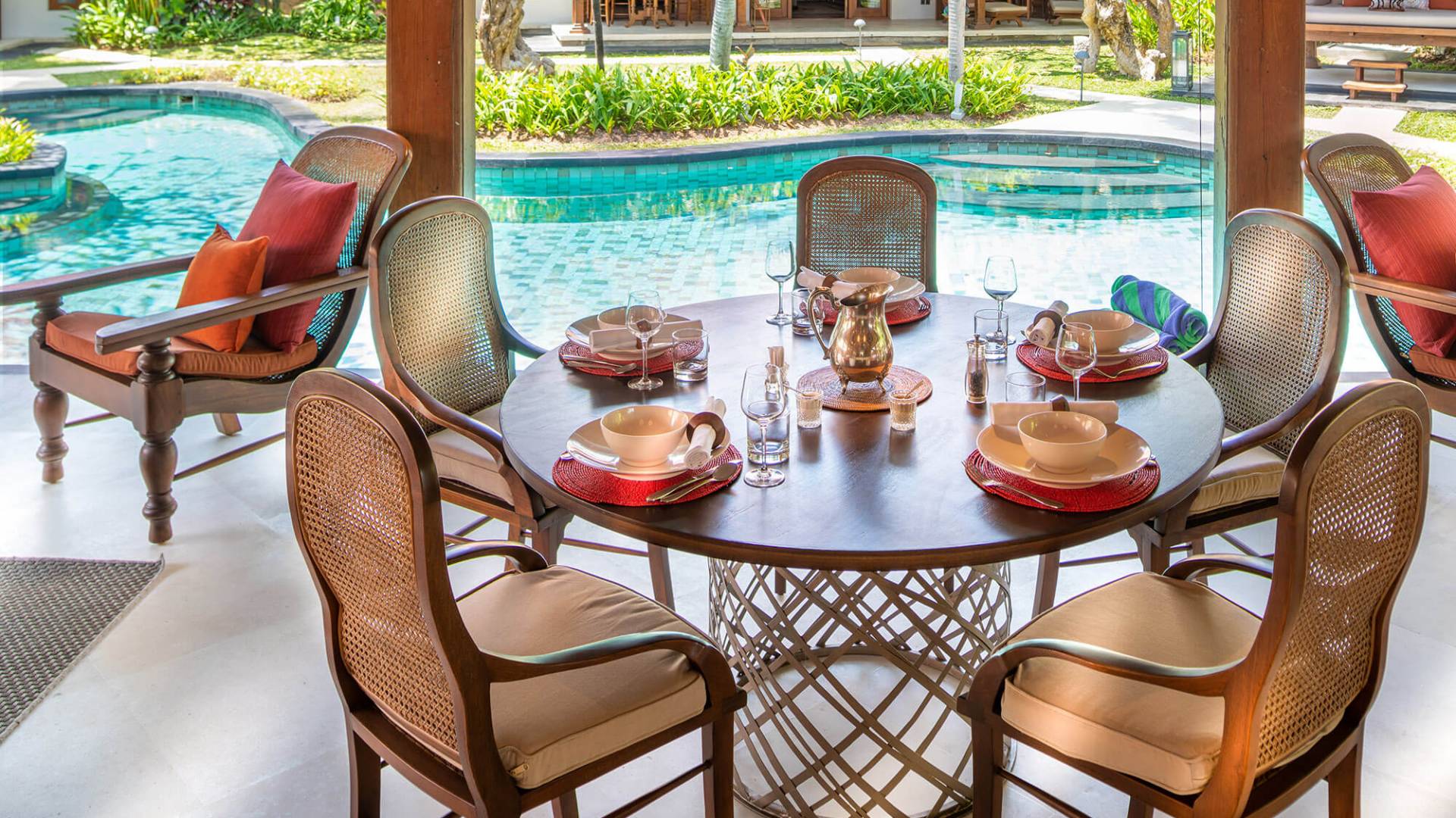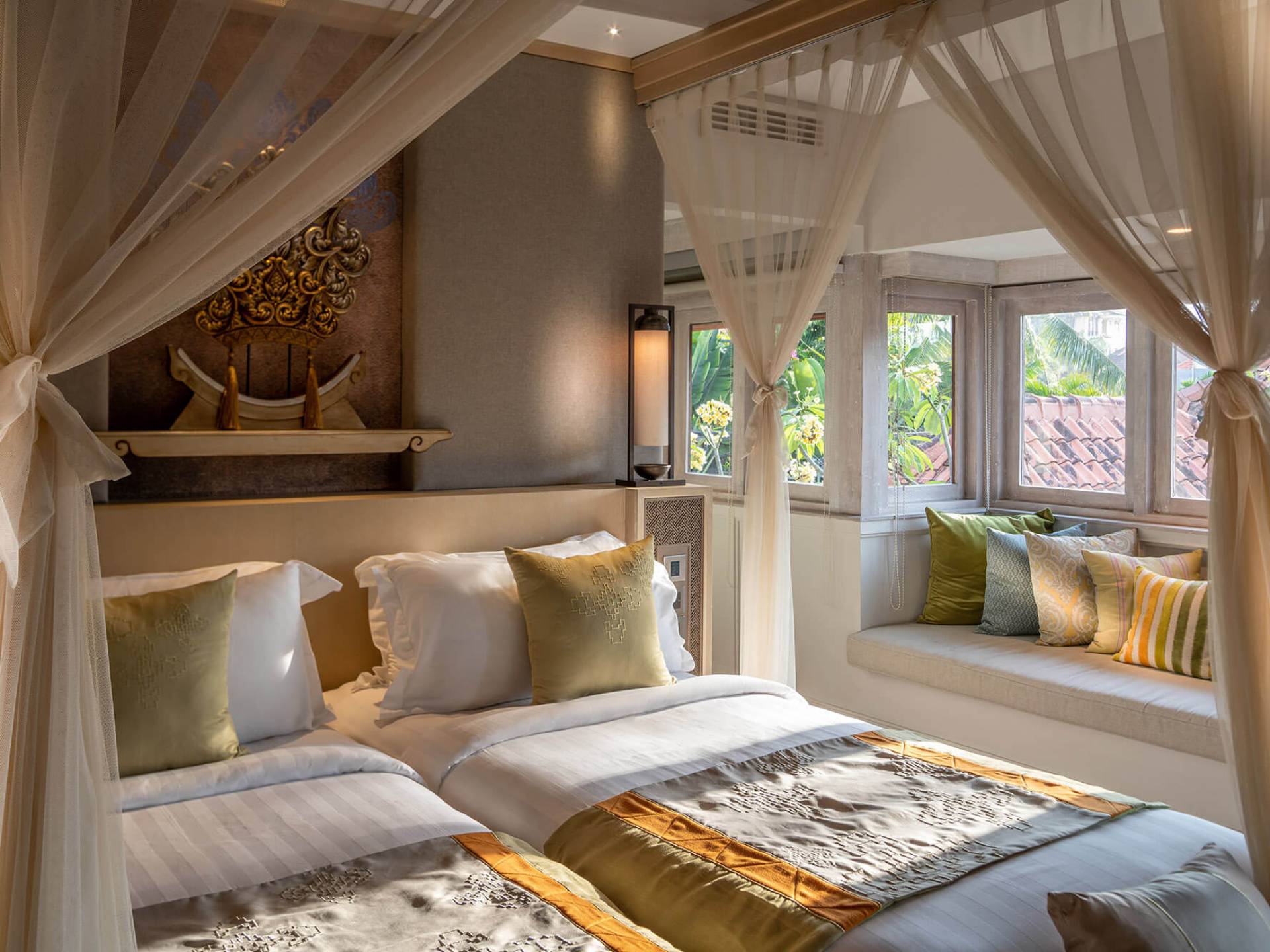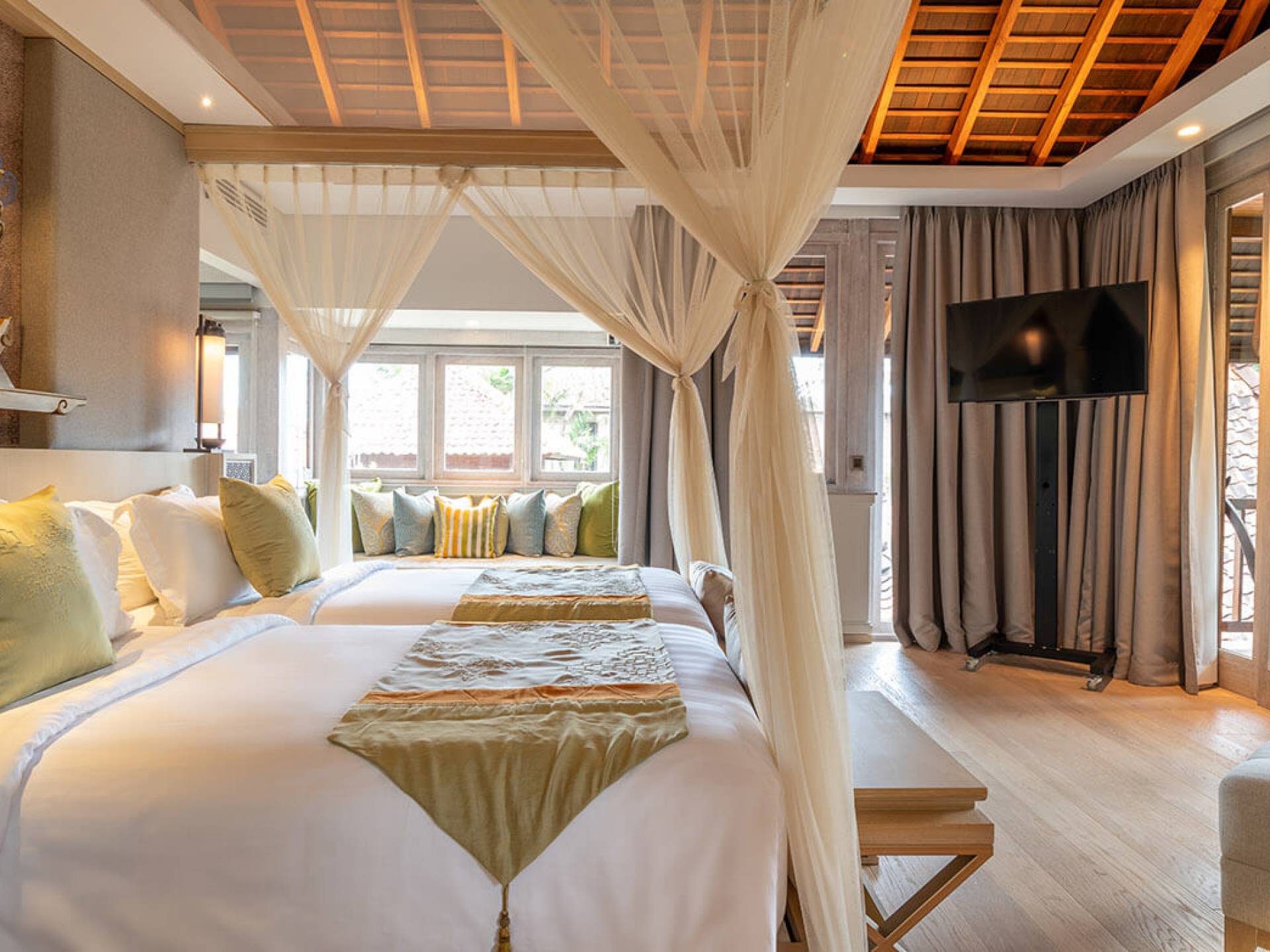 Μια σειρά από περίπτερα που συνοδεύονται από έναν όμορφο τροπικό κήπο και μια υπερβολική πισίνα. Το πλήρως στελεχωμένο Villa Des Indes I Seminyak προσφέρει παραδοσιακή φιλοξενία στο Μπαλί από την κύρια είσοδο με τη μεγάλη λίμνη koi και το γλυπτό αντίκες γλυπτό. Δύο μπανγκαλόου με κύρια κρεβατοκάμαρα βρίσκονται απέναντι από τη μεγάλη πισίνα με τον ενιαίο χώρο καθιστικού, ενώ το διώροφο κτίριο με τις 2 σουίτες επισκεπτών βρίσκεται στη μία πλευρά του κήπου. Απέναντι, το υπέροχο μπαρ επισκεπτών με το γκαρνταρόμπα και πίσω του η κουζίνα και ο χώρος εξυπηρέτησης συνθέτουν το συνολικό τοπίο του κτήματος.