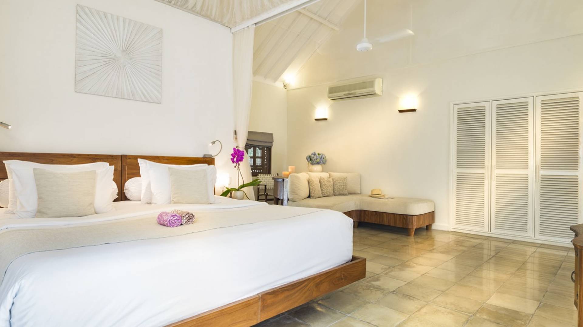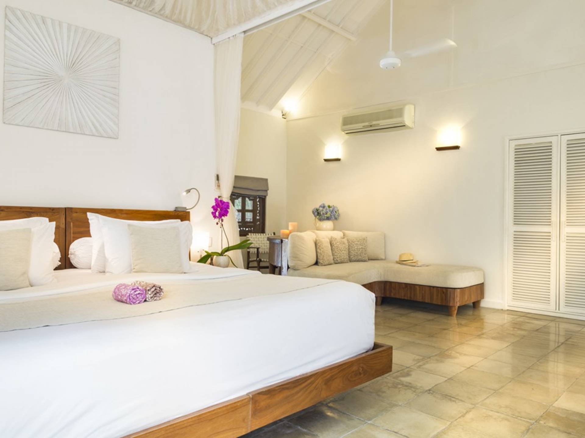 Ένα ευρύχωρο υπνοδωμάτιο με ένα εντυπωσιακό κρεβάτι king size και ξεχωριστό χώρο γραφείου είναι βασικά χαρακτηριστικά αυτού του παραδεισένιου καταφύγιου.